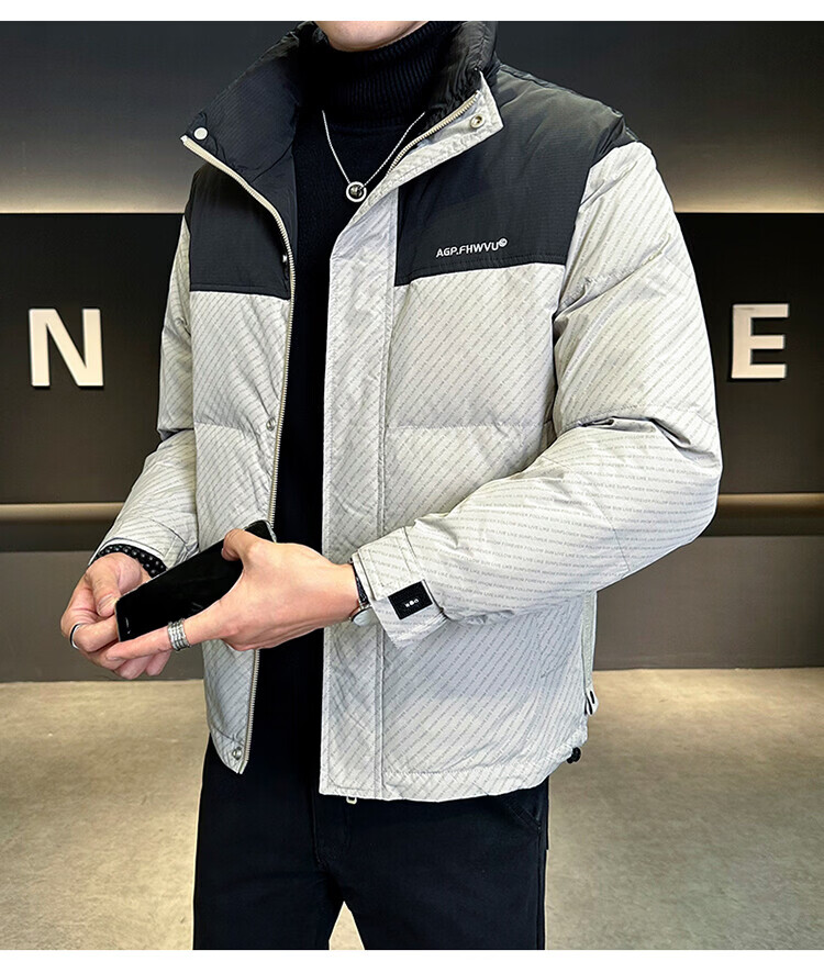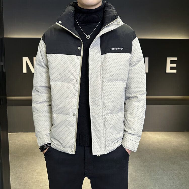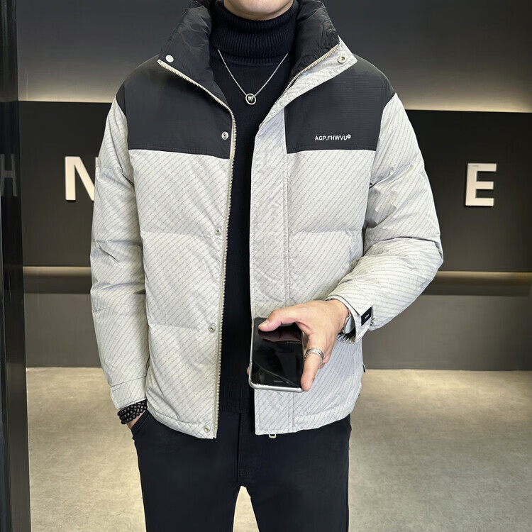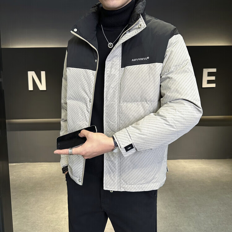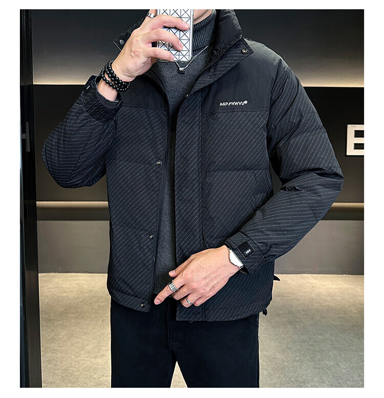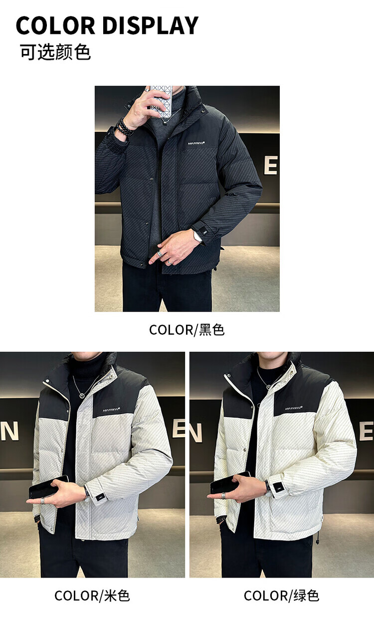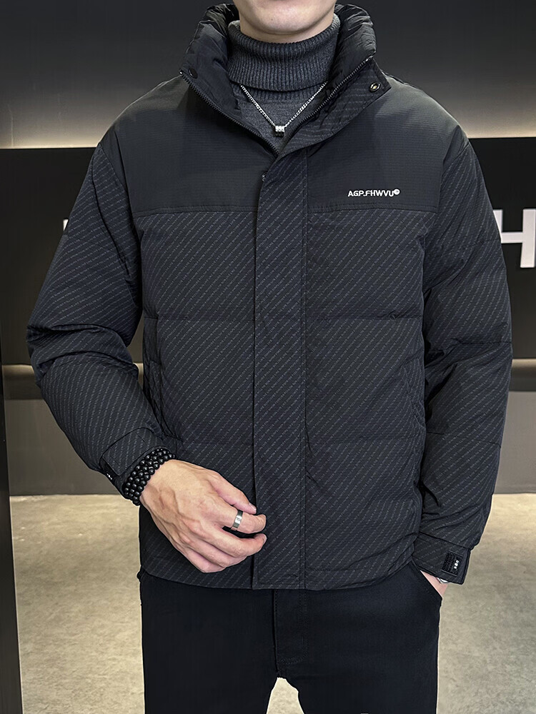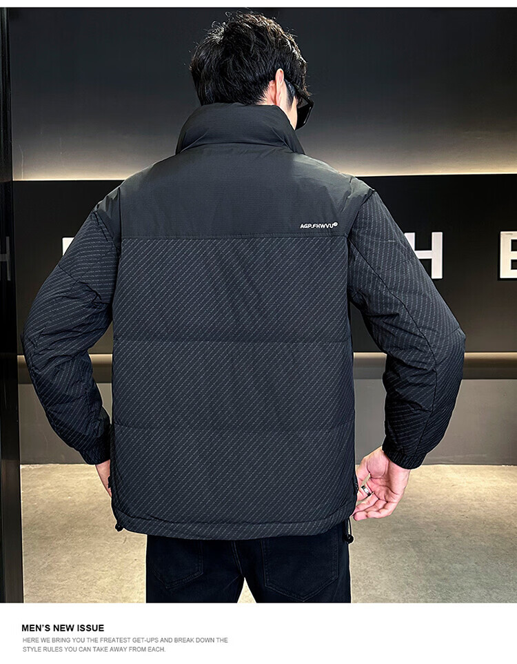 Hengyuanxiang down jacket new winter clothing men's thin and warm trendy brand high-end handsome stand-up collar thickened youth men's jacket black L
