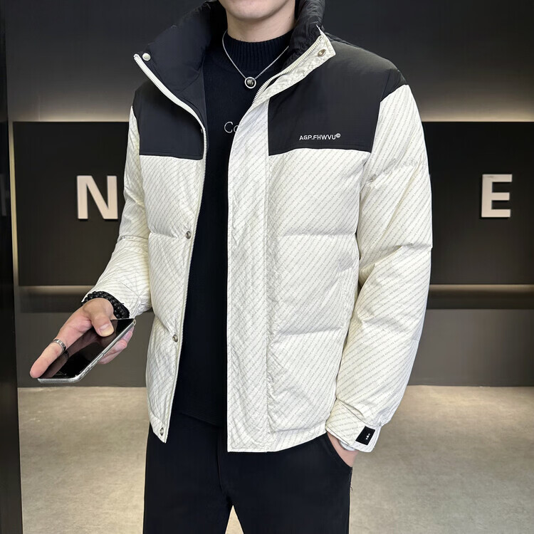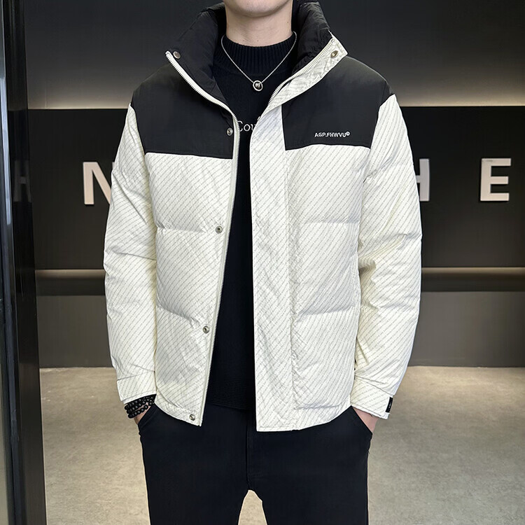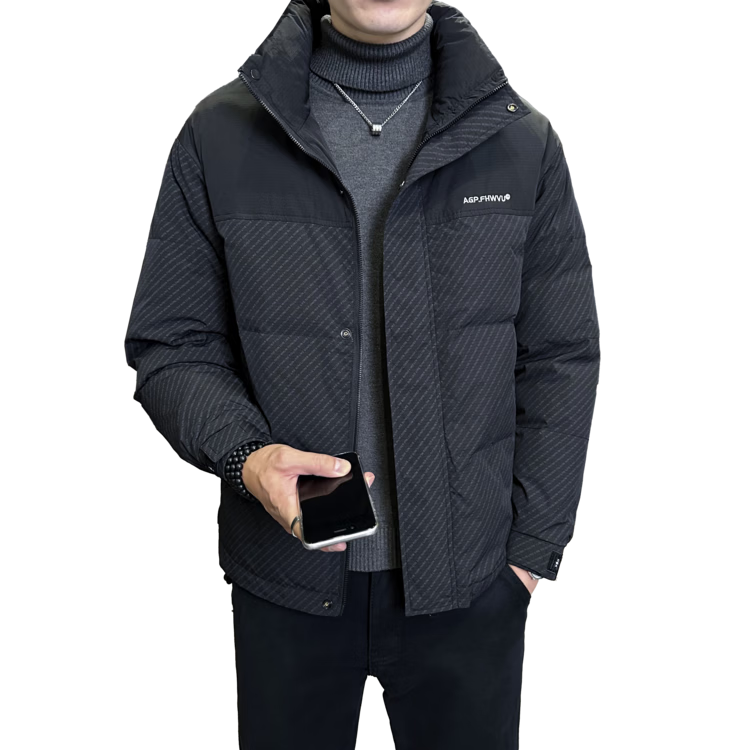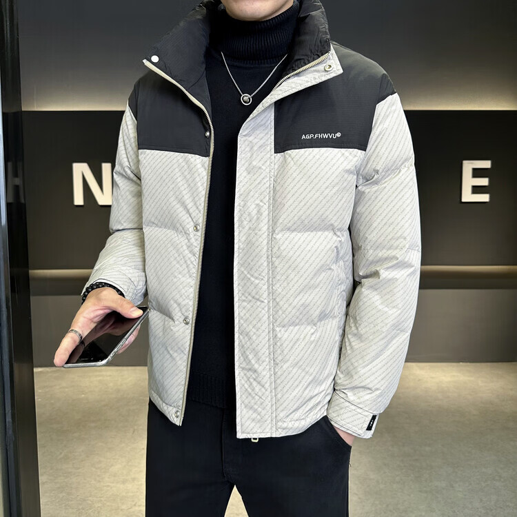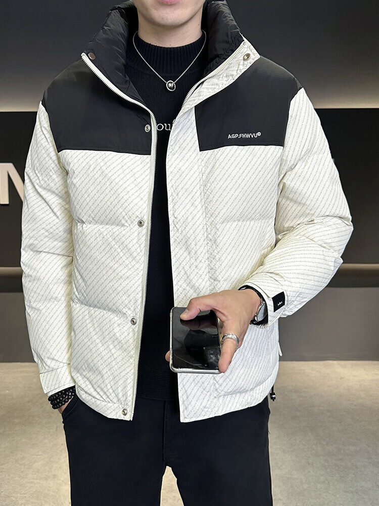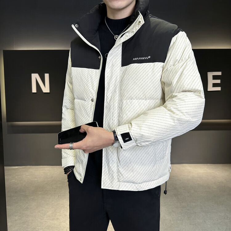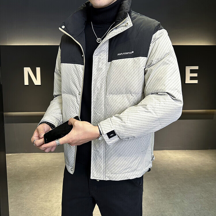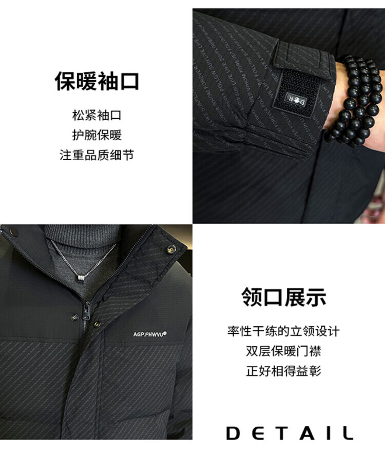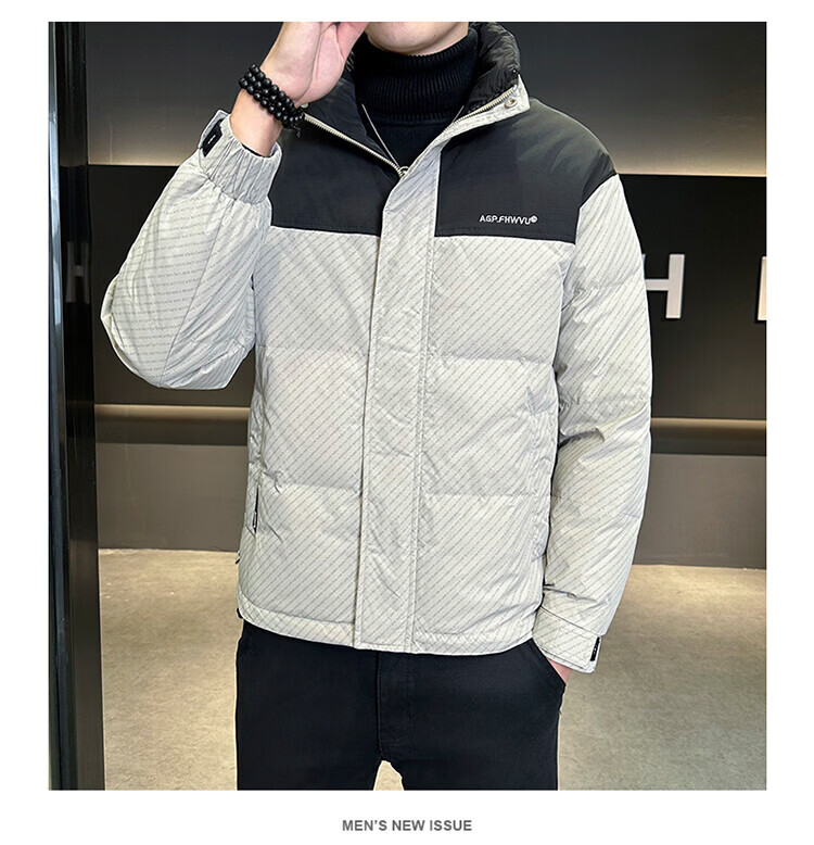 Hengyuanxiang down jacket new winter clothing men's thin and warm trendy brand high-end handsome stand-up collar thickened youth men's jacket black L