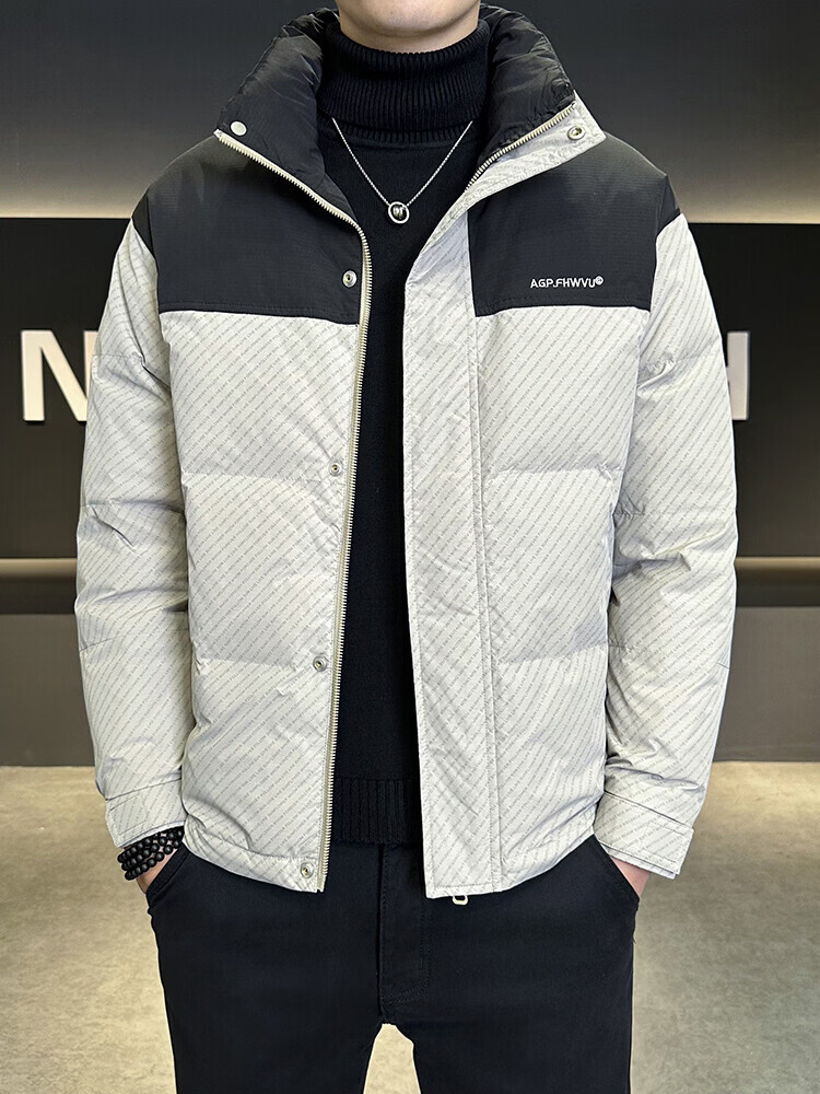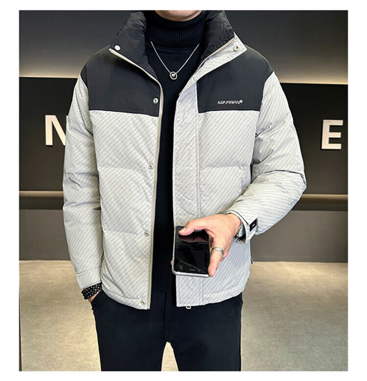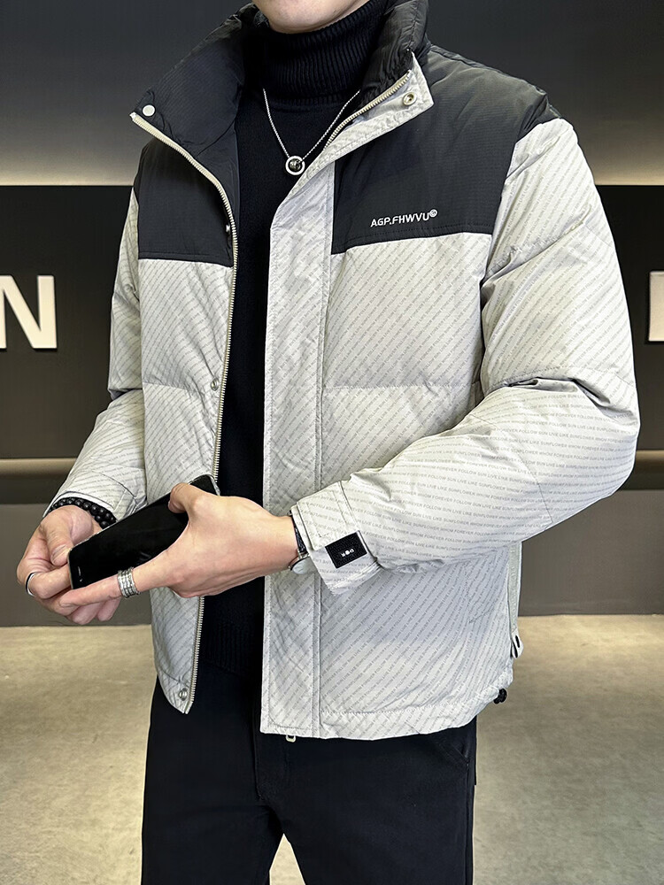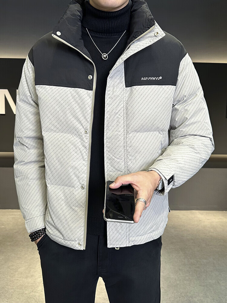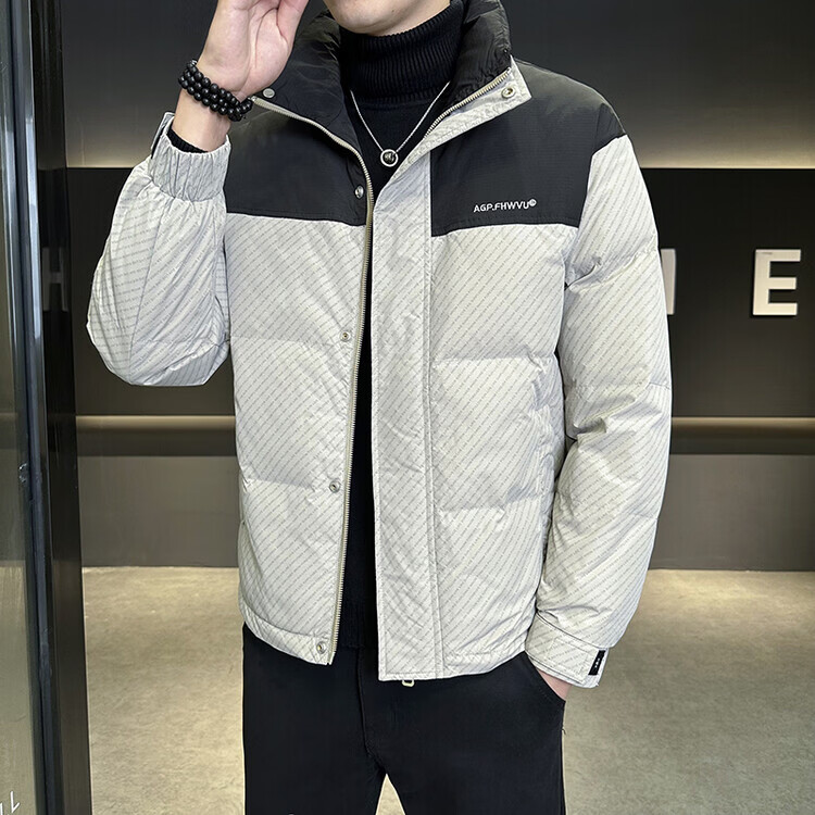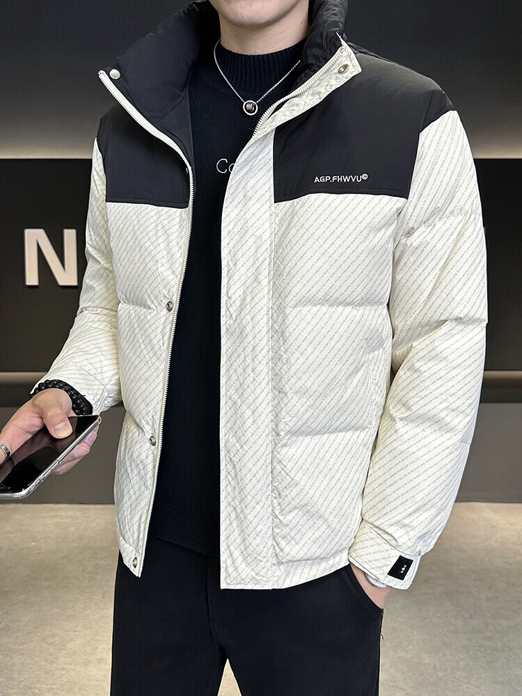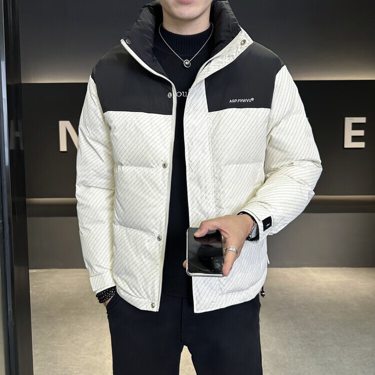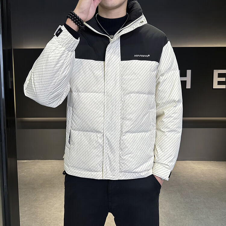 Hengyuanxiang down jacket new winter clothing men's thin and warm trendy brand high-end handsome stand-up collar thickened youth men's jacket black L