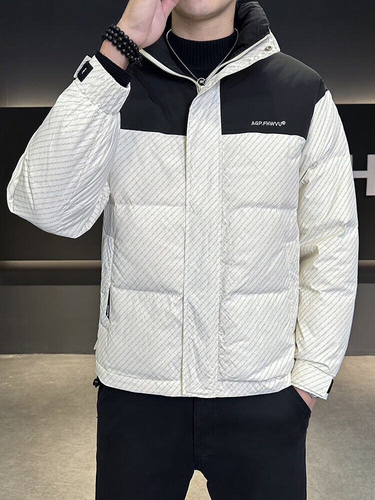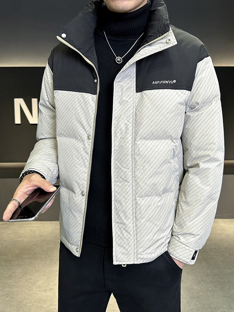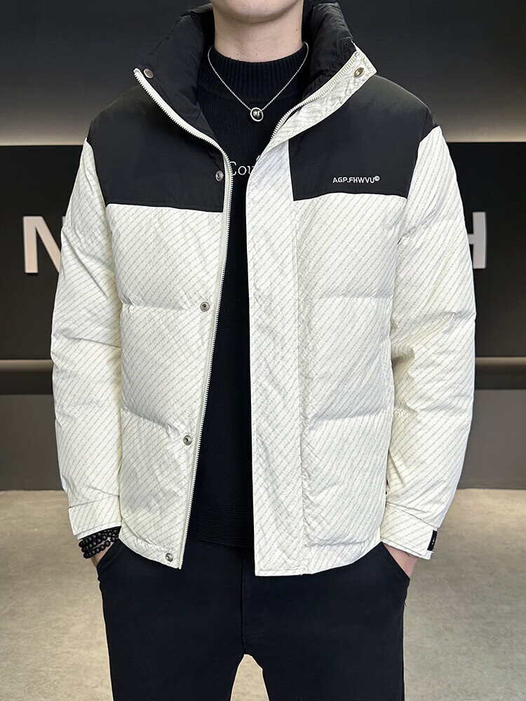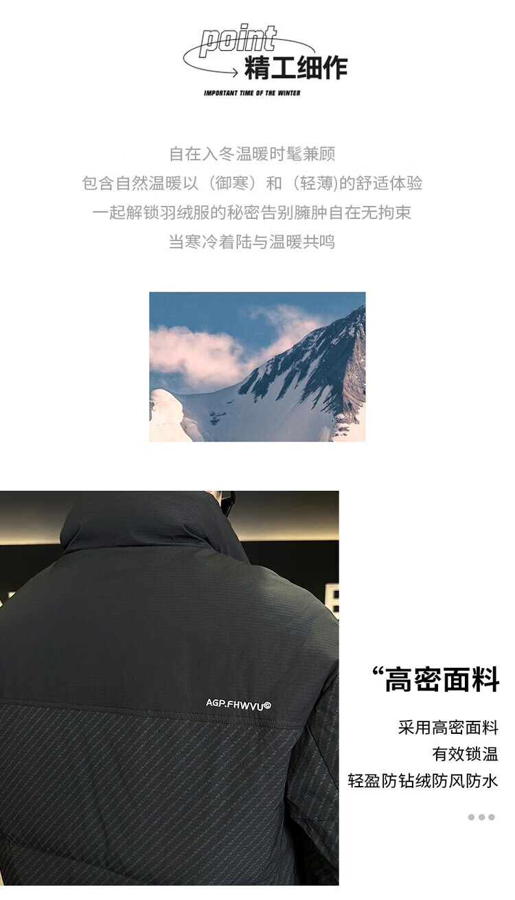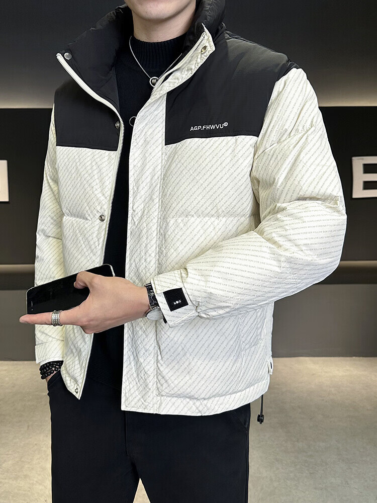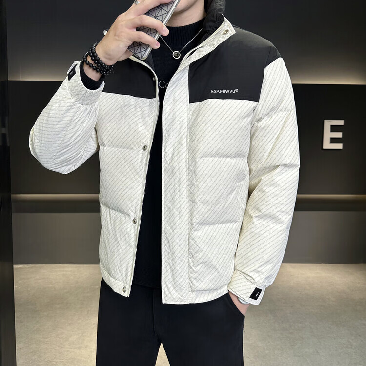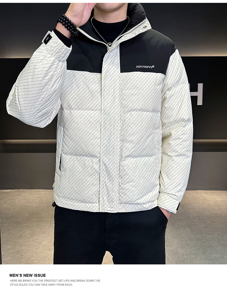 Hengyuanxiang down jacket new winter clothing men's thin and warm trendy brand high-end handsome stand-up collar thickened youth men's jacket black L