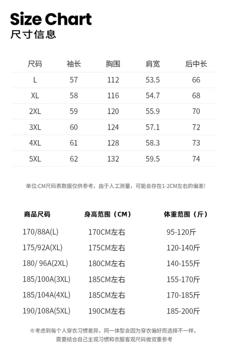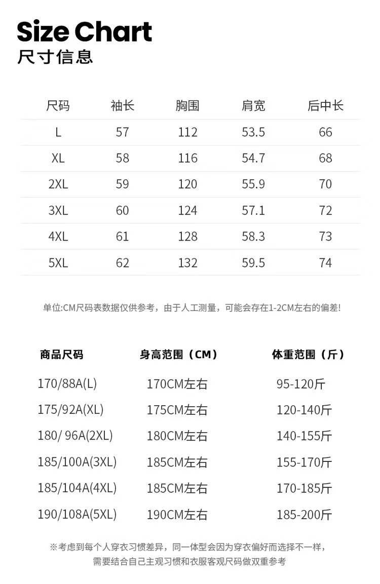 China (cm) 165 / 88-90 170 / 96-98 175 / 108-110 180 / 118-122 185 / 126-130