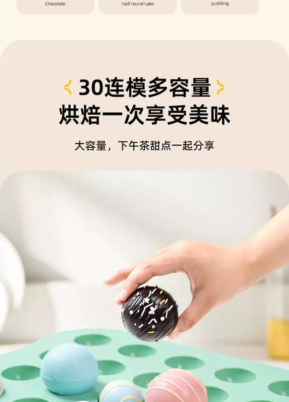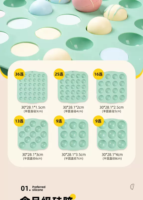 Yusenyi semi-circle silicone heart grinding tool chocolate ball mousse spherical mooncake baking fu stuffing bubble mold cake flow sandwich 36 semi-circle molds 3cm 36 semi-circle molds 3cm 36g