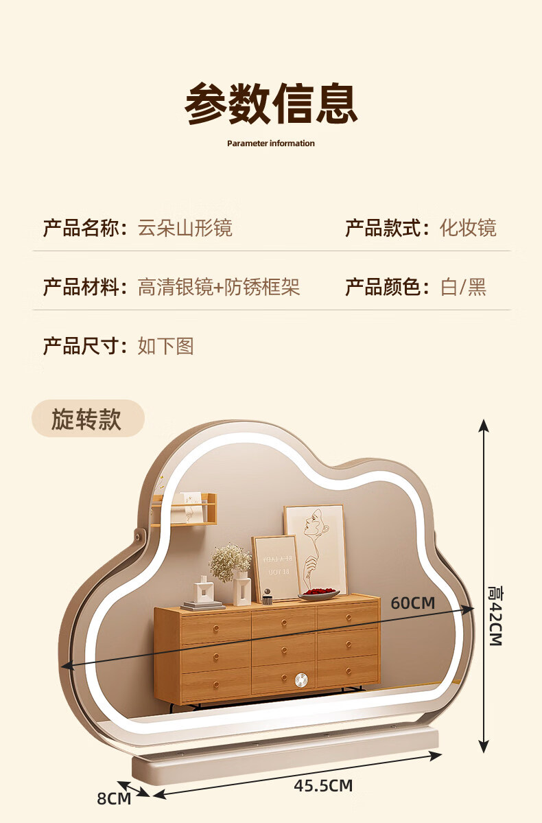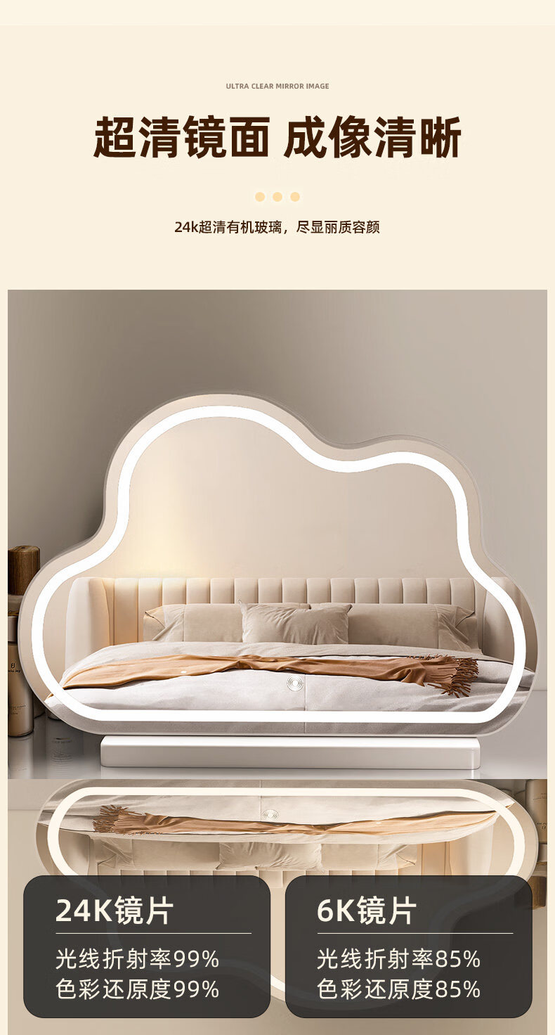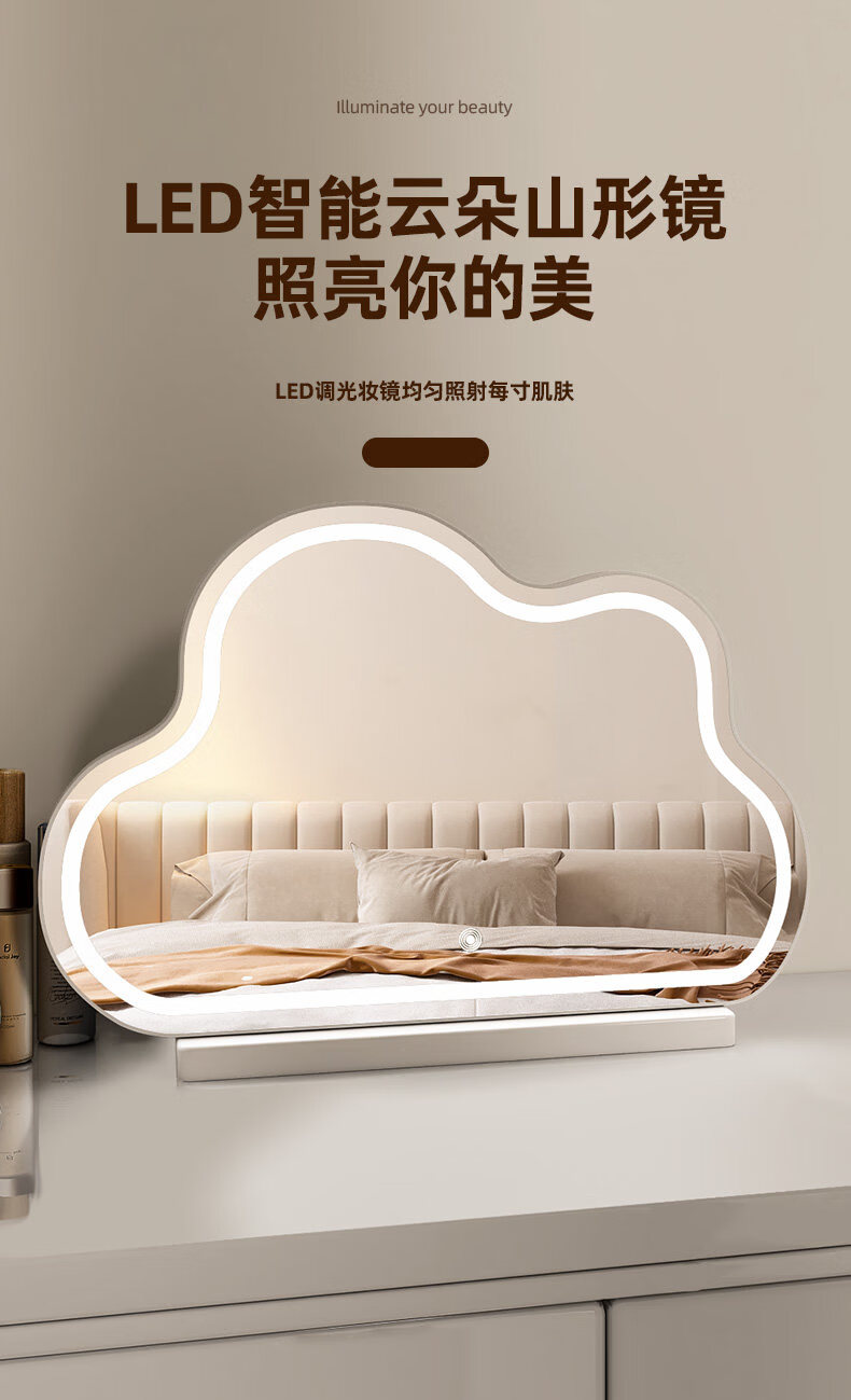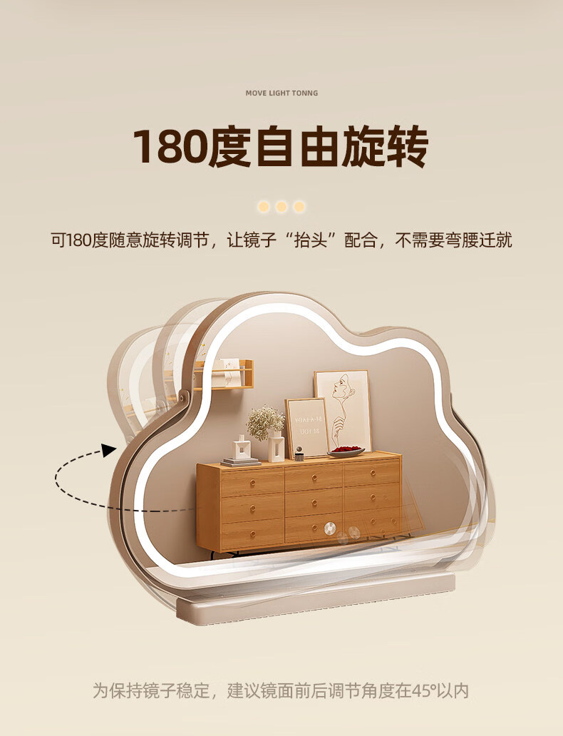 Fat Donglai's same style desktop smart LED makeup mirror, simple vanity mirror with light, LED Internet celebrity mirror, large desktop cloud mirror, rotating model 2026 new product - cream white (multi-color stepless dimming)