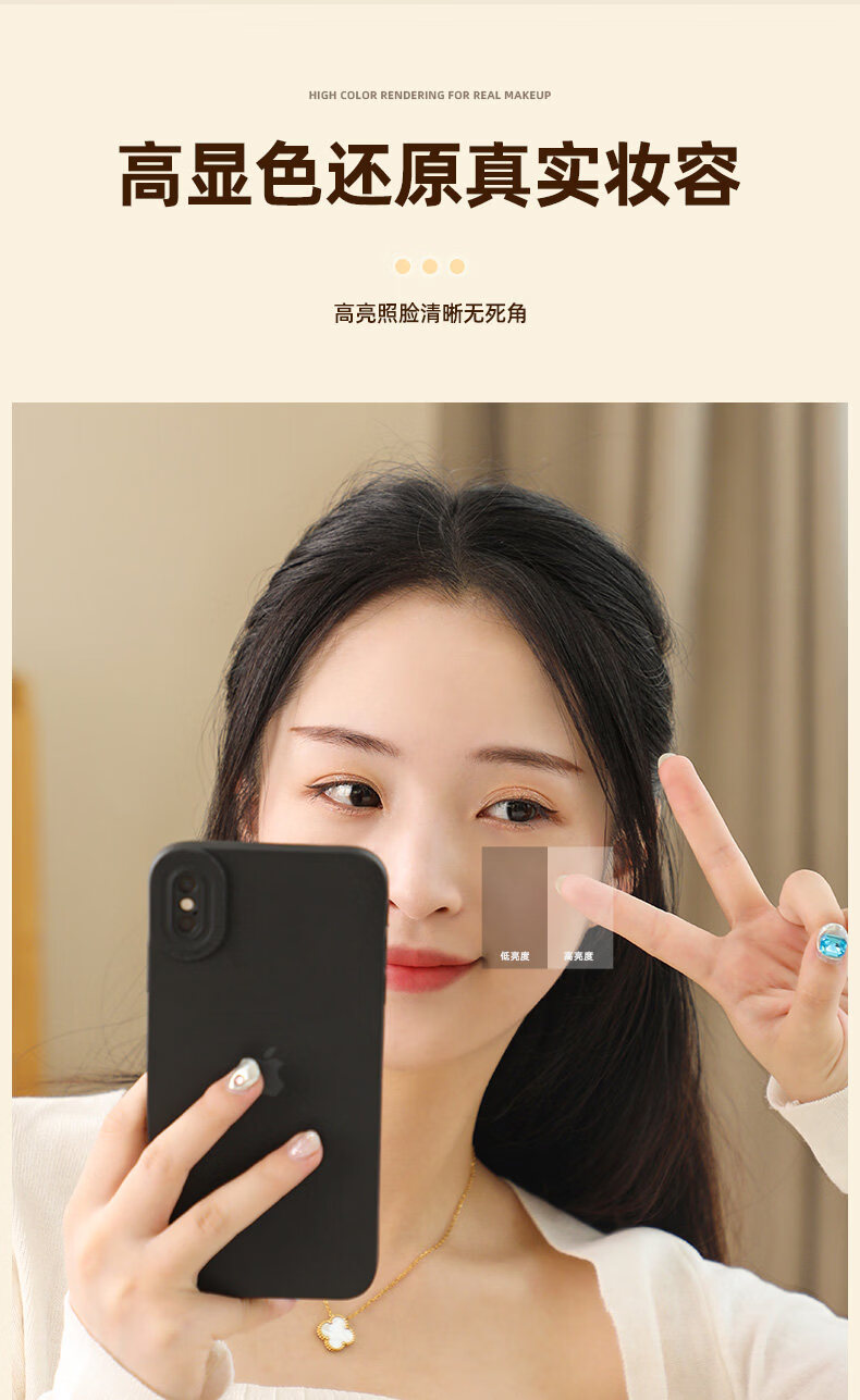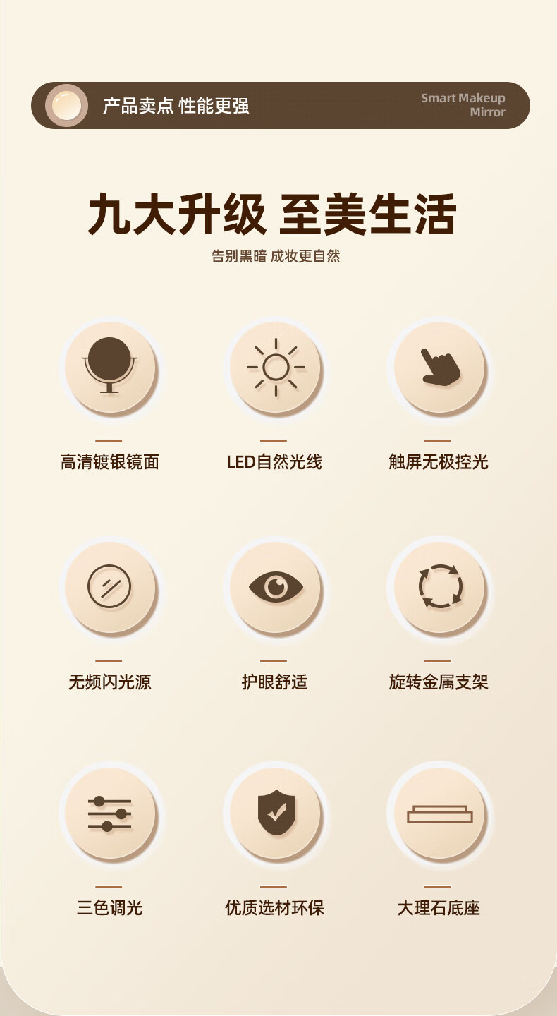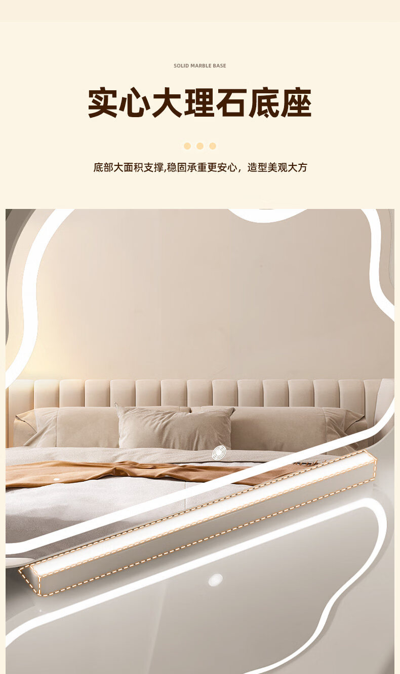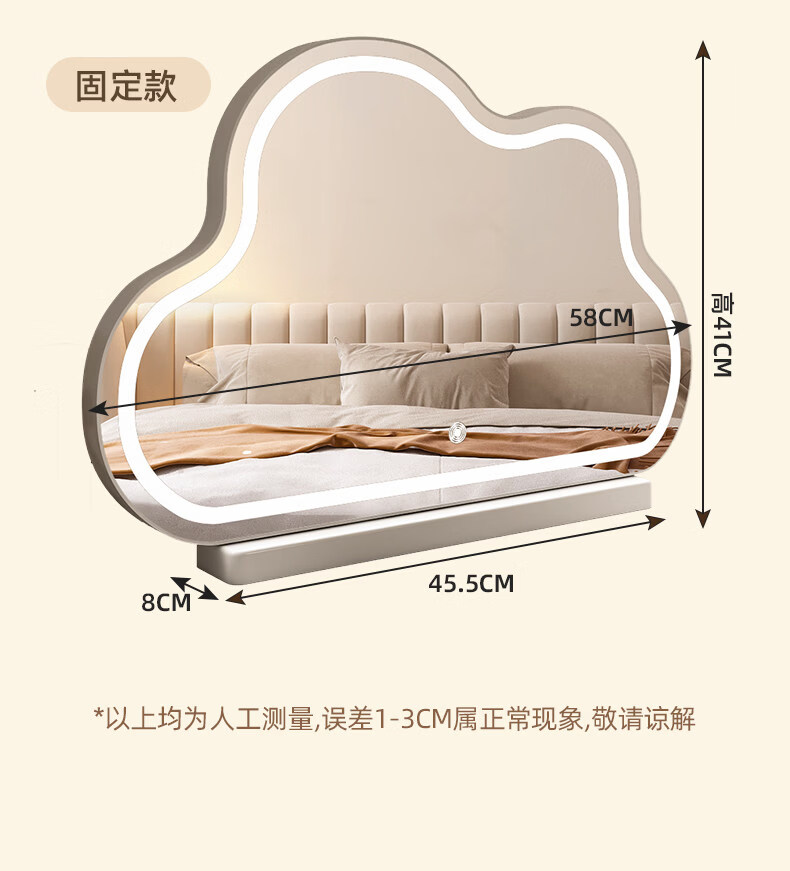 Fat Donglai's same style desktop smart LED makeup mirror, simple vanity mirror with light, LED Internet celebrity mirror, large desktop cloud mirror, rotating model 2026 new product - cream white (multi-color stepless dimming)