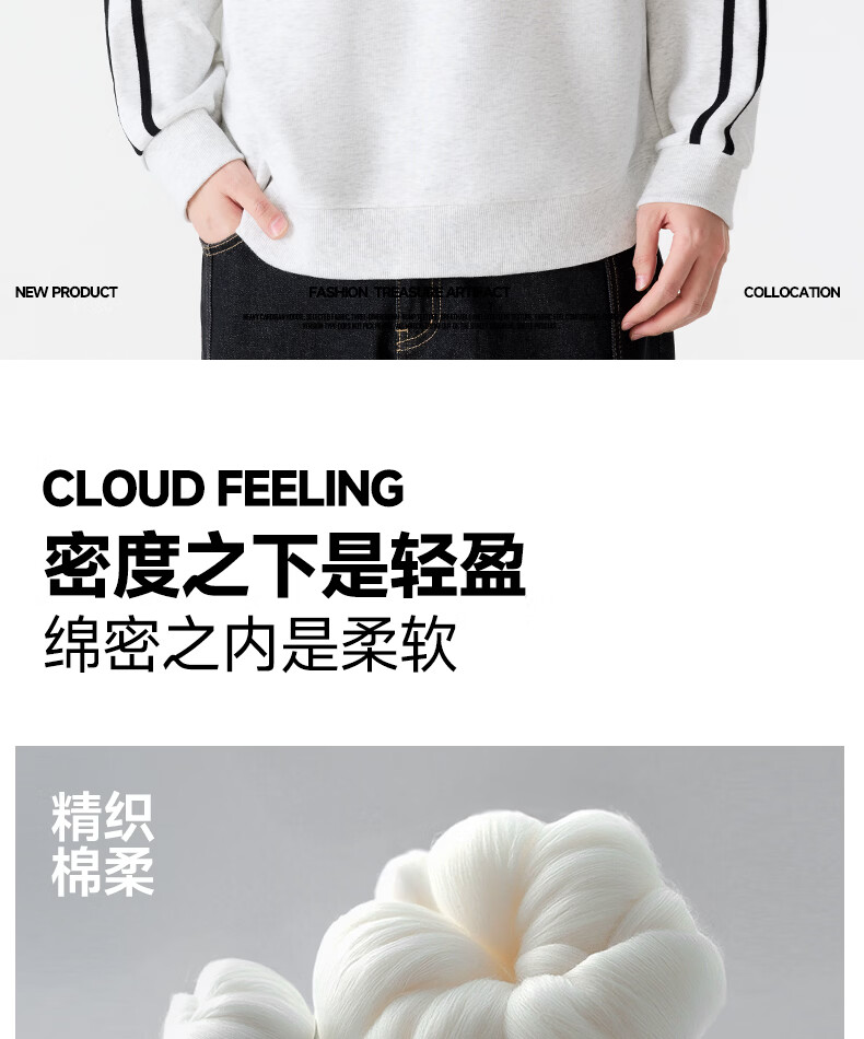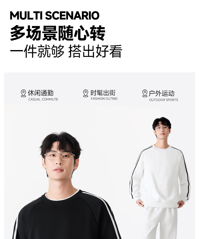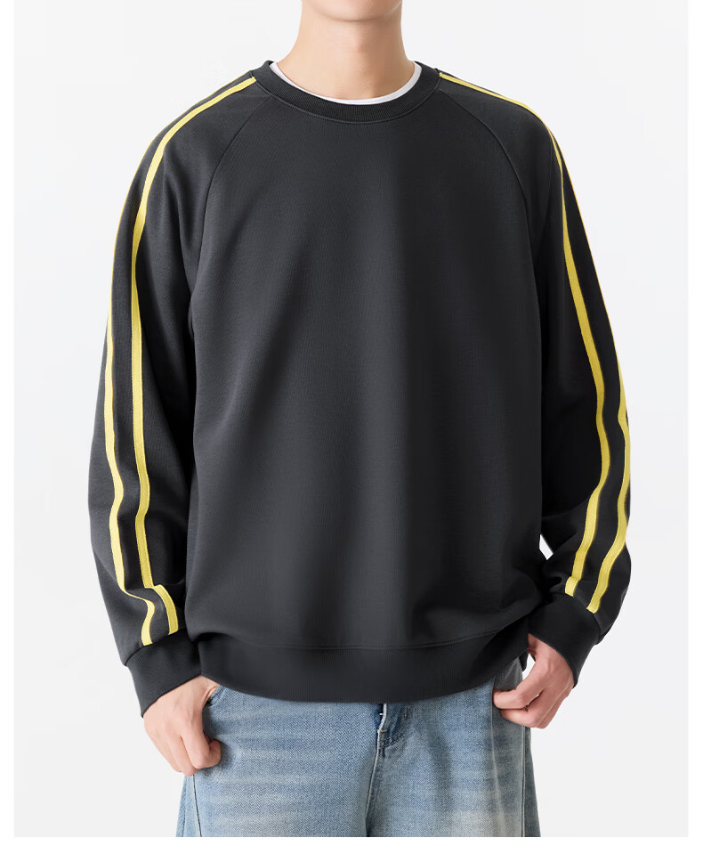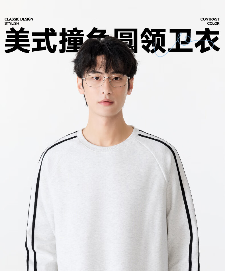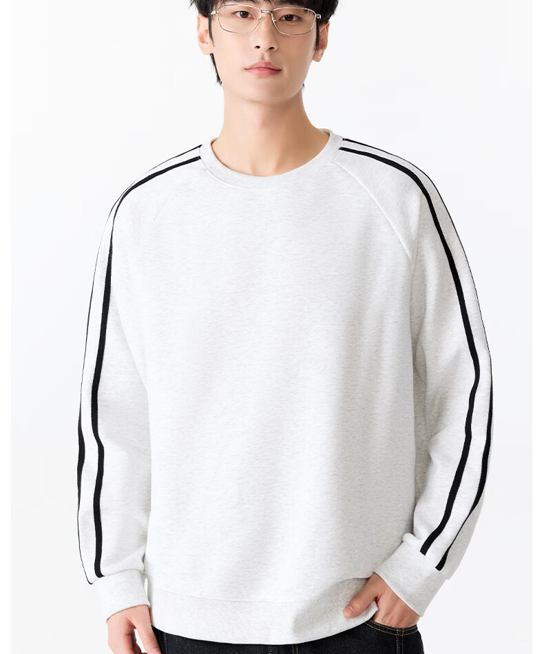 MINISO sweatshirt men's 2026 new spring heavy contrast raglan sports and leisure pullover American tops for men white flower gray (mt mountain adventure chest label) M /170 (full refund for quality issues within 30 days)