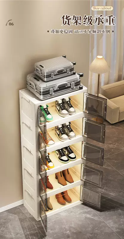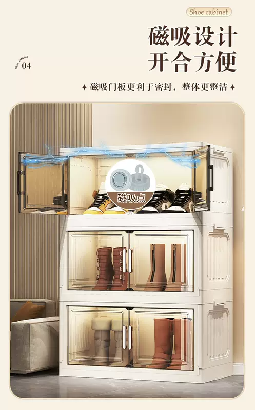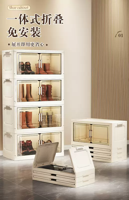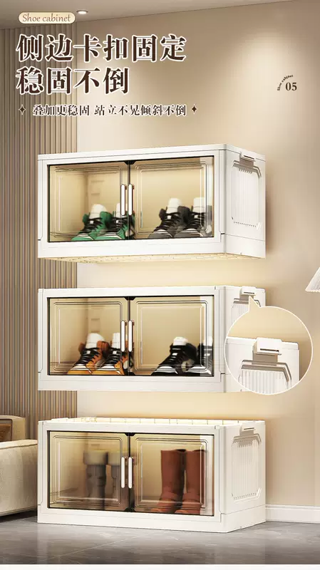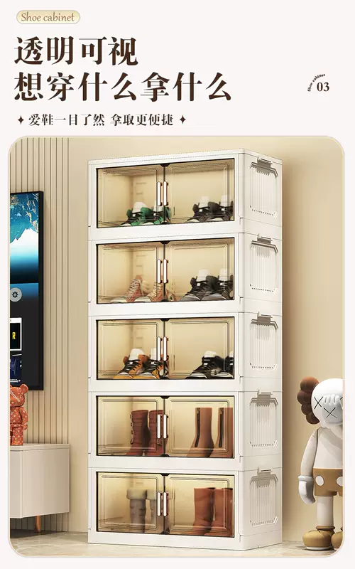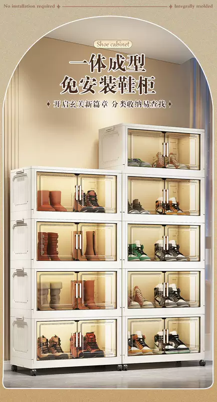 Yusenyi installation-free shoe box storage box transparent all-in-one folding shoe cabinet for home entrance large capacity simple dust-proof shoe rack 85CM width (five layers free universal wheel) gray transparent