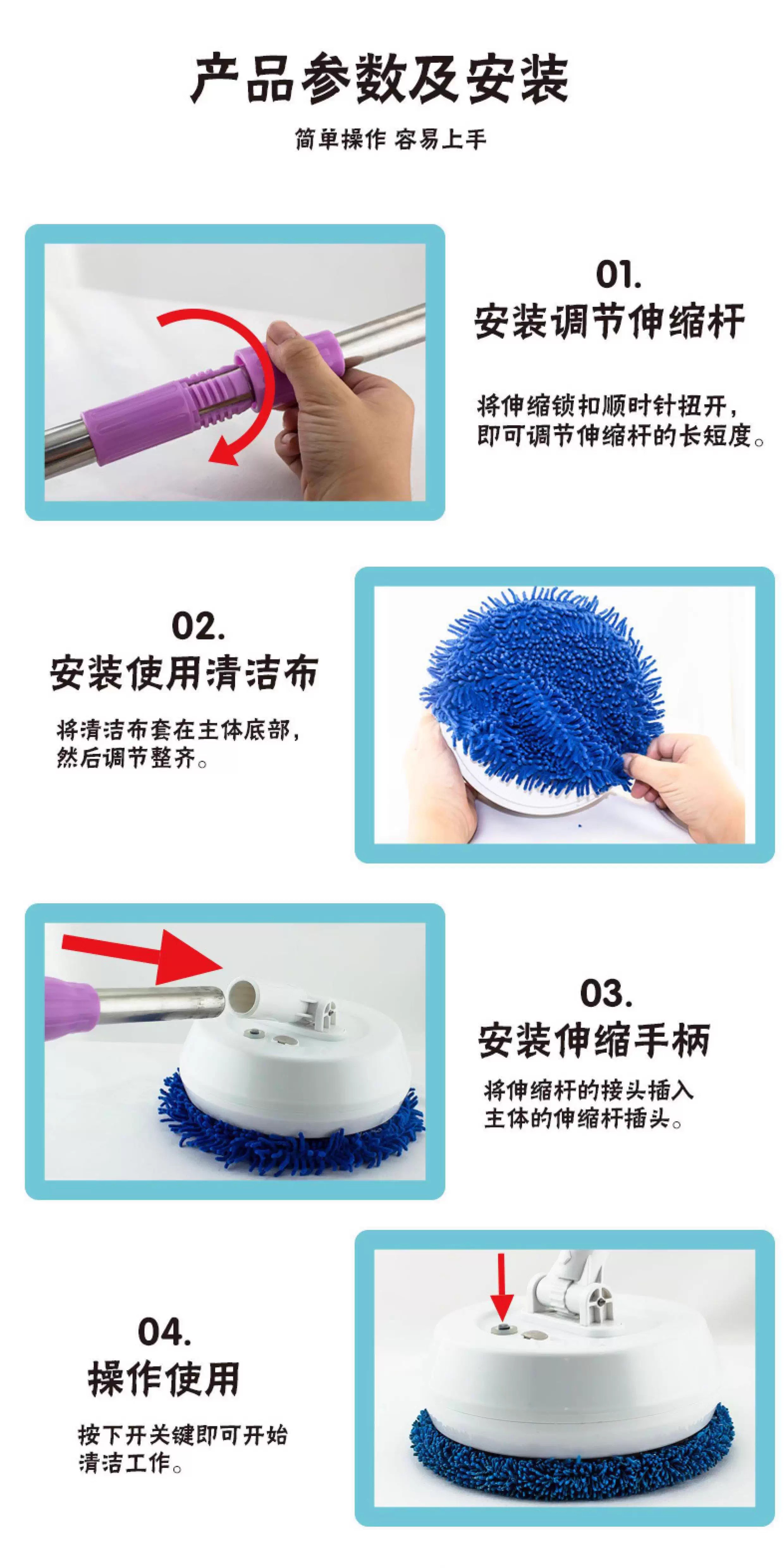 Meschute German quality electric spin mop lazy wall and ceiling cleaning artifact spider web cleaning tool dust removal light blue glass cleaning machine 10 mops 17cm