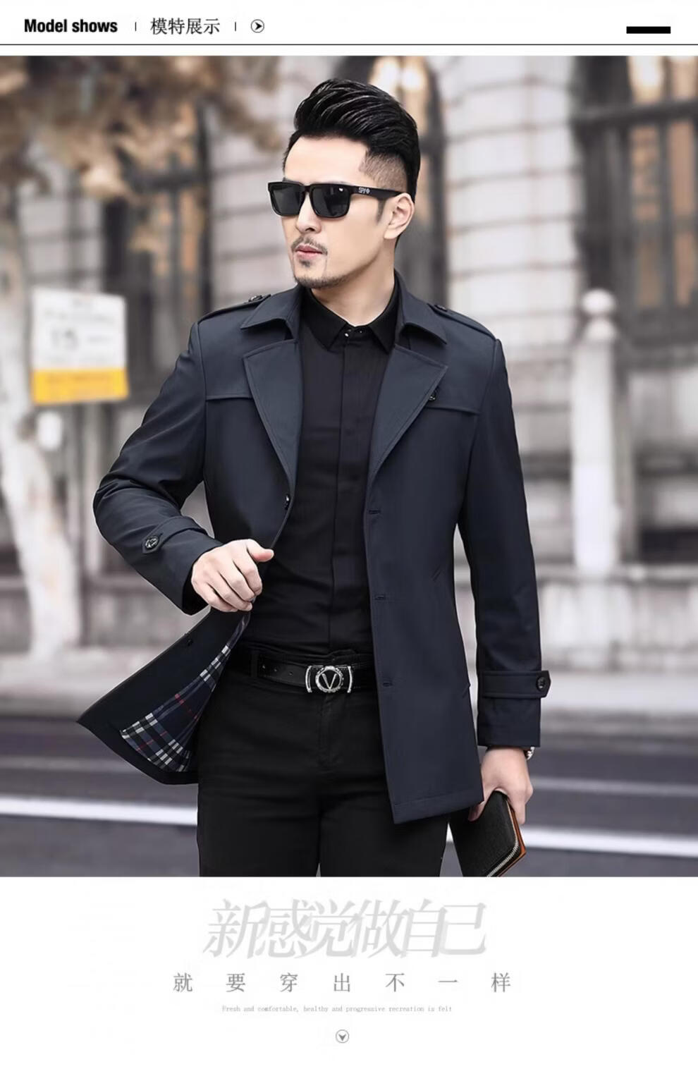Luo Meng high-end men's windbreaker spring and autumn casual jacket slim short business versatile men's fashion versatile top dark green M 170 recommended 100-125 Jin Jin equals 0.5 kg