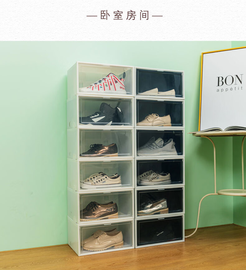 Fantasy Dustproof Transparent Flip Side Opening Basketball Shoe Storage Box Large Space-Saving High Top Shoe Box Storage Artifact Shoe Wall Ordinary Mysterious Black Buy Ten Get Ten Free 23x33x14cm