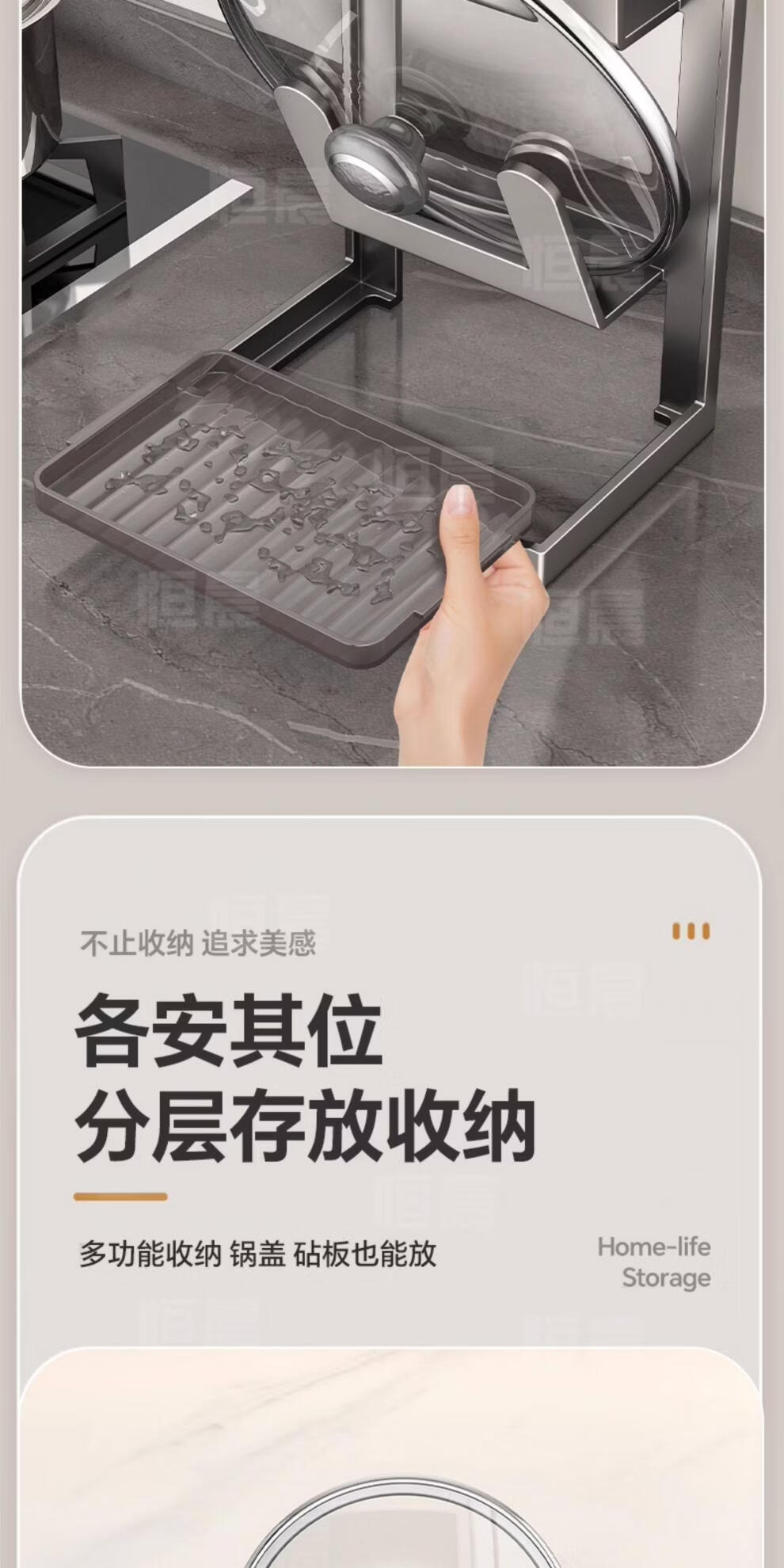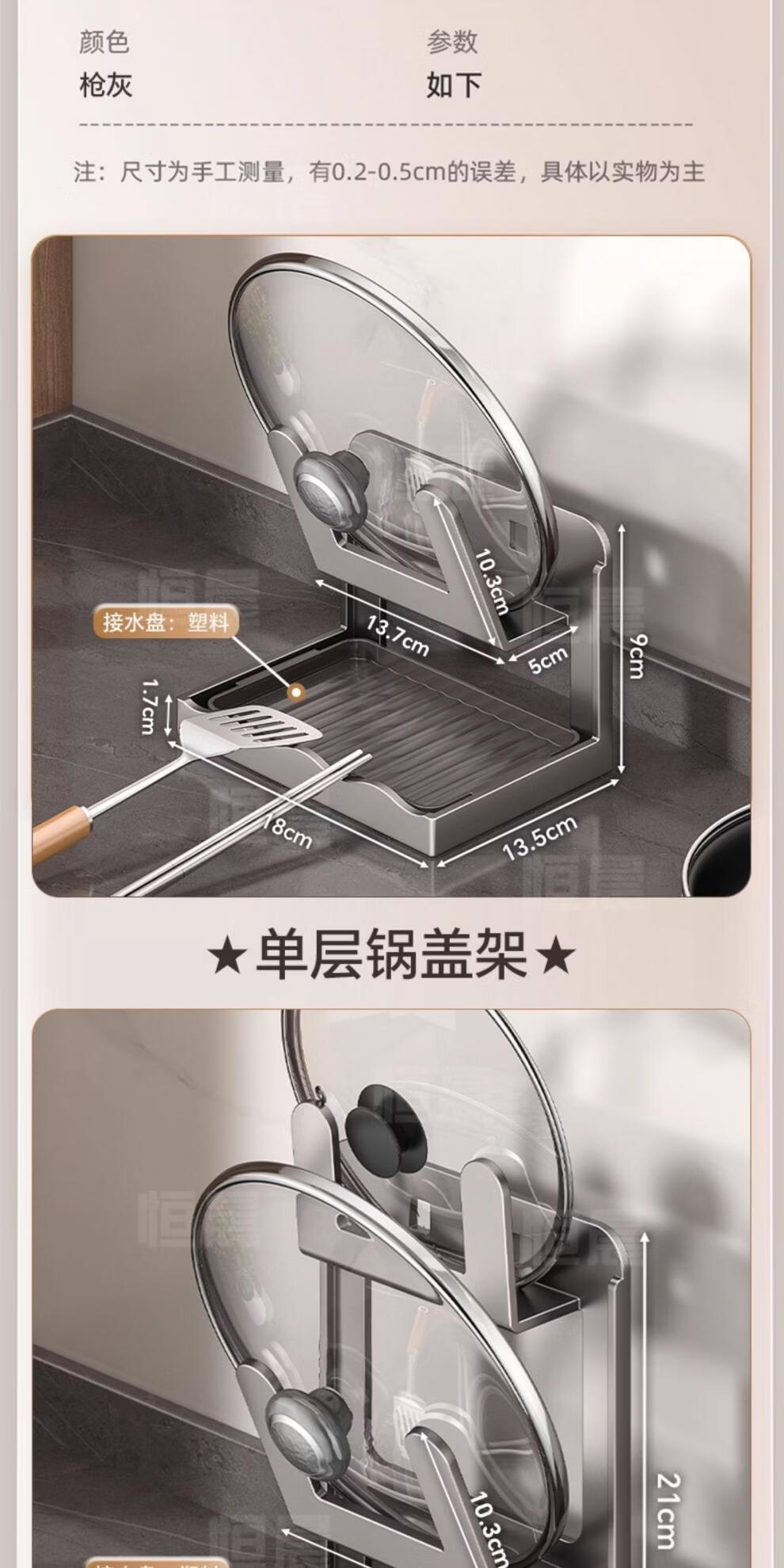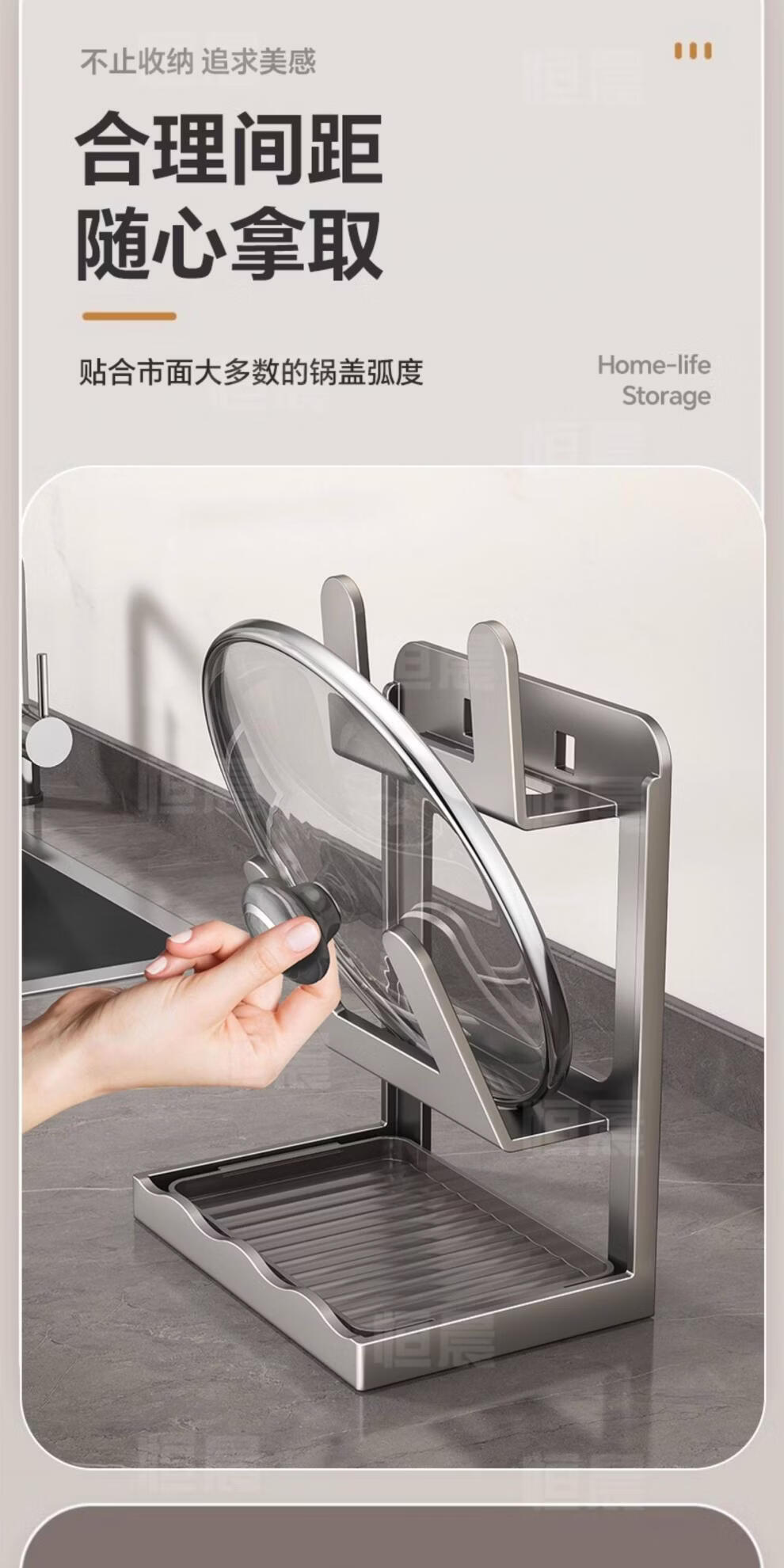 Tuojin Germany imported quality pot lid rack kitchen countertop storage rack household pot spatula rack holder to hold pot lids to drain water Starry Sky Gray-Single Layer Countertop Model