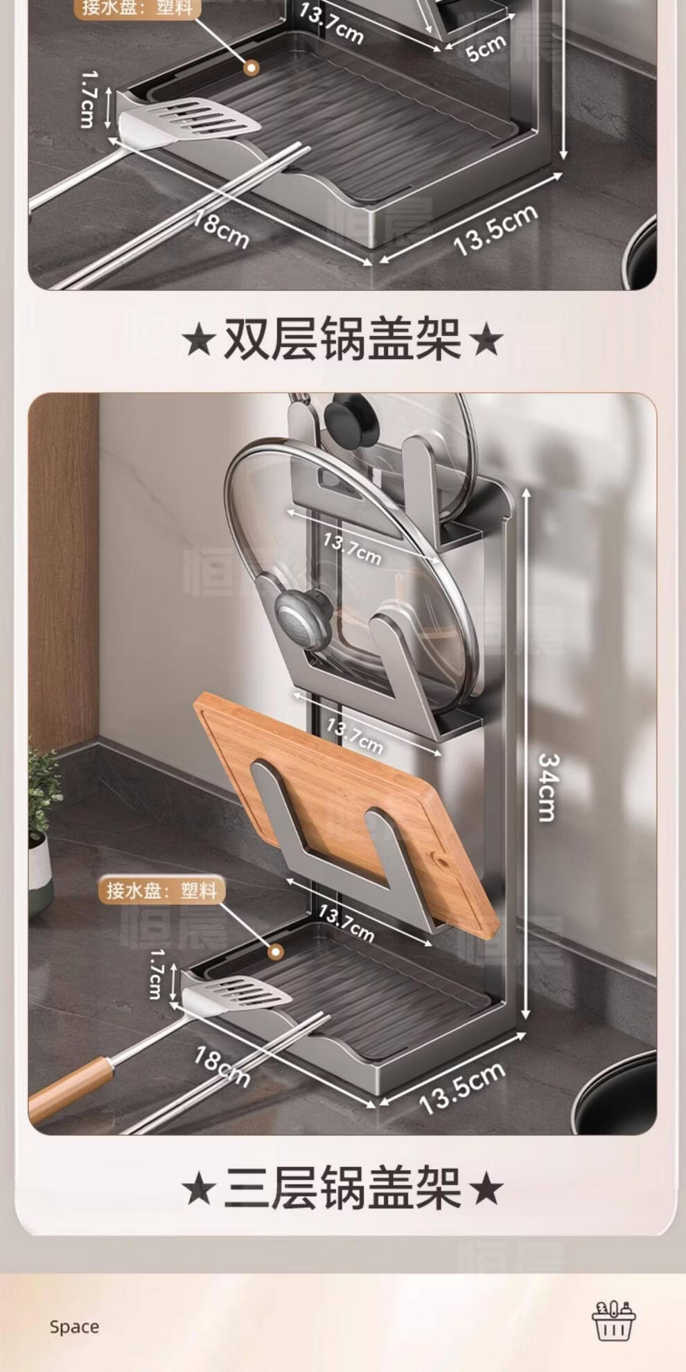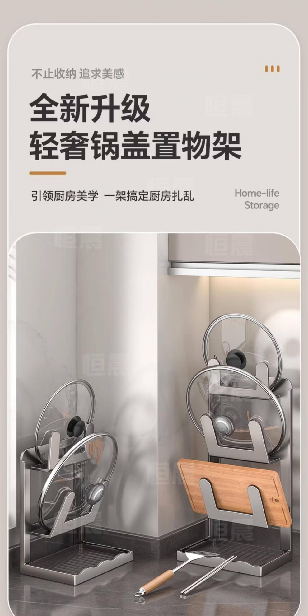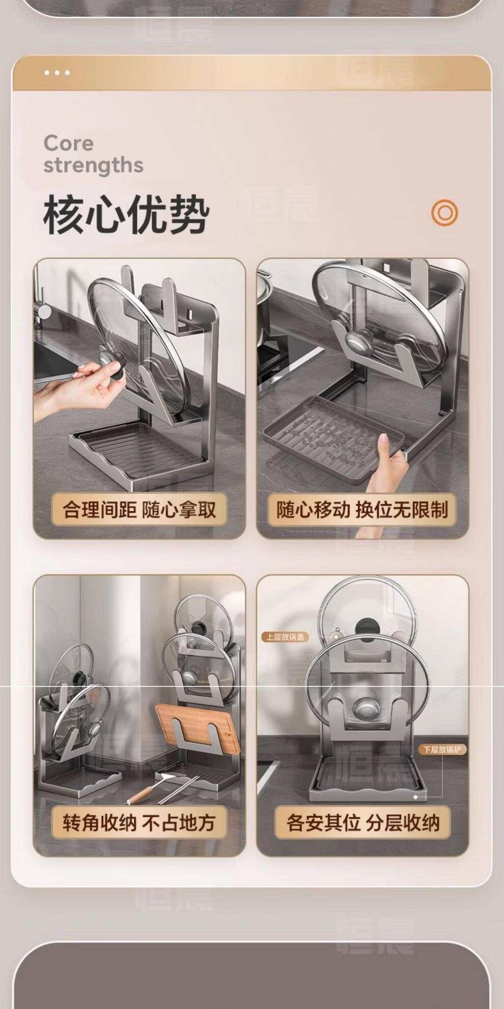Tuojin Germany imported quality pot lid rack kitchen countertop storage rack household pot spatula rack holder to hold pot lids to drain water Starry Sky Gray-Single Layer Countertop Model