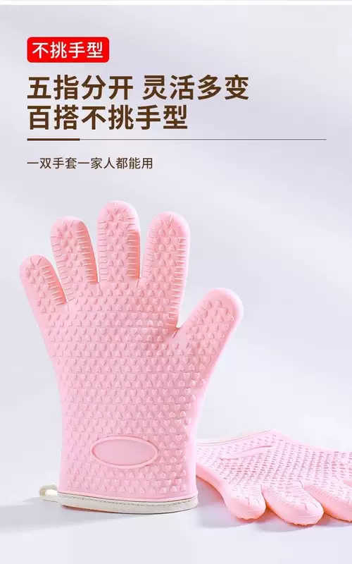 Yusenyi Kuangsha Silicone Insulated Anti-scalding Gloves Steamer Oven Baking Microwave Oven Kitchen Special Thickened Anti-Slip High Temperature Resistant Sakura Powder (2 Pack Lightweight Flexible Unisex)