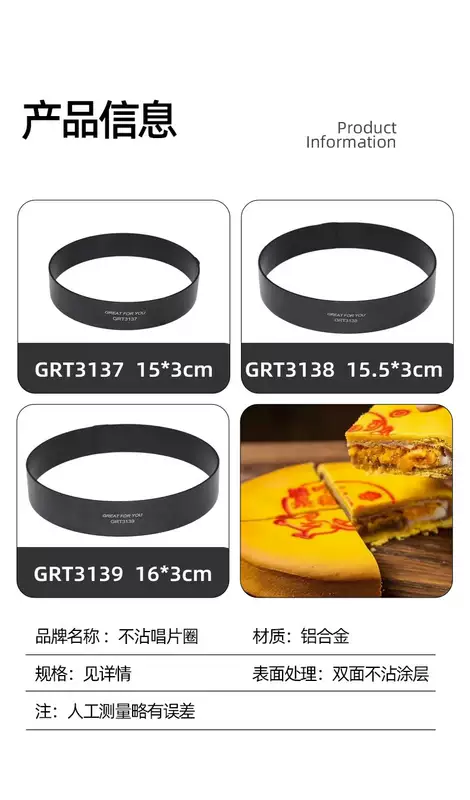 Yusenyi non-stick Danish round record ring bread mold annual ring croissant mooncake mousse ring cake drum bread mold record ring 15x3CM non-stick style record ring 15x3CM non-stick style 15g
