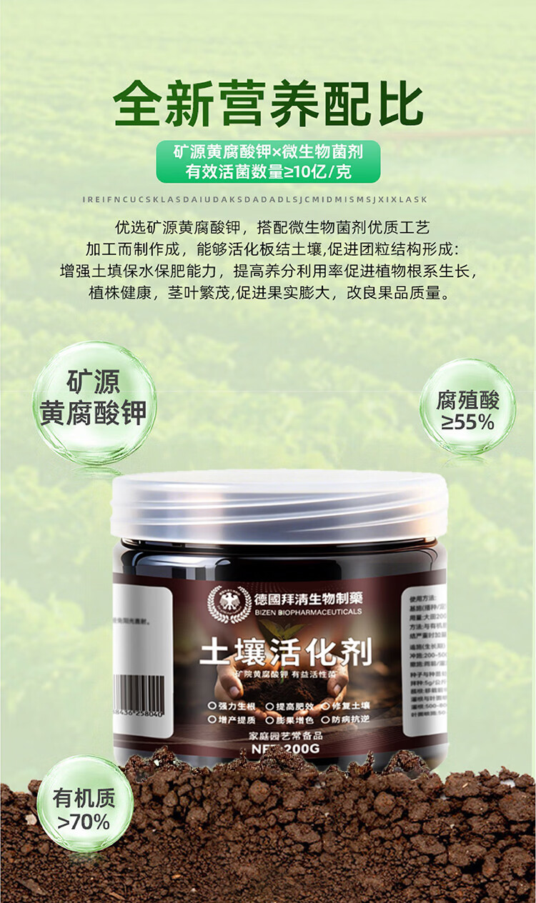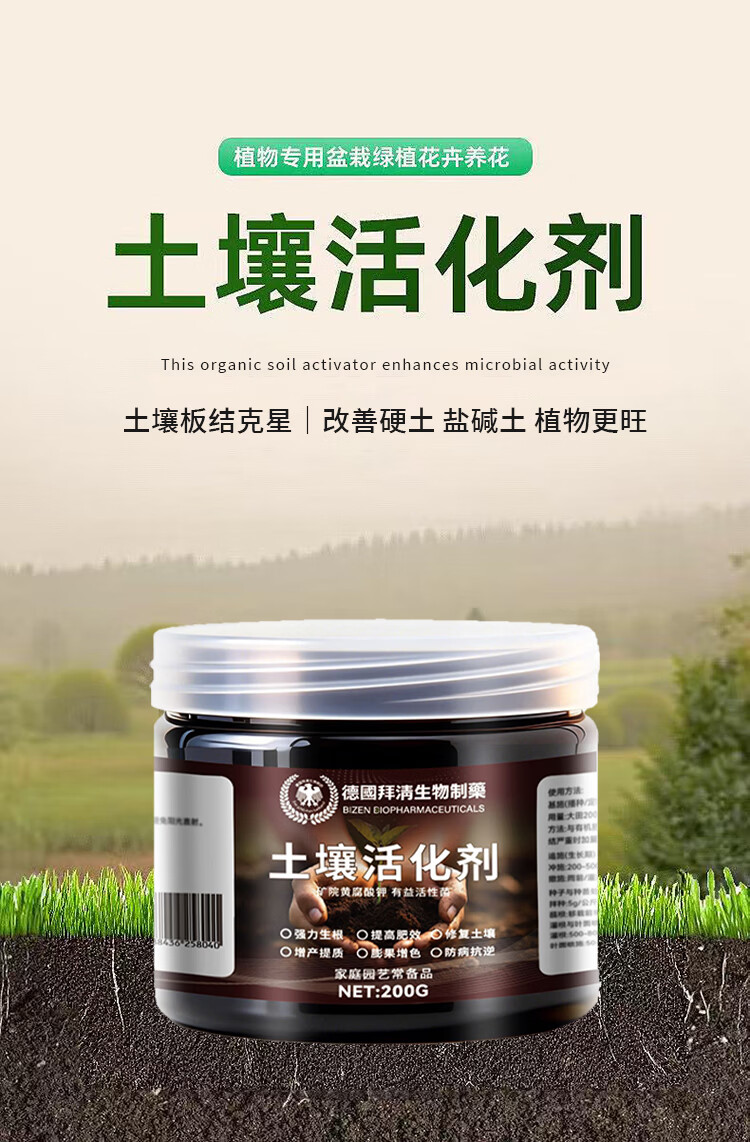 Soil Activator Activation Bao organically improved loose soil essence nutrient solution flower fertilizer microbial black water for flower cultivation 1 bottle 200g to improve soil/promote rooting