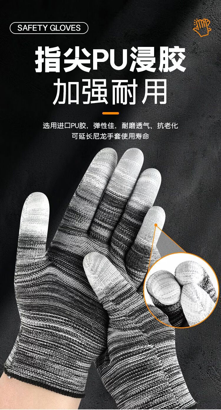 OTHERPU coated finger rubber gloves, wear-resistant, non-slip, sun-proof, thin, breathable, labor protection work protective gloves for men and women, wholesale women, black coated fingers, buy 36+36, 72 pieces in total, direct sale, medium size, unisex