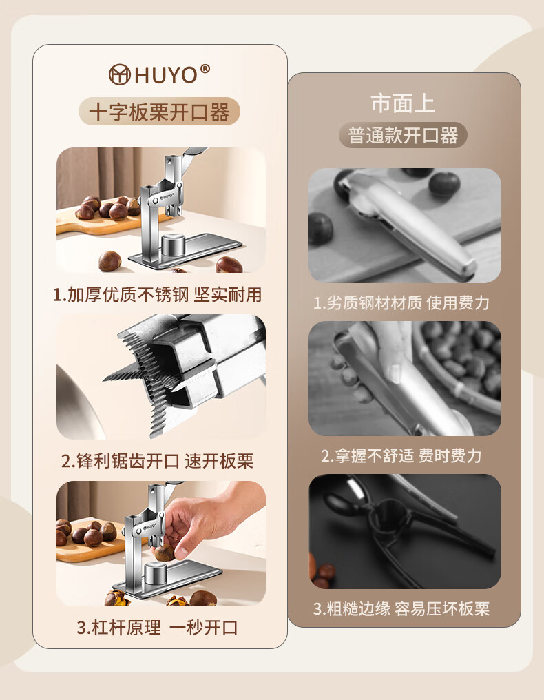 Huyan thickened stainless steel chestnut opener labor-saving shelling stainless steel small chestnut opener small chestnut opener