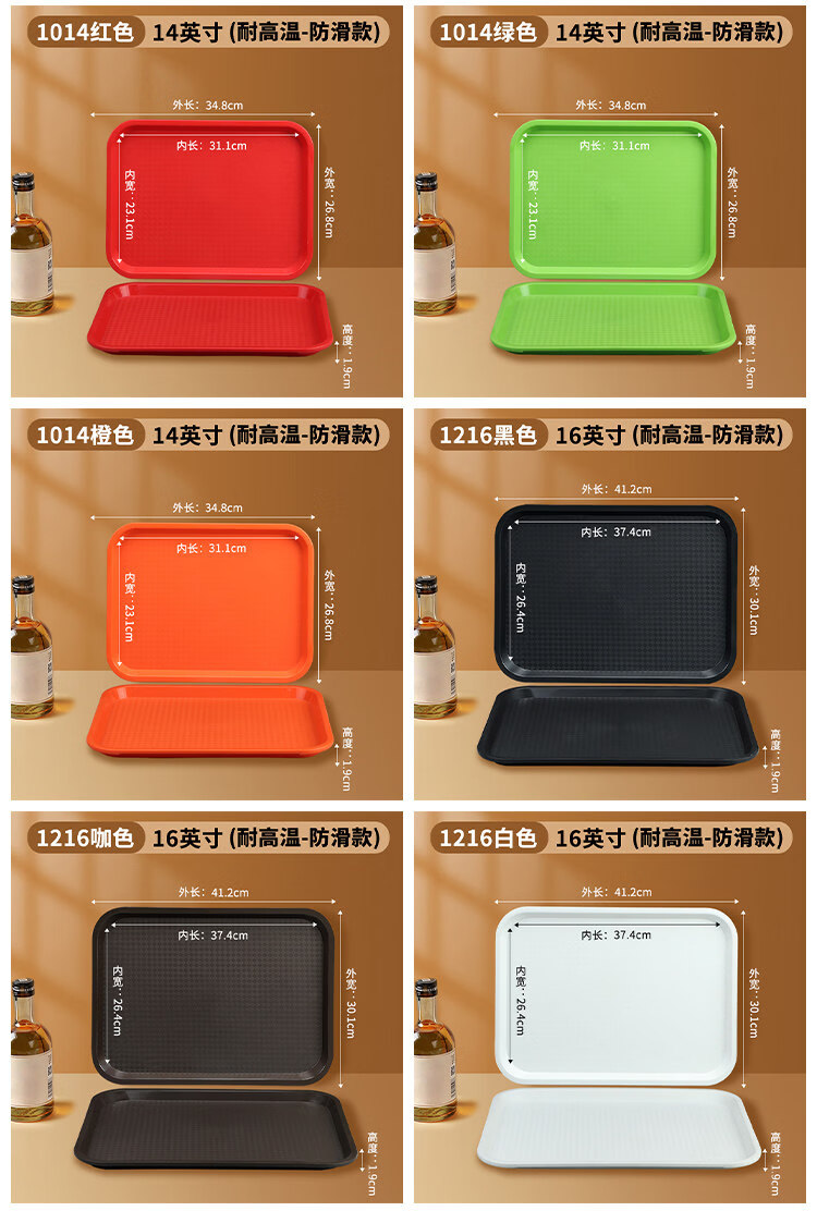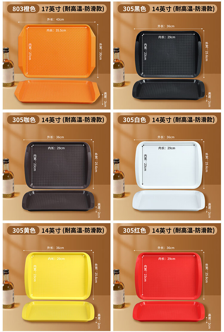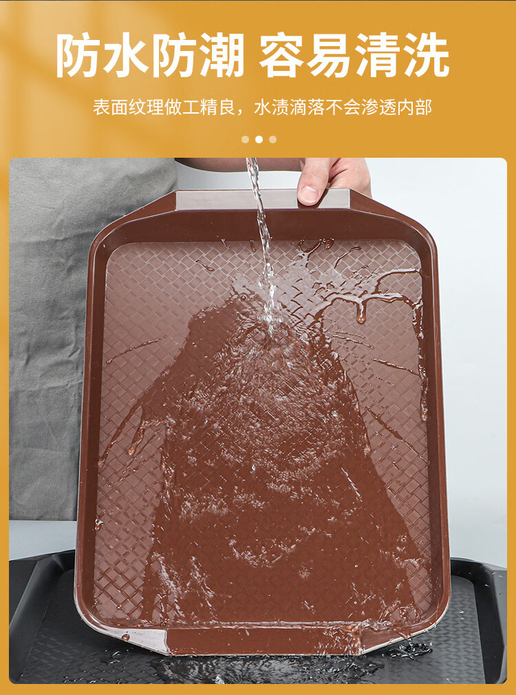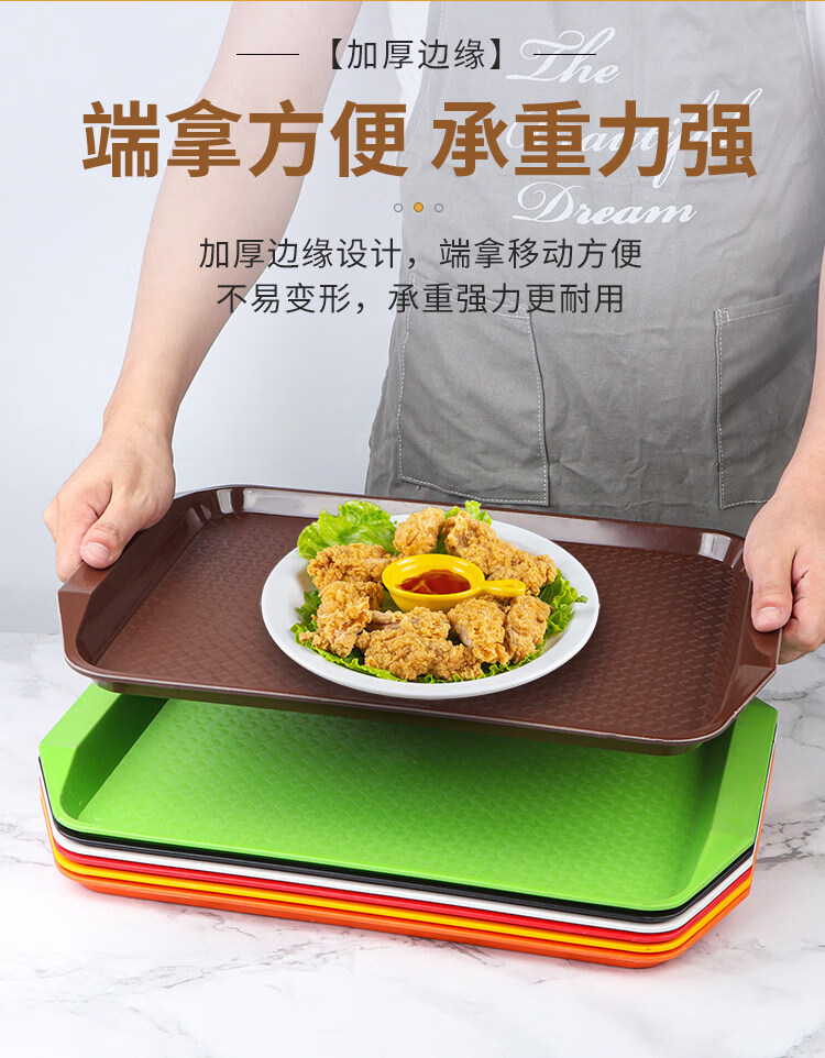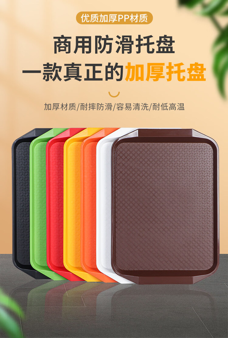 Tuojin rectangular plastic tray thickened non-slip commercial canteen fast food burger plate restaurant restaurant serving plate double ears - black large thickened non-slip style _10 pieces