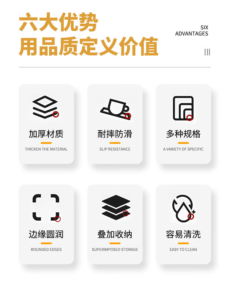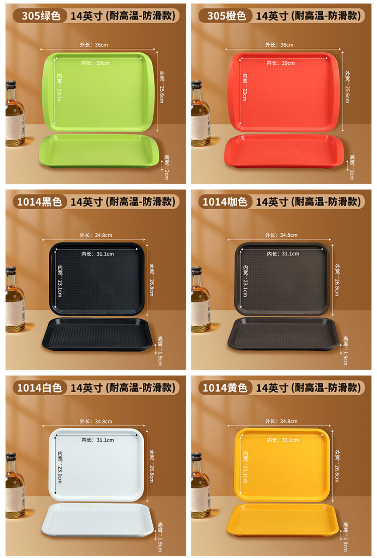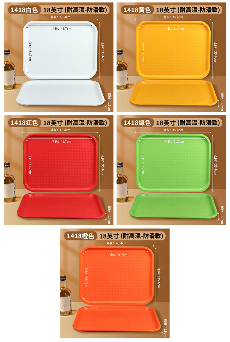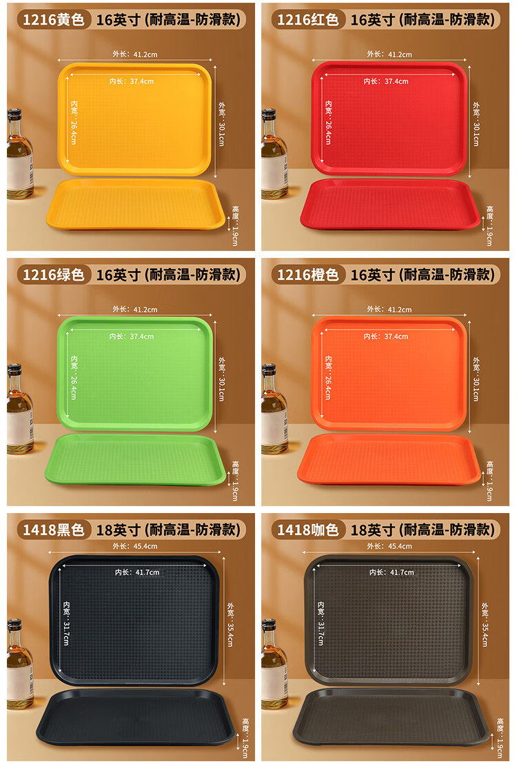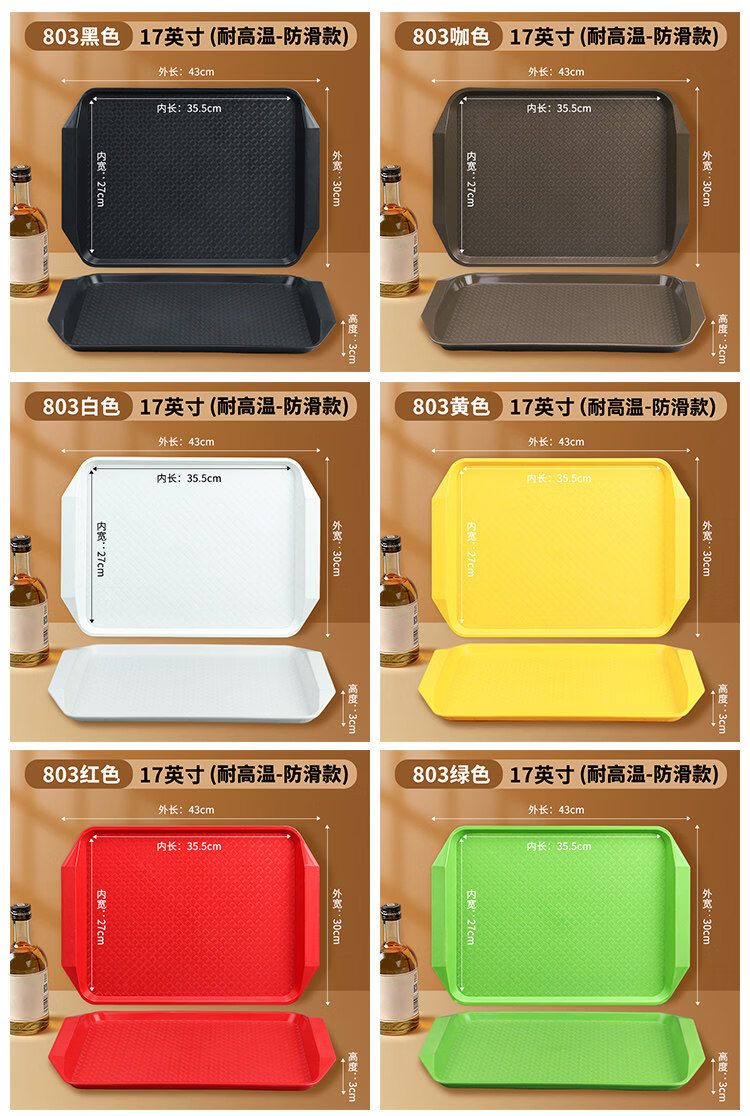 Tuojin rectangular plastic tray thickened non-slip commercial canteen fast food burger plate restaurant restaurant serving plate double ears - black large thickened non-slip style _10 pieces