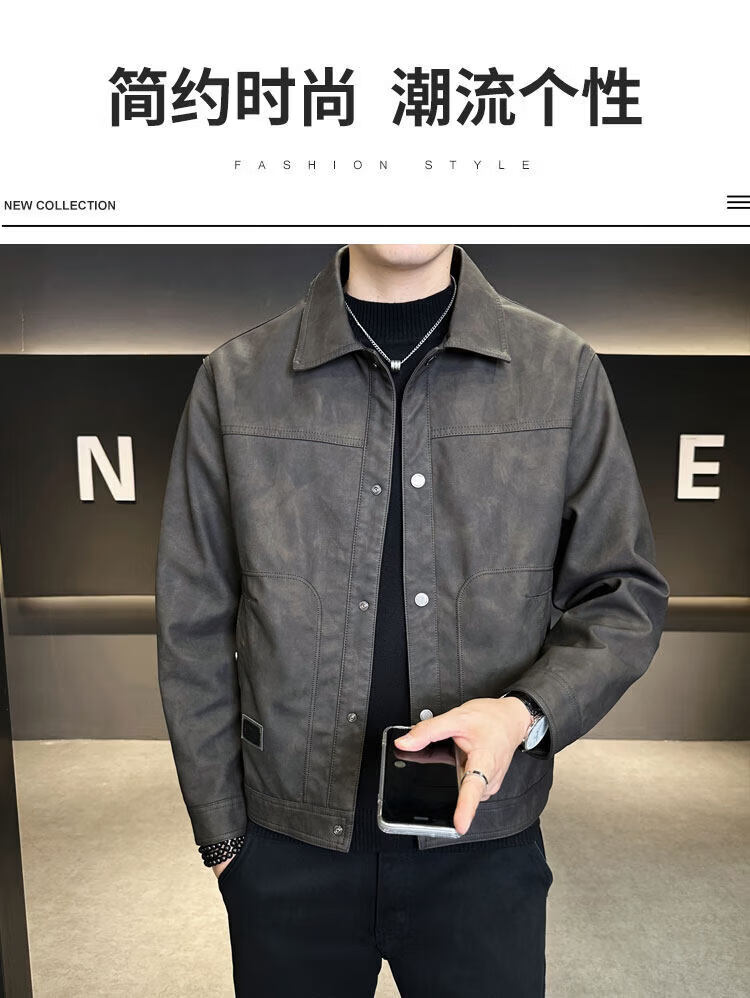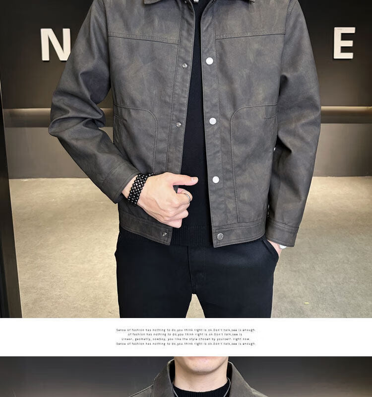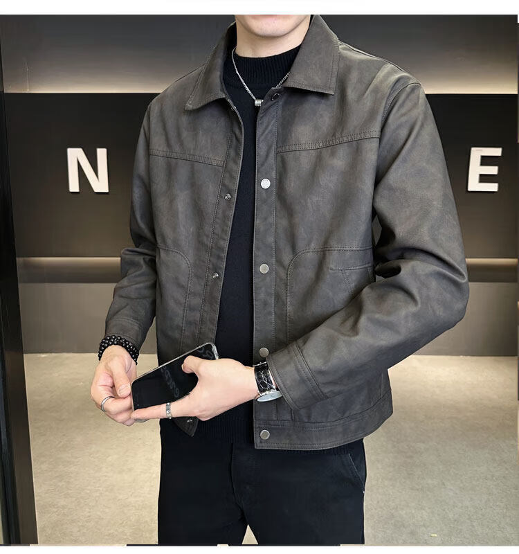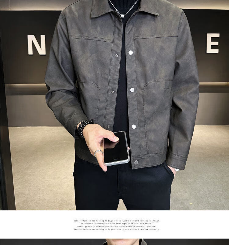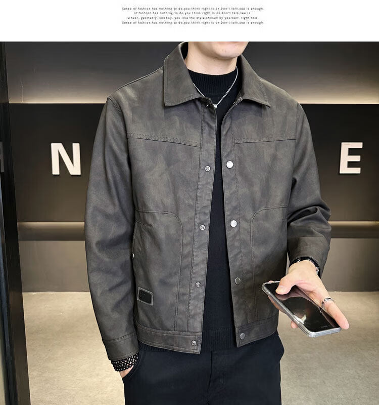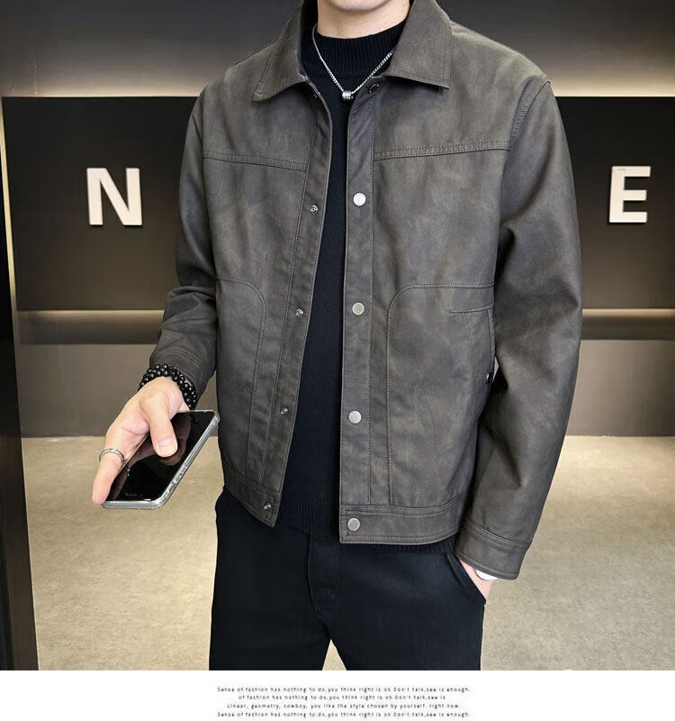Xiaohongshu hot style men's jacket 2025 new spring and autumn trendy brand lapel sense handsome casual motorcycle leather black gray L