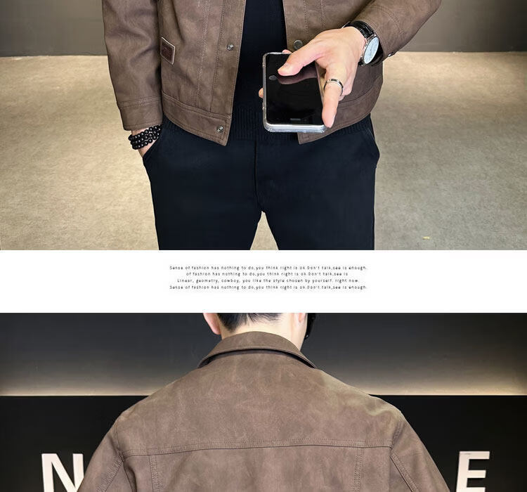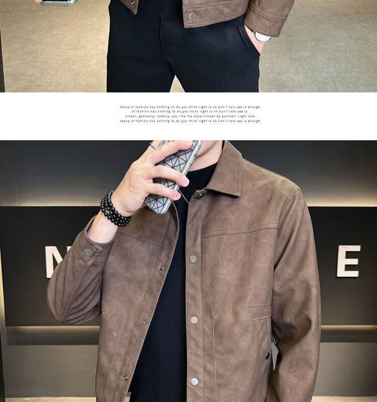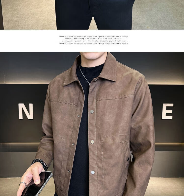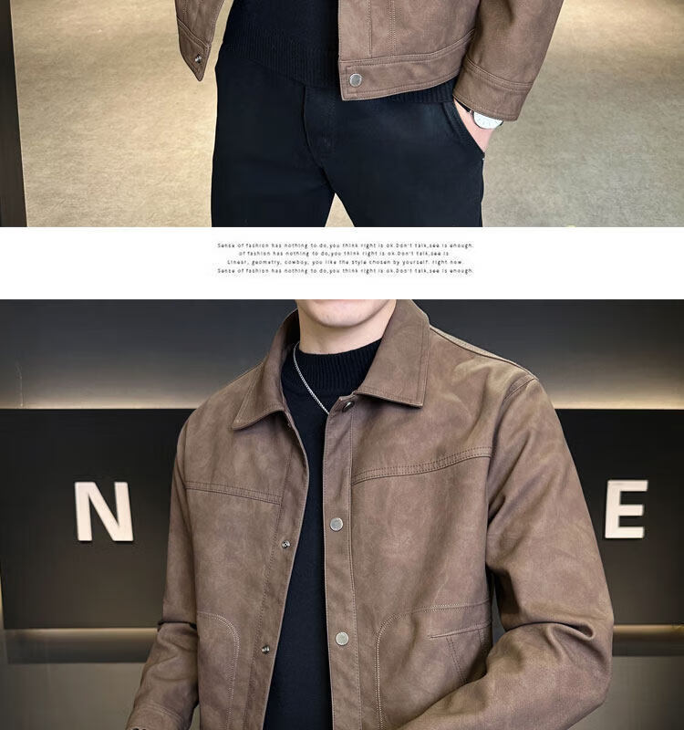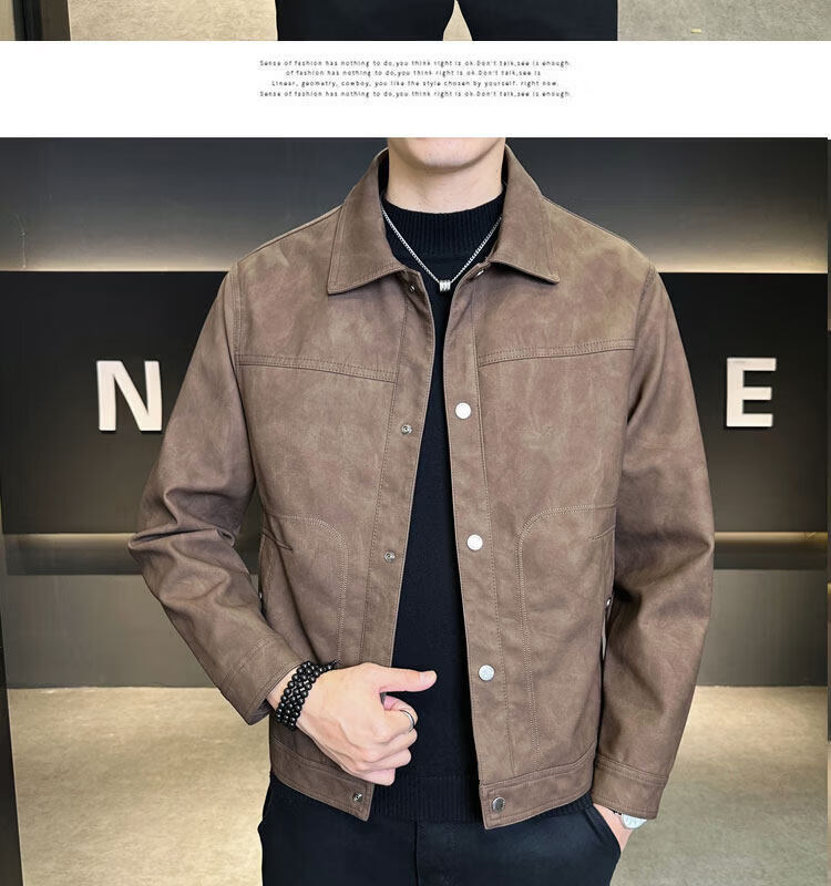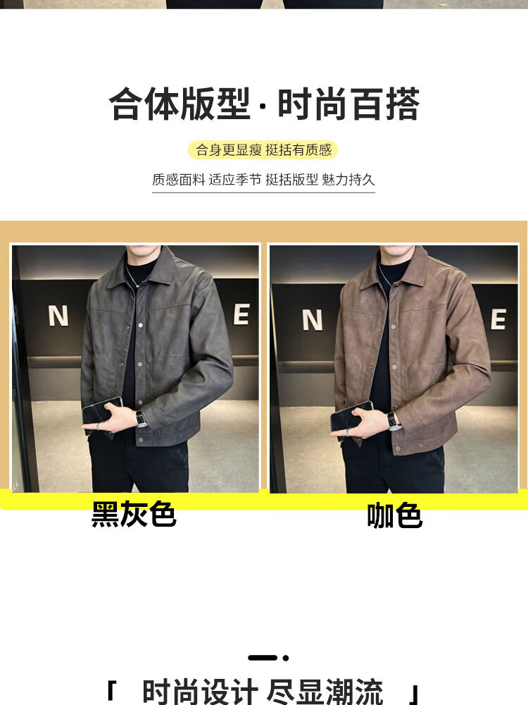 Xiaohongshu hot style men's jacket 2025 new spring and autumn trendy brand lapel sense handsome casual motorcycle leather black gray L