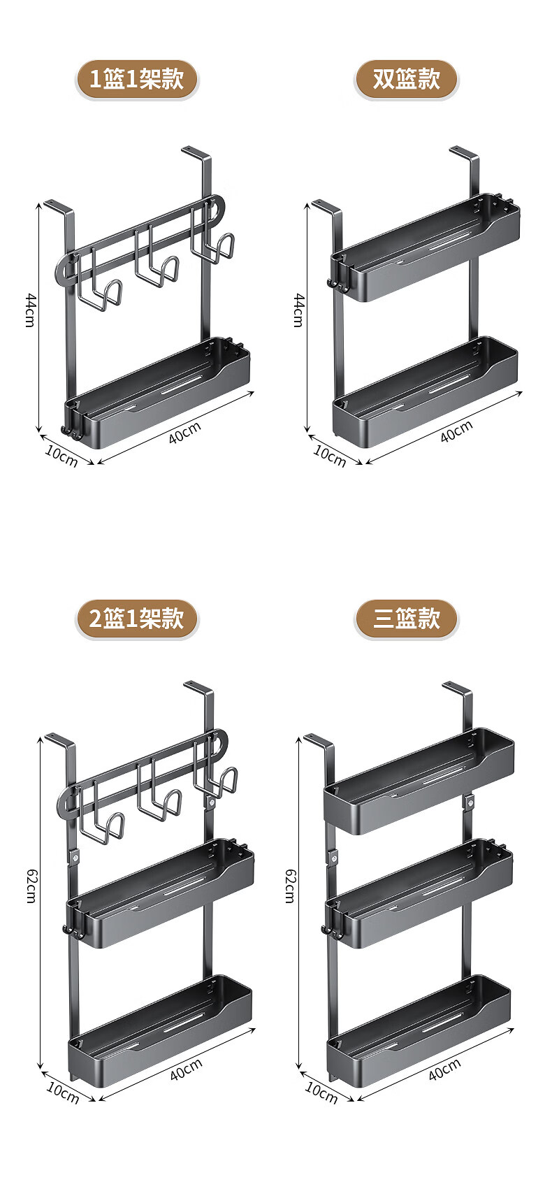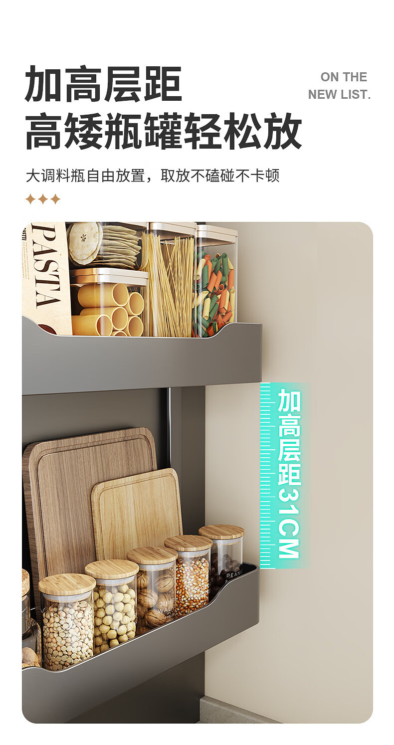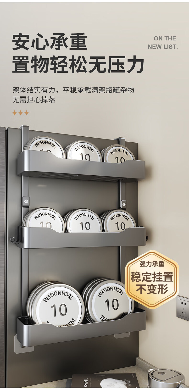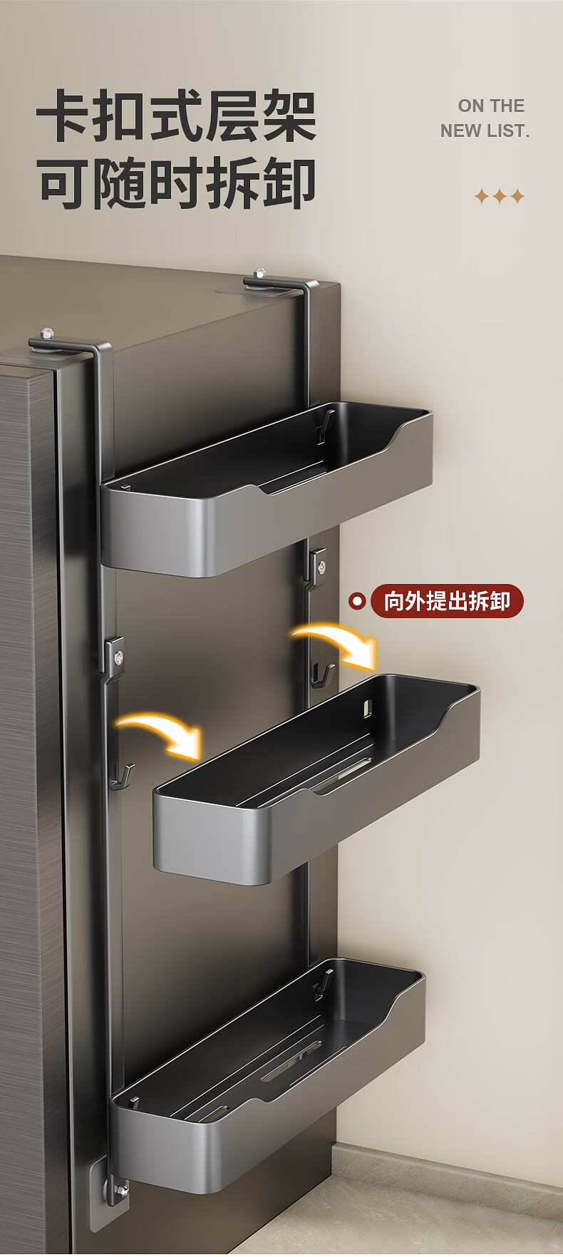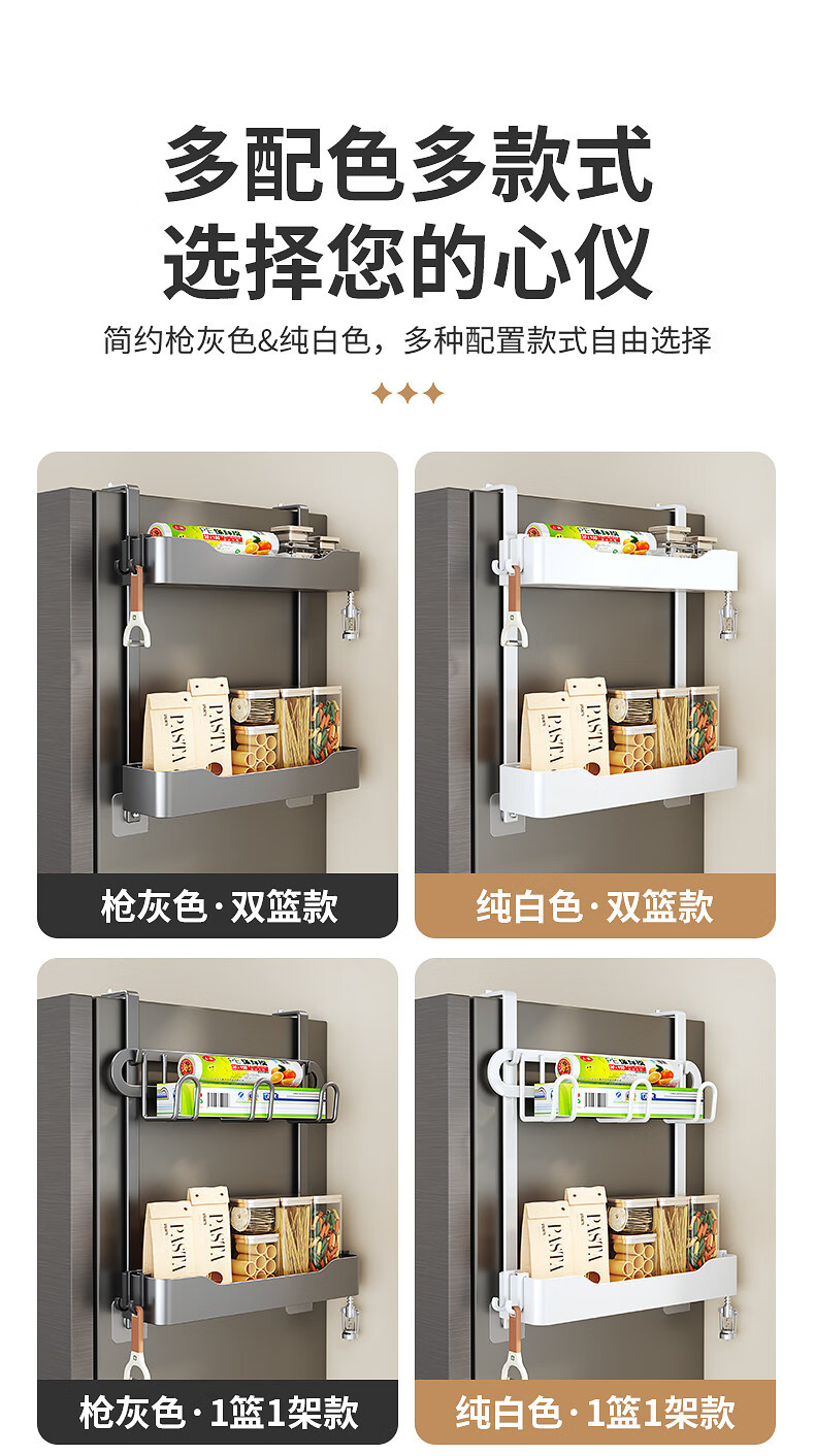 Tuojin Kitchen Refrigerator Rack Side Storage Shelves Wall-mounted Household Multi-Layer Condiment Supplies Cling Film Classic White Double Layer 1 Basket 1 Rack Upgraded Thickening - Increased Layer Spacing