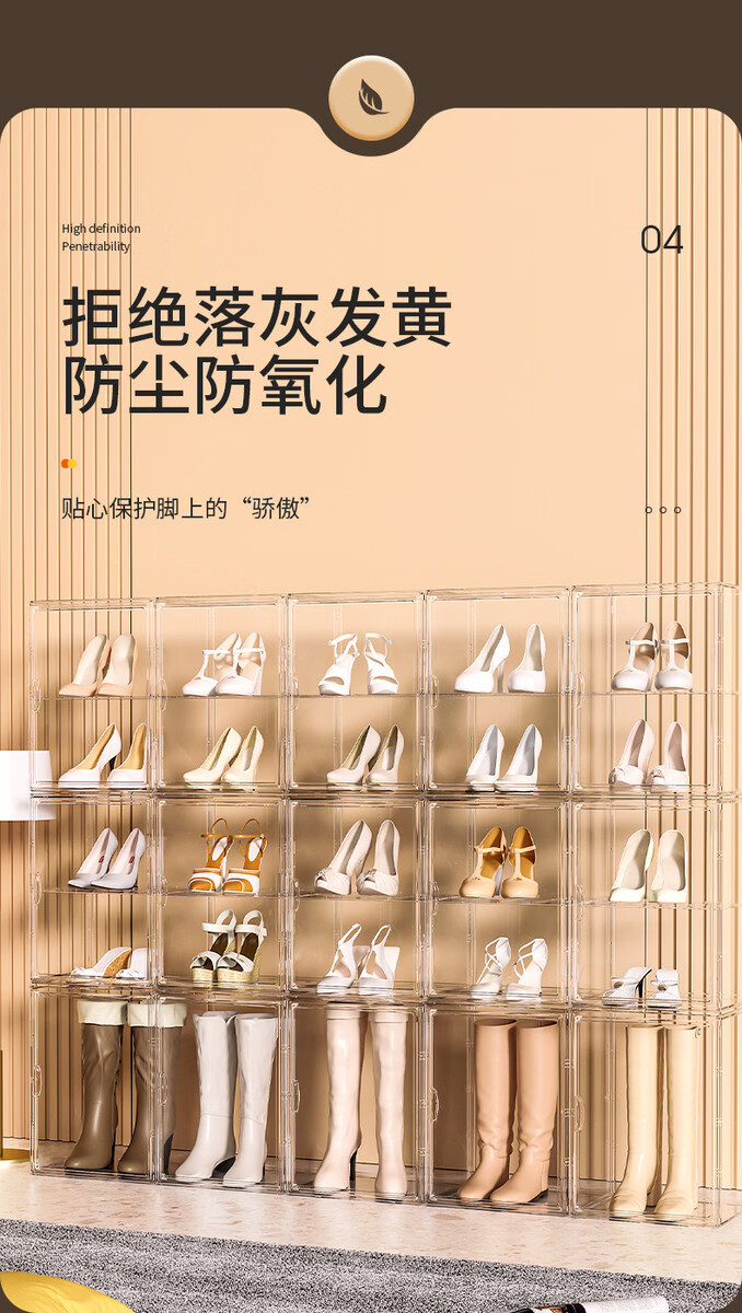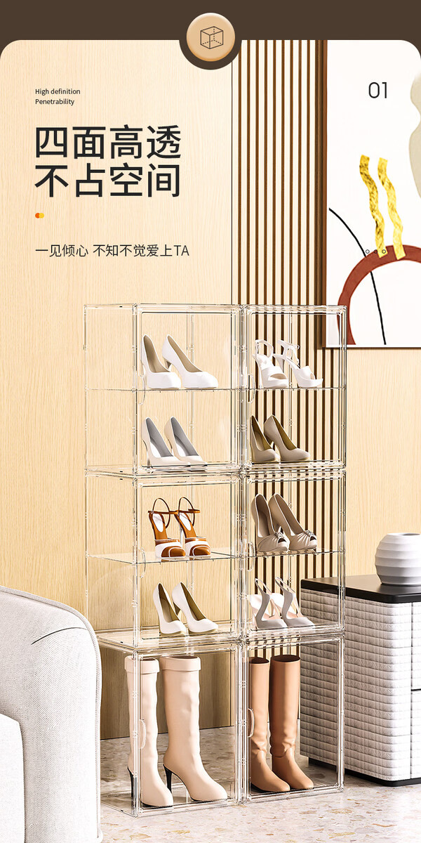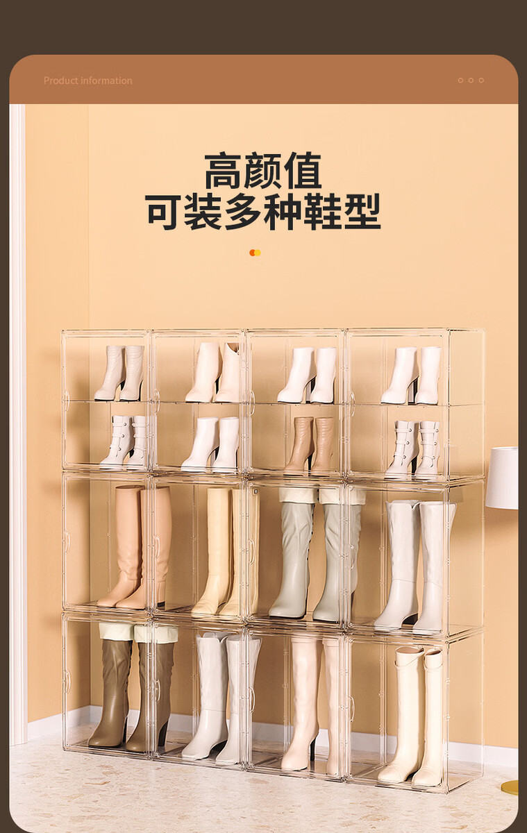 Yusenyi Acrylic Shoe Box Long Boot Storage Box Fully Transparent Anti-Oxidation Storage Box for Martin Boots to Save Space Extra Large 1 Pack High 39CM Can Hold Boots Fully Transparent