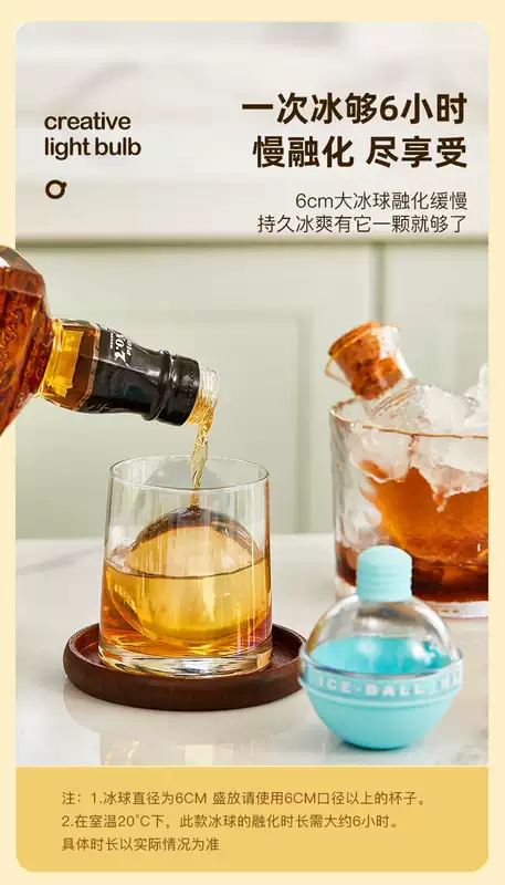 Yusenyi light bulb ice ball ice making cup whiskey mixing spherical ice cube ice making mold food grade ice making artifact random color (2 pieces)