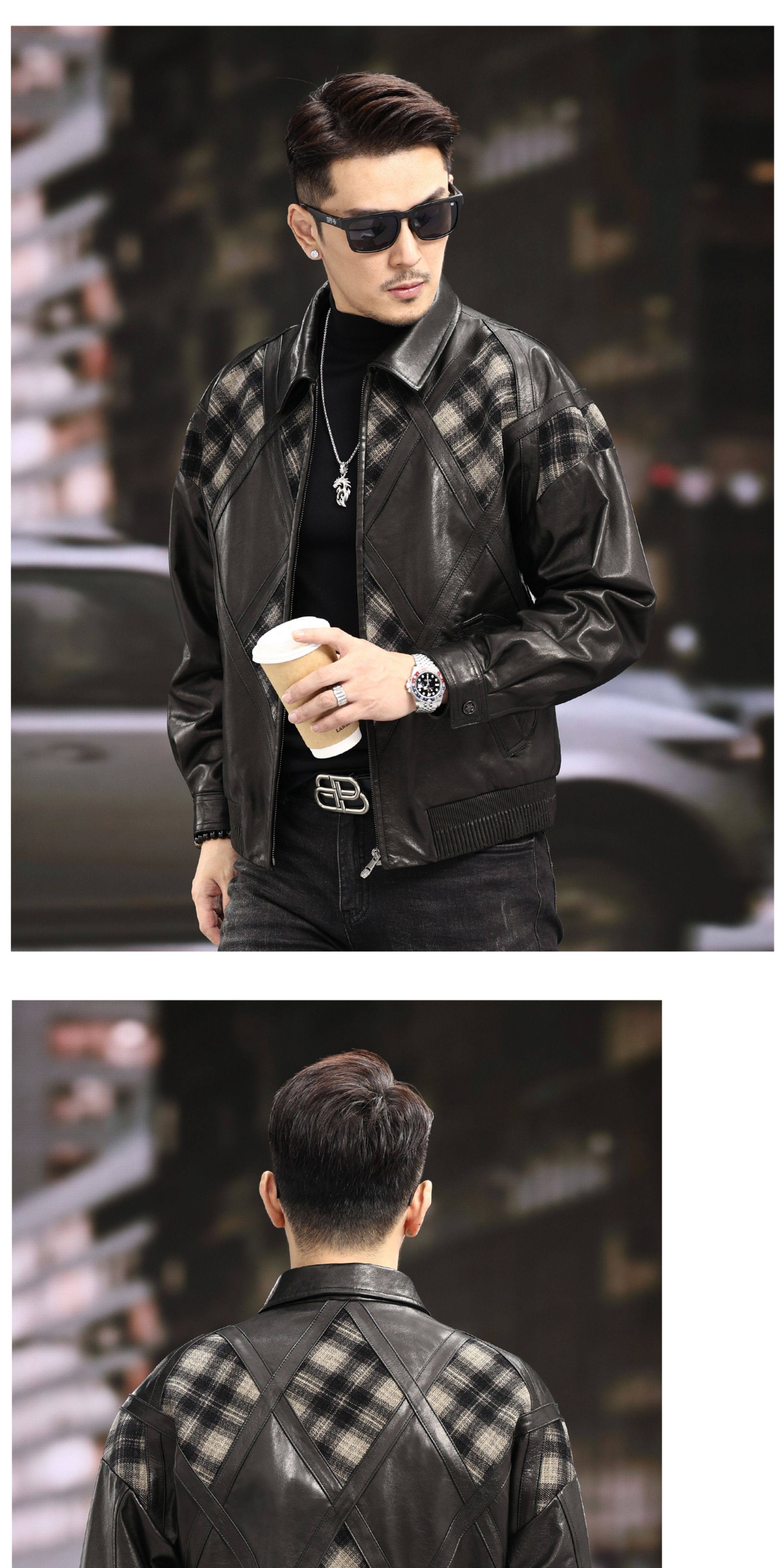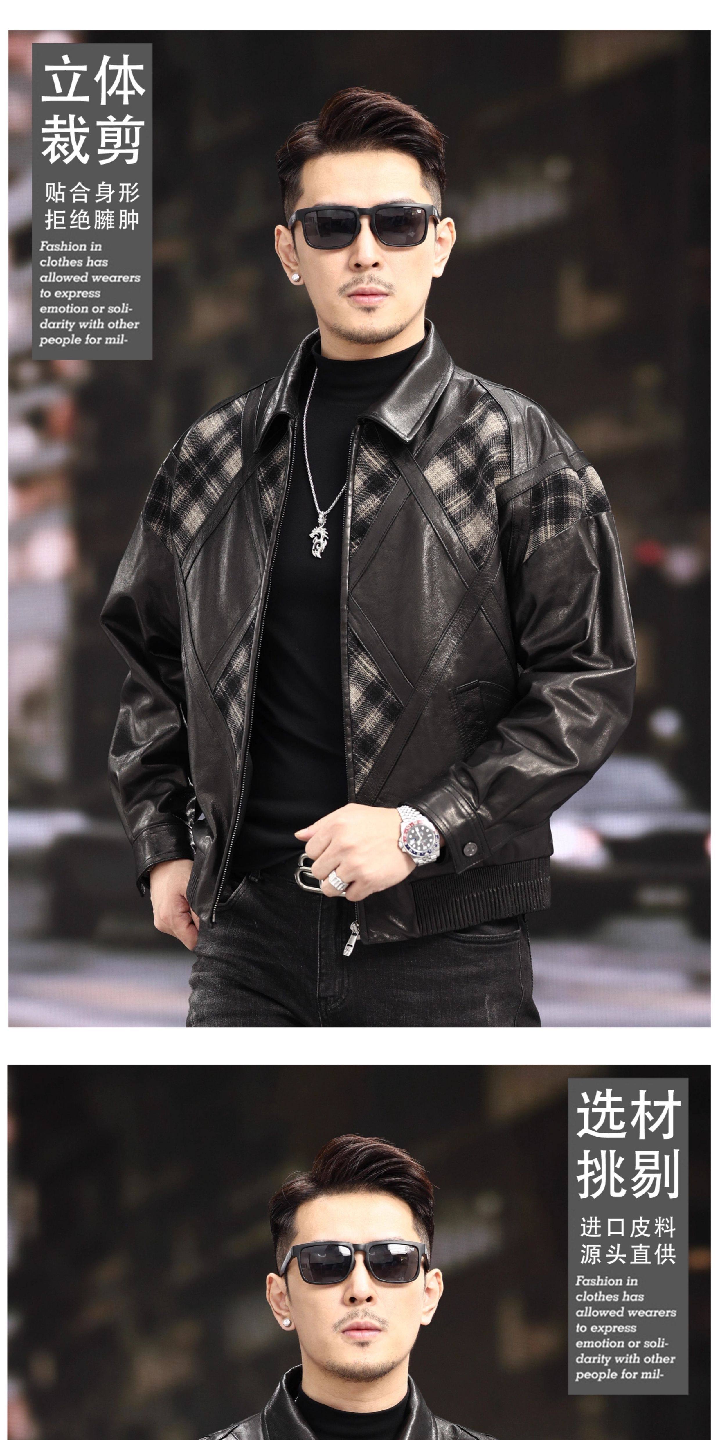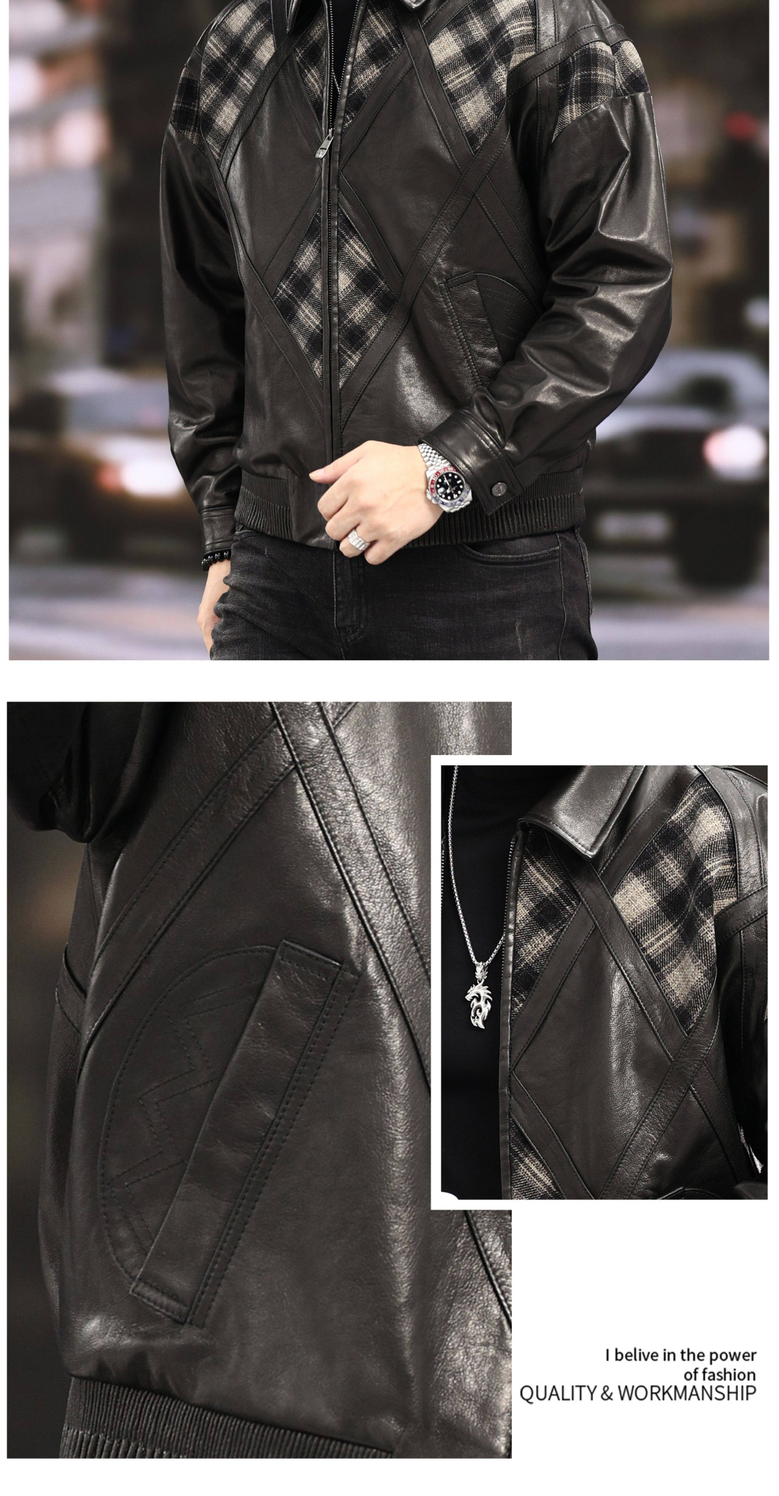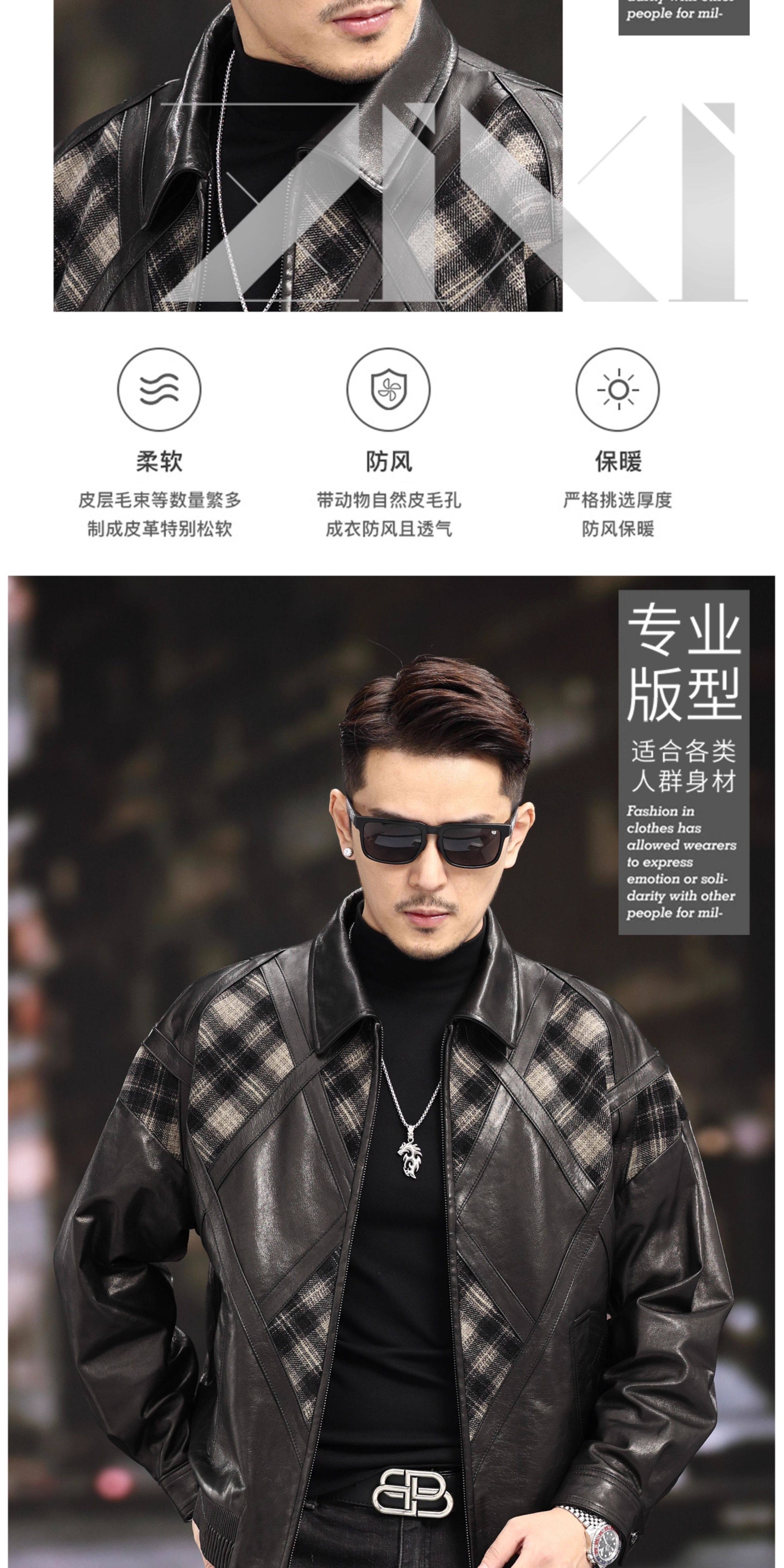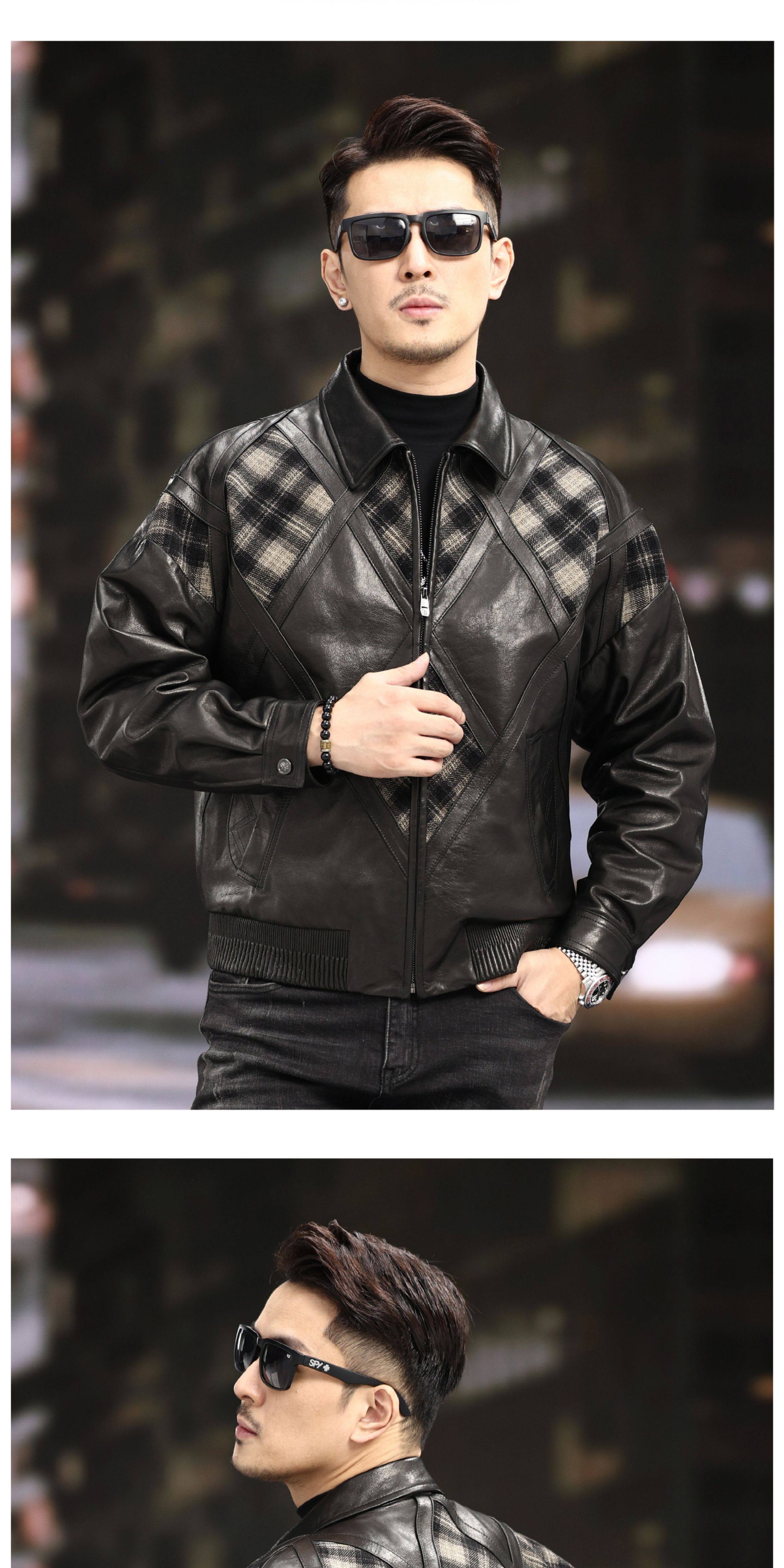 Xiaohongshu’s popular ZIXI vintage leather jacket for men with genuine leather goatskin spliced woolen lapels, removable thickened liner, black single lining M 16545-55kg