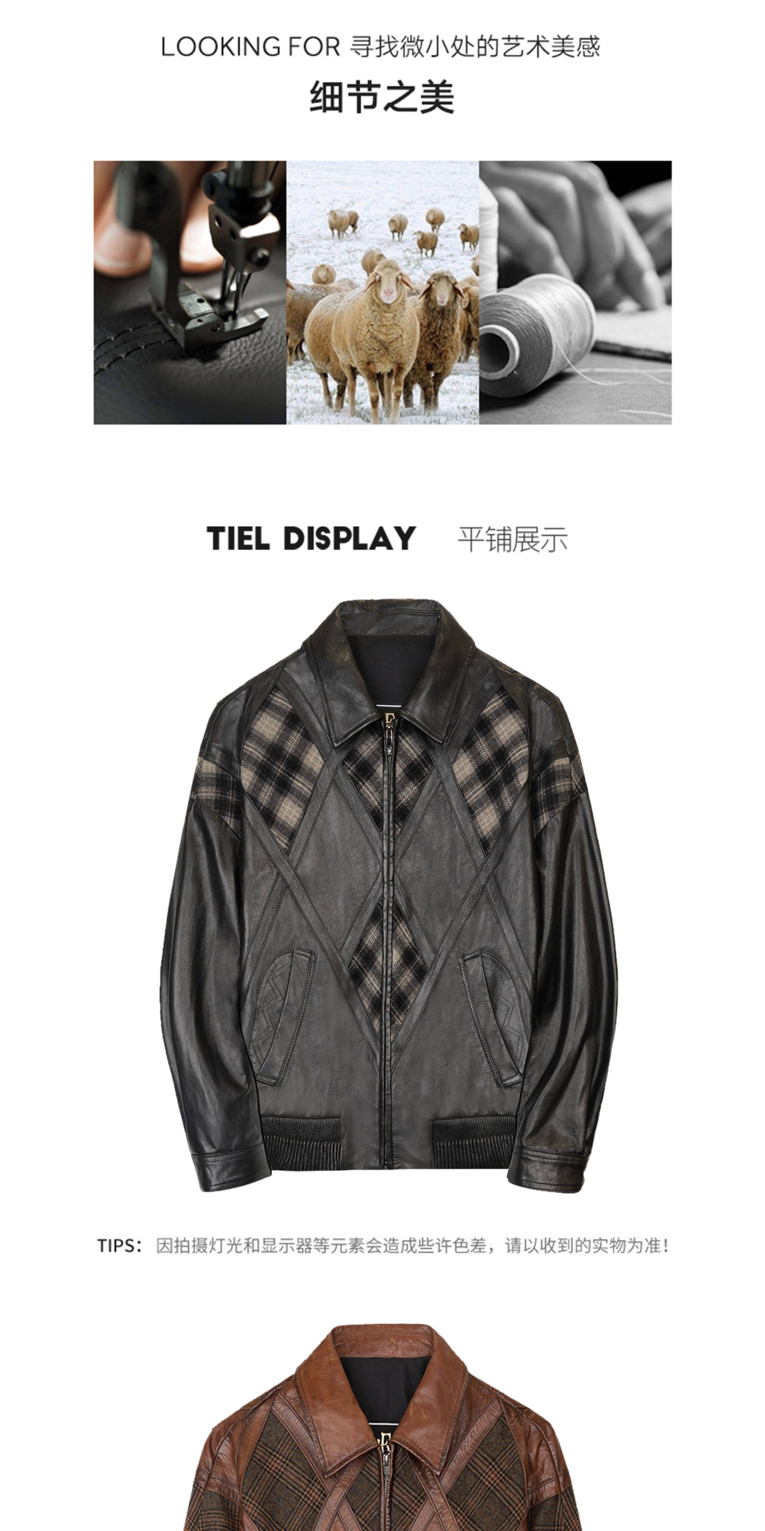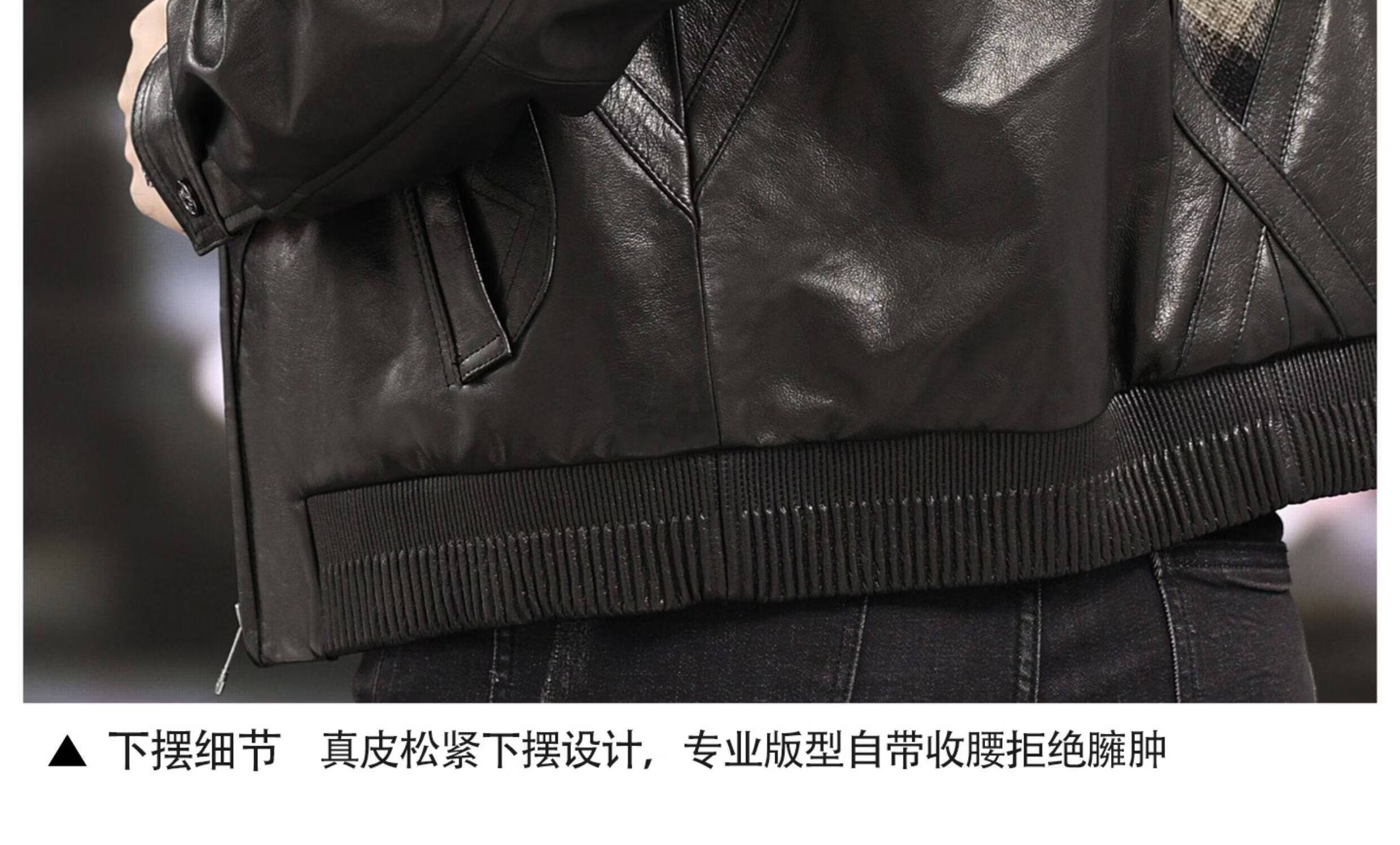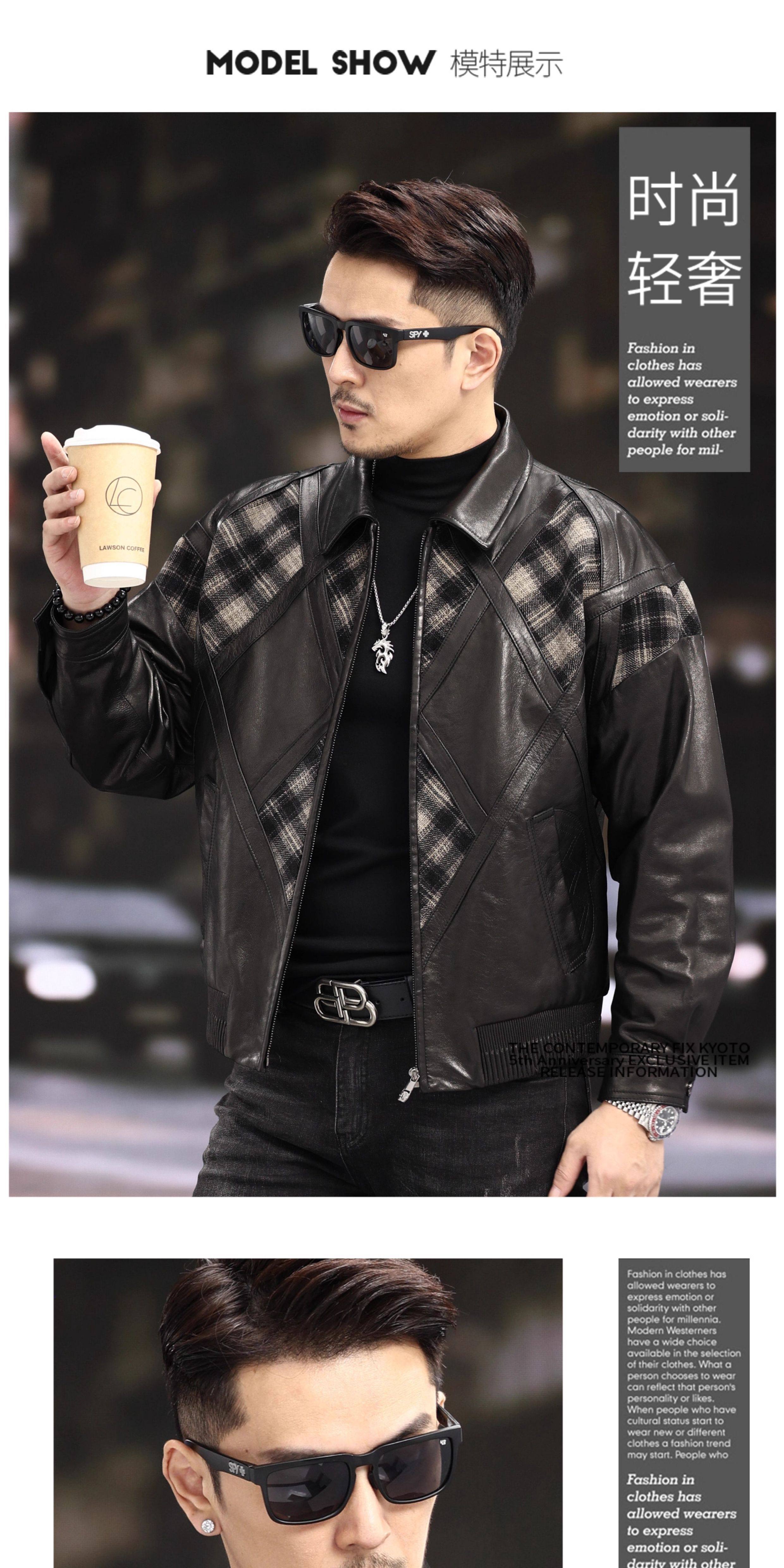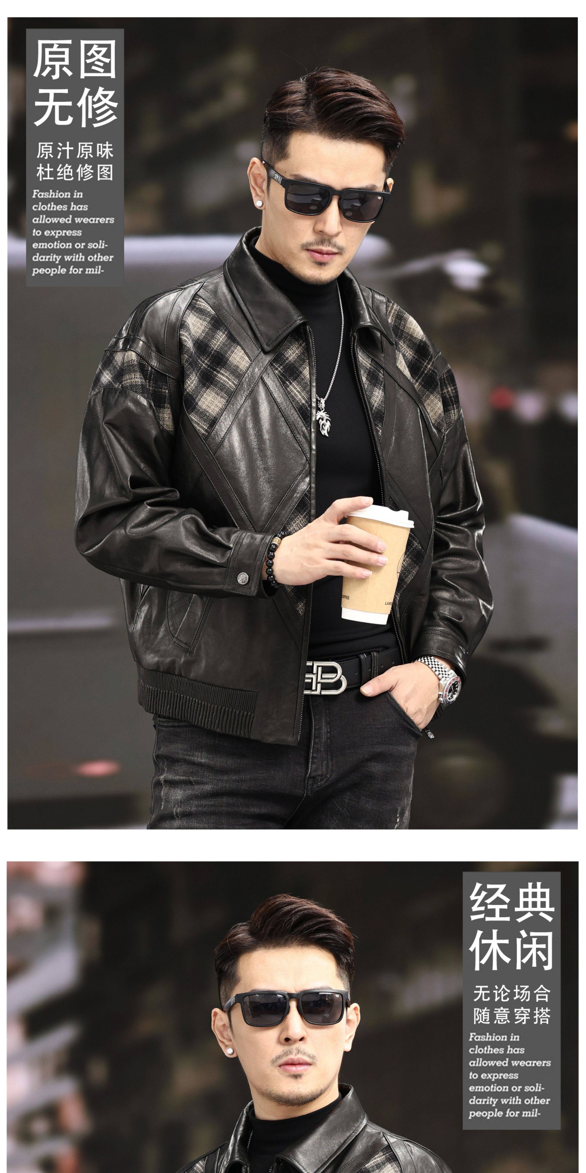 Xiaohongshu’s popular ZIXI vintage leather jacket for men with genuine leather goatskin spliced woolen lapels, removable thickened liner, black single lining M 16545-55kg