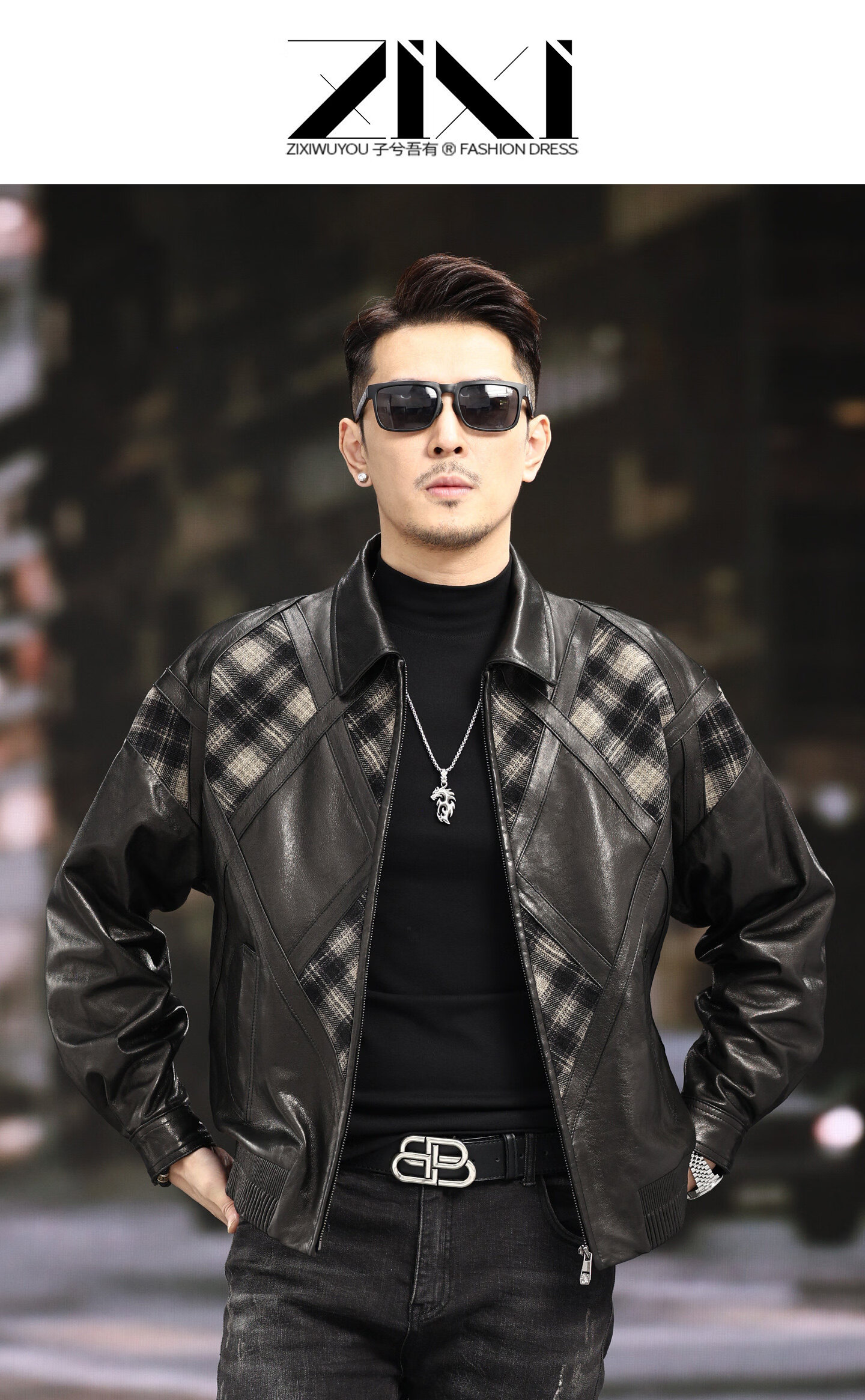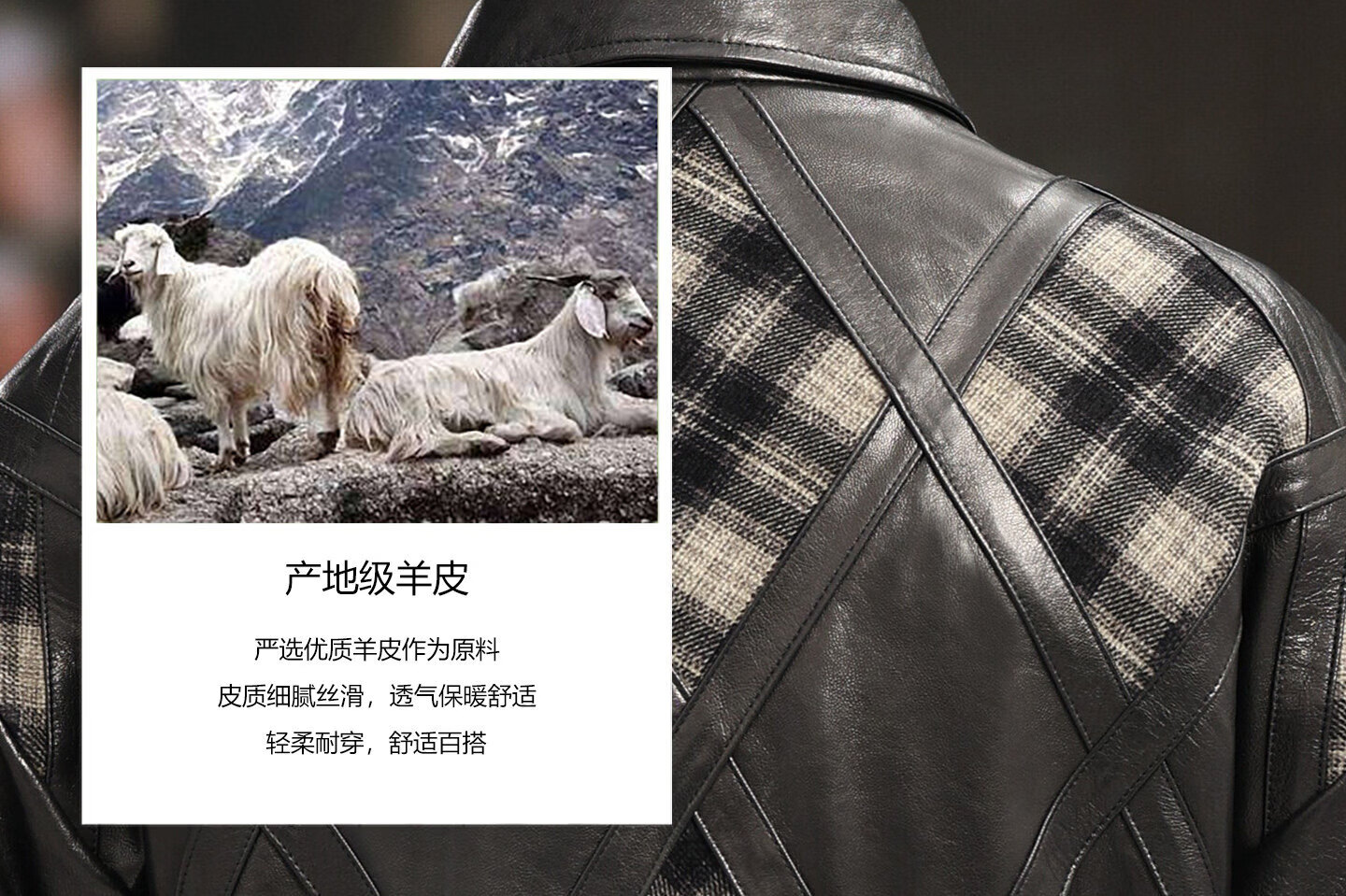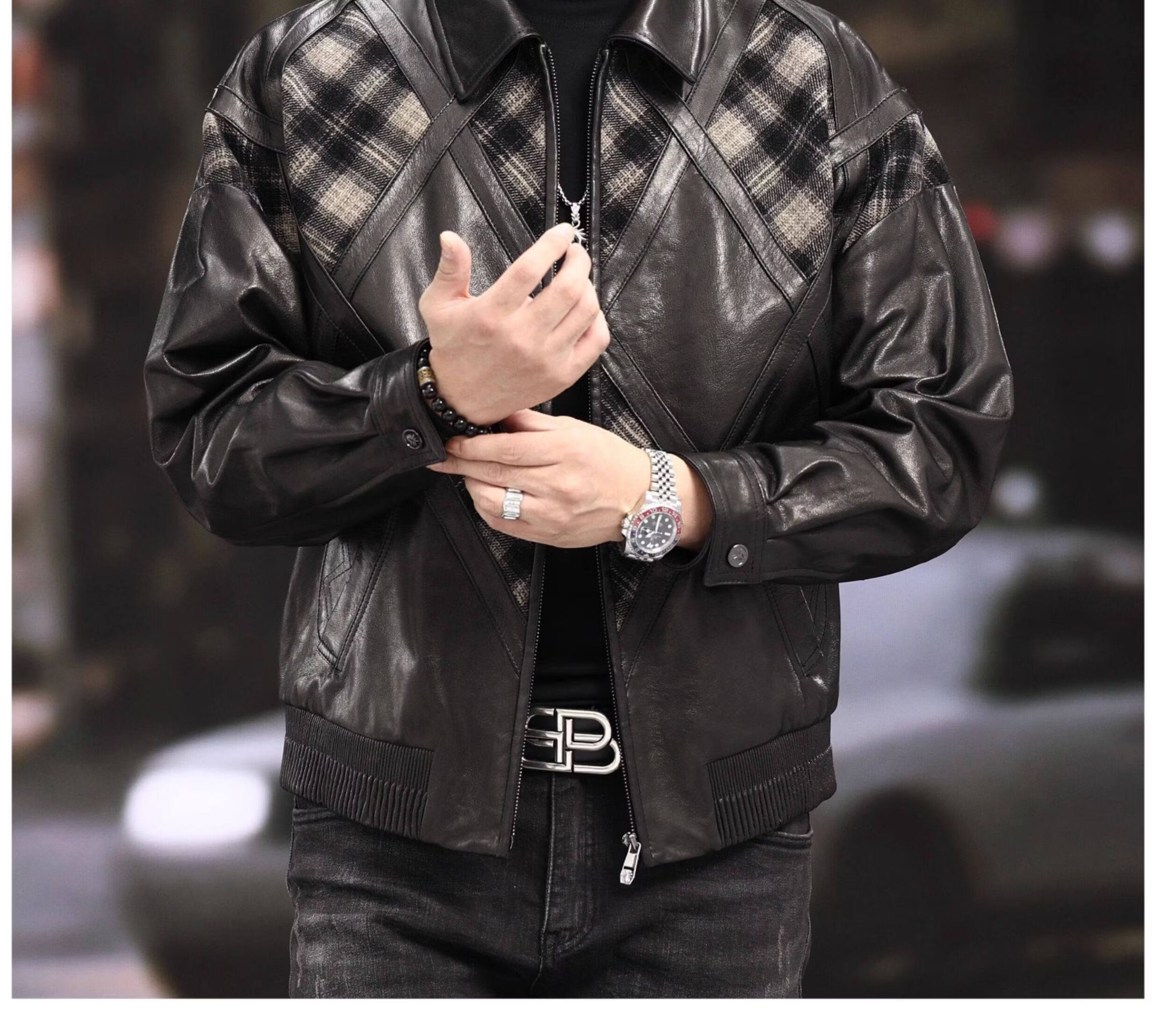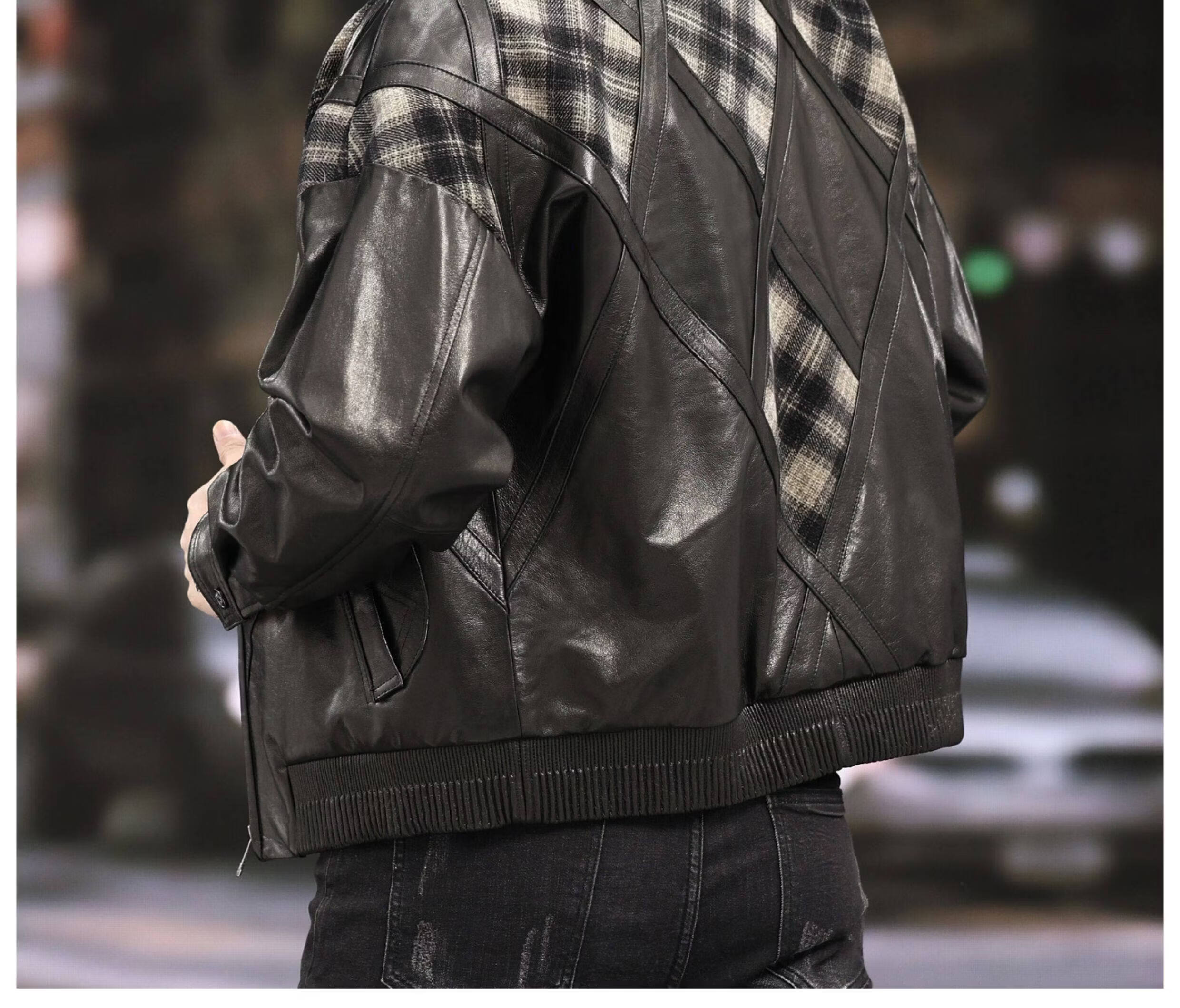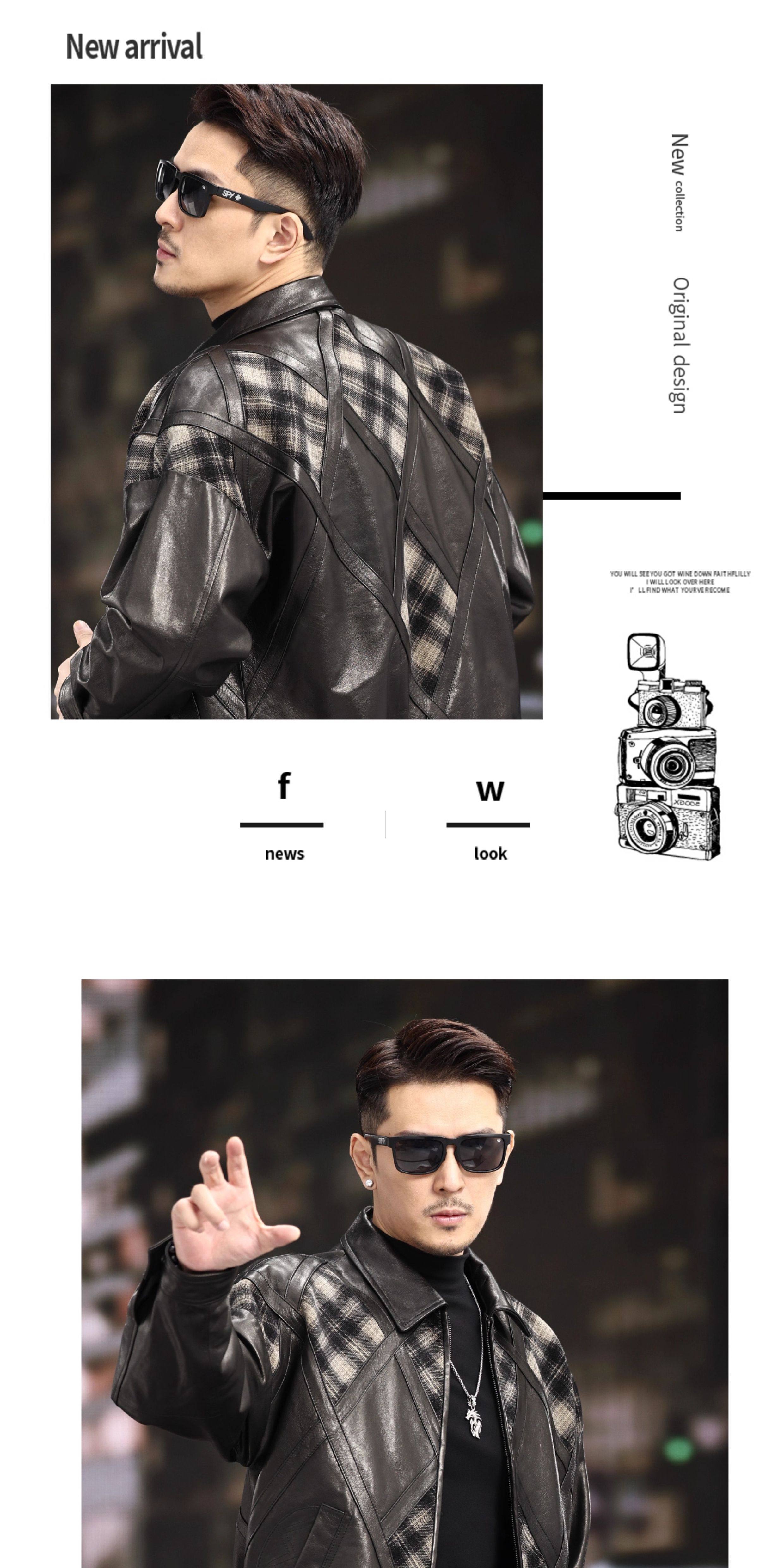 Xiaohongshu’s popular ZIXI vintage leather jacket for men with genuine leather goatskin spliced woolen lapels, removable thickened liner, black single lining M 16545-55kg