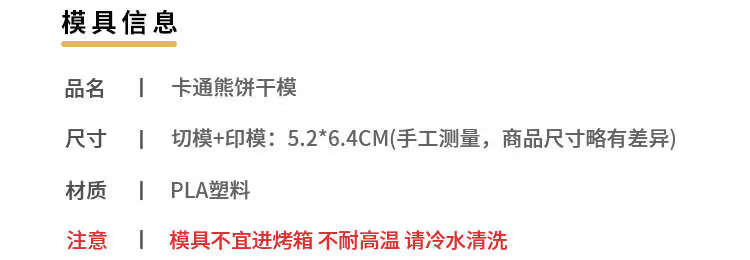 Yusenyi Fun Animal Biscuit Mold Bear Baking Mold Holding Cookies Cartoon Bear About 5.2x6.4CM