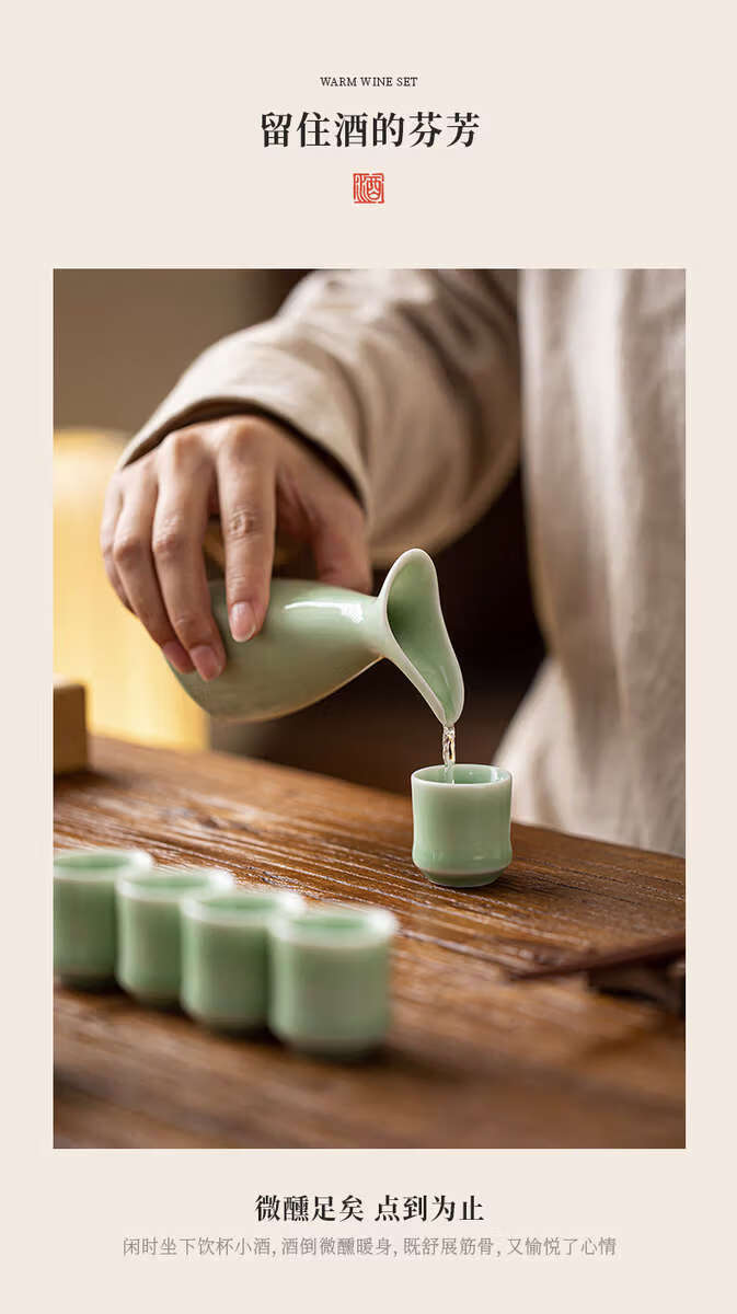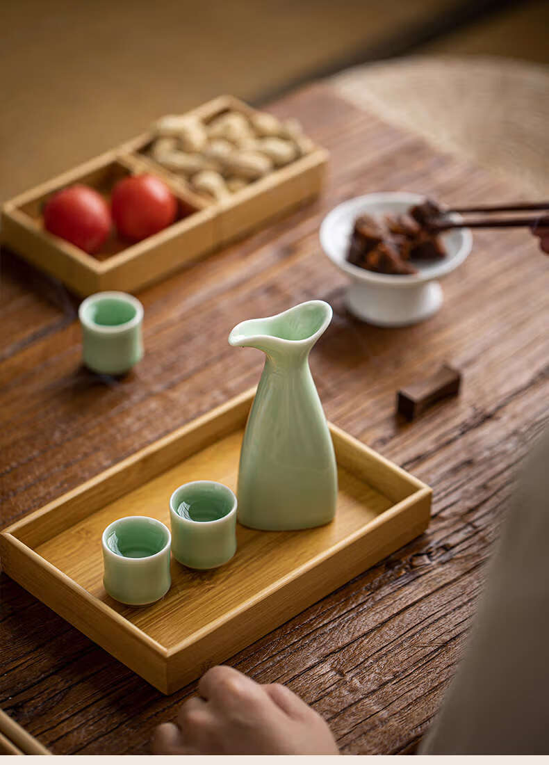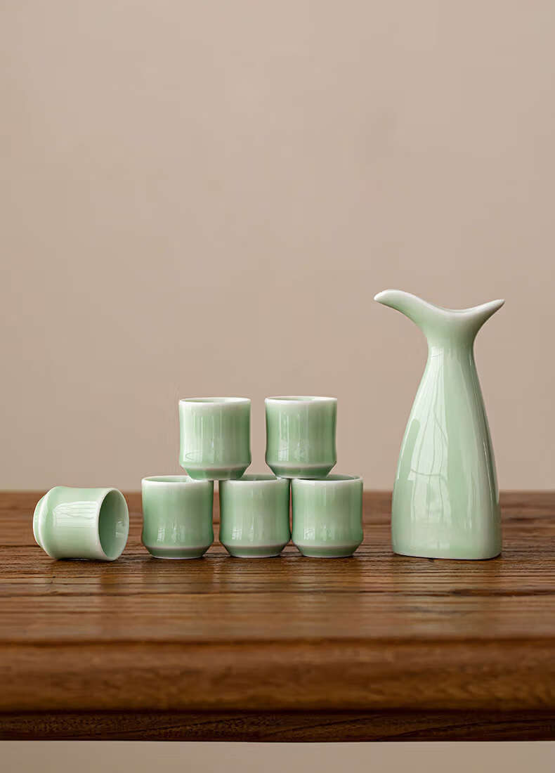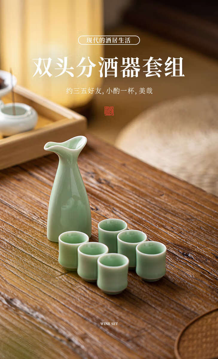 Yusenyi double-headed pot household wine divider sake pot antique wine set wine cup set white wine cup one cup double-headed pot plum green