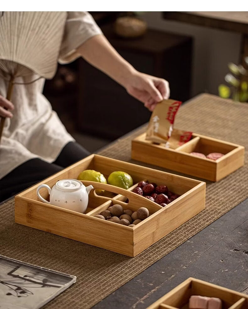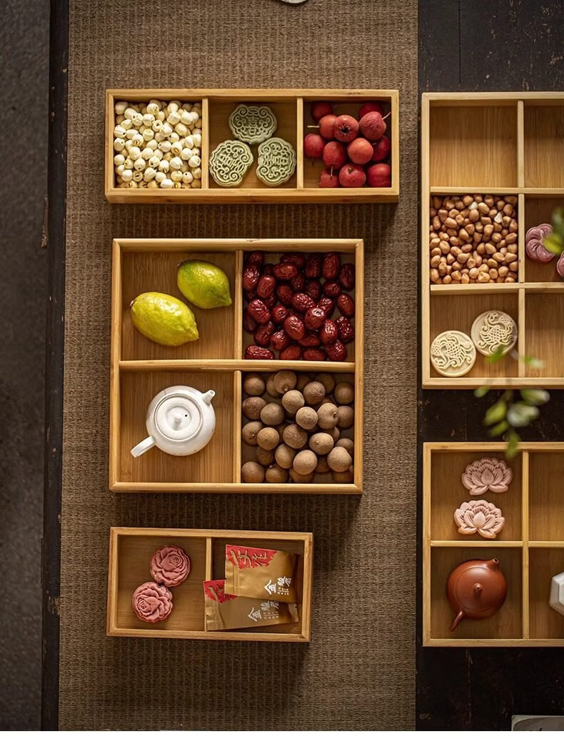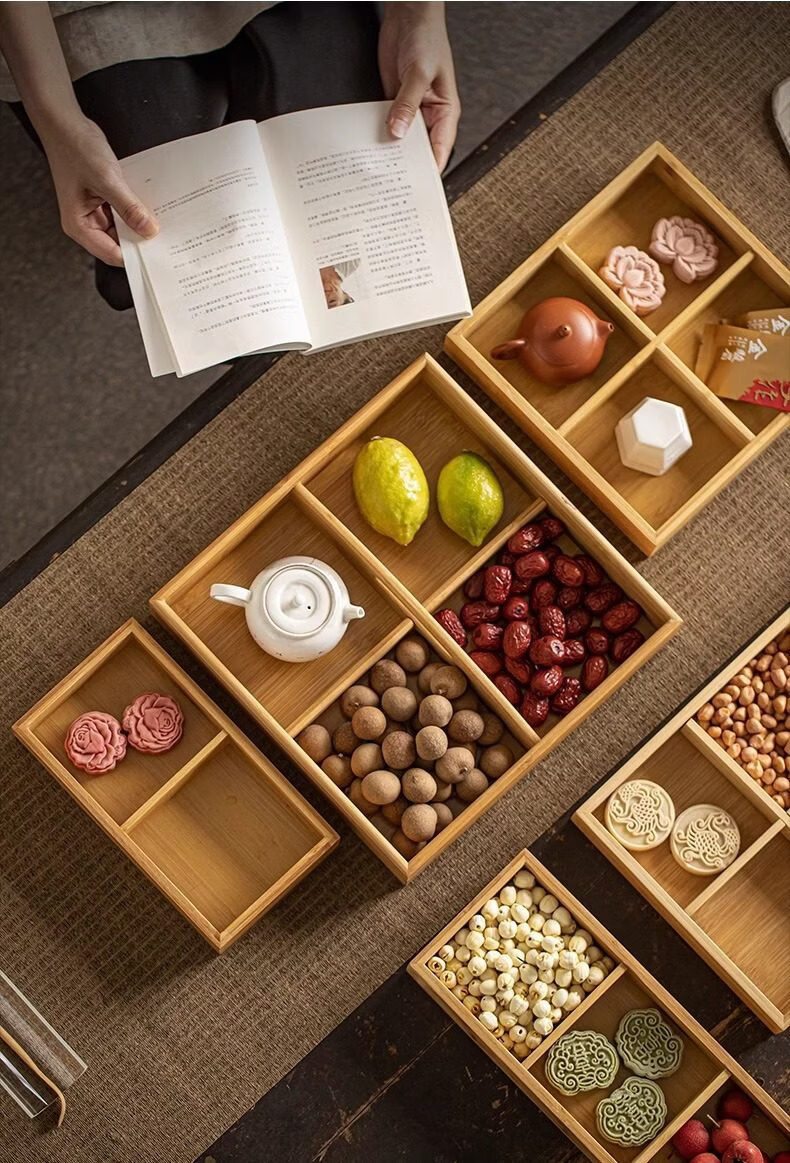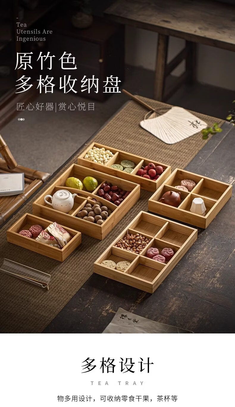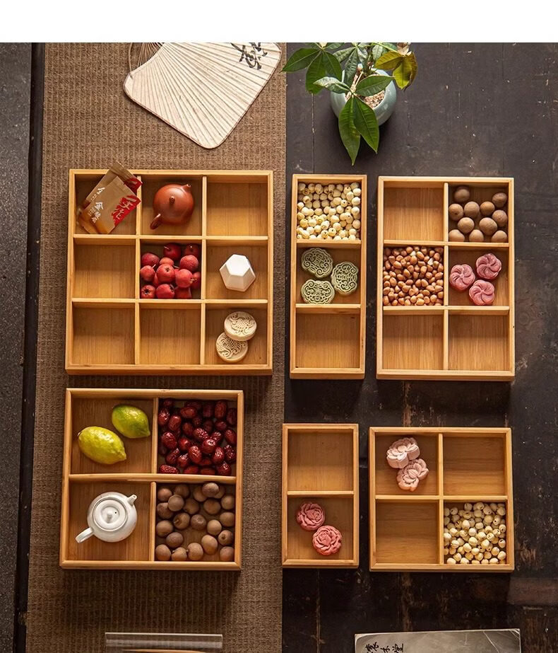 Tuojin cooks tea around the stove, nine-grid fruit plate, snacks, dried fruit plate, wooden plate, nine-grid tray, hot pot side dish platter, nine-grid tray + 9 white dinner plates