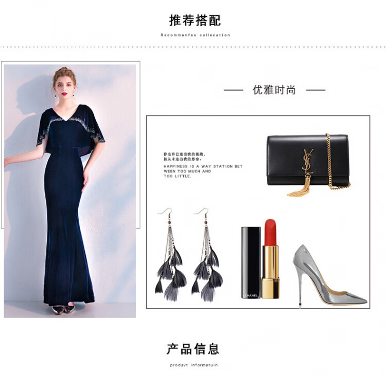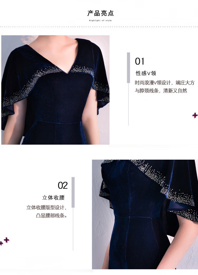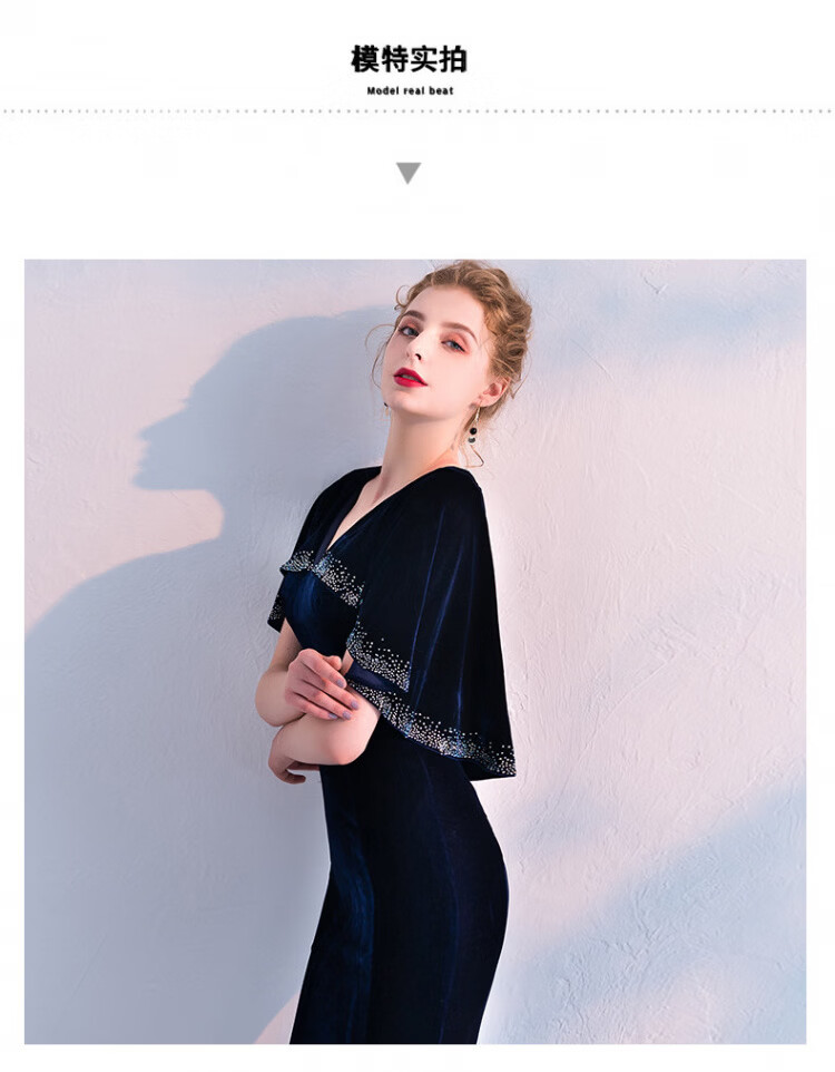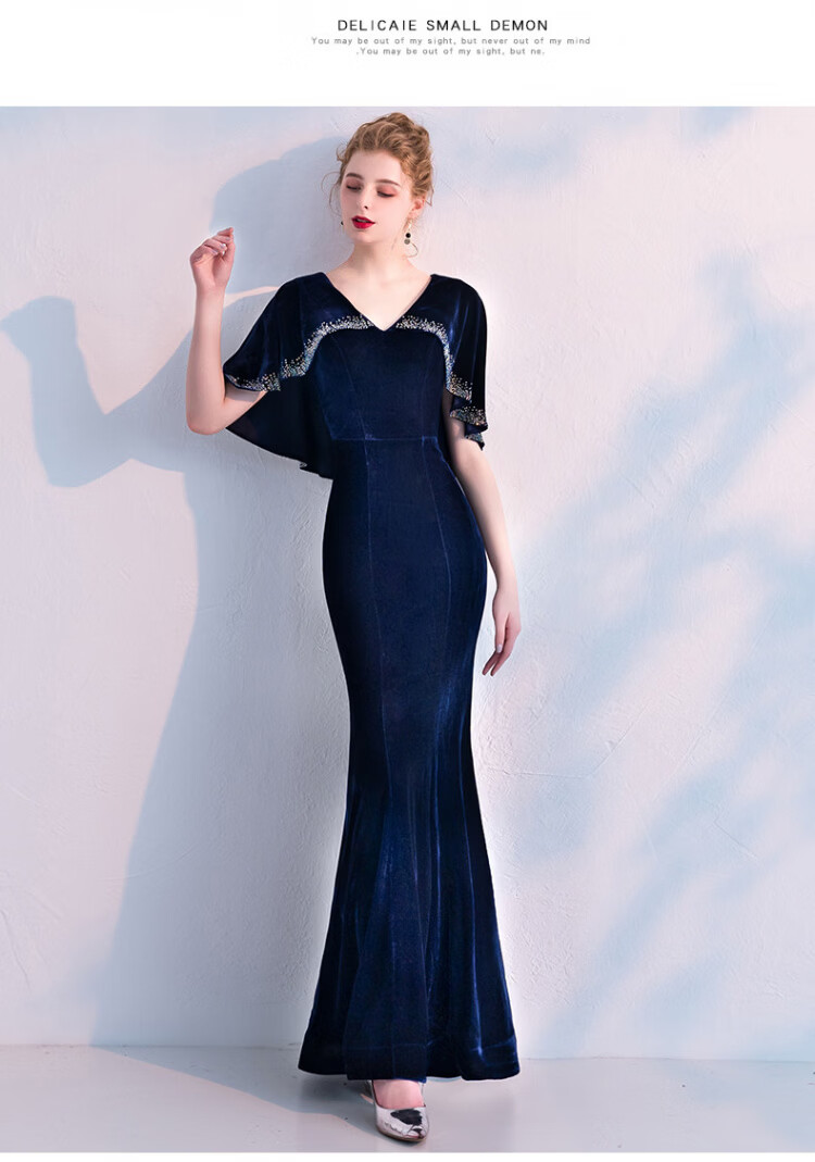 LISM designer international light luxury brand banquet evening dress women's velvet 2026 new style noble and elegant long slim fit navy blue M