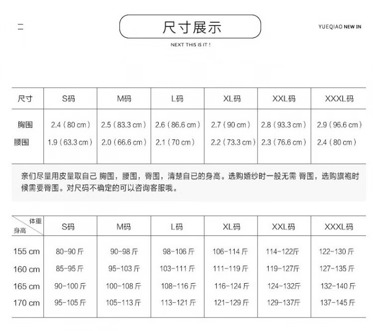 China (cm) 160-165/84-86 165-170 / 88-90 167-172 / 92-96 168-173 / 98-102 170-176 / 106-110