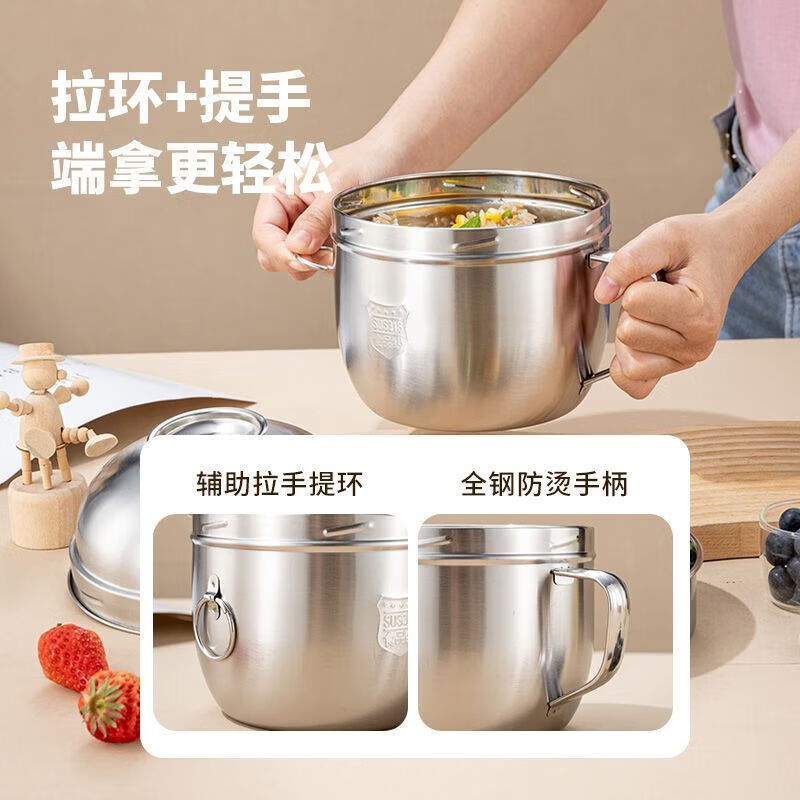 Tuojin German quality 316 stainless steel lunch box, fast food cup, instant noodle bowl, student office worker canteen tableware, rice bowl and rice cylinder, 14cm anti-scald, large capacity, with lid