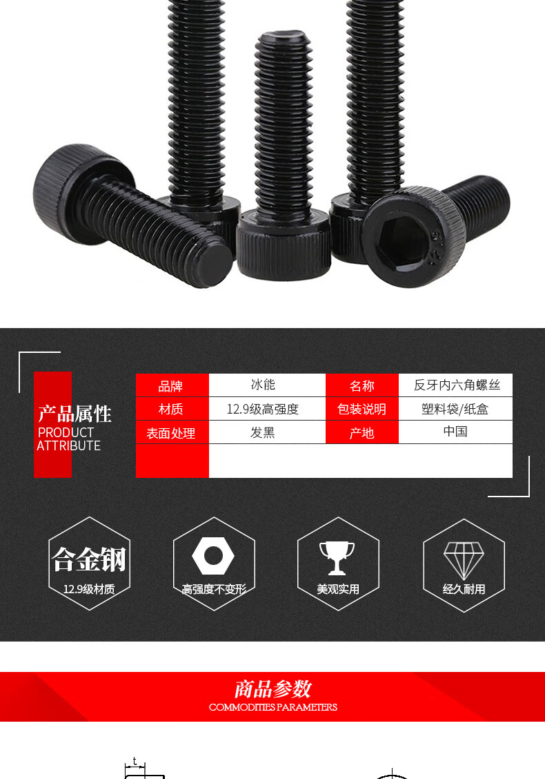 Shantou Lincun grade 129 counter-thread hexagonal screw left-hand left-thread cup head screw counter-thread counter-buckle cylindrical head M4*1020 capsules
