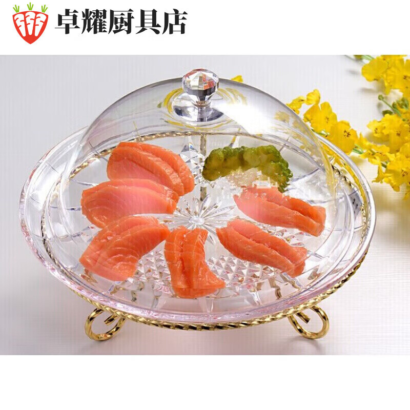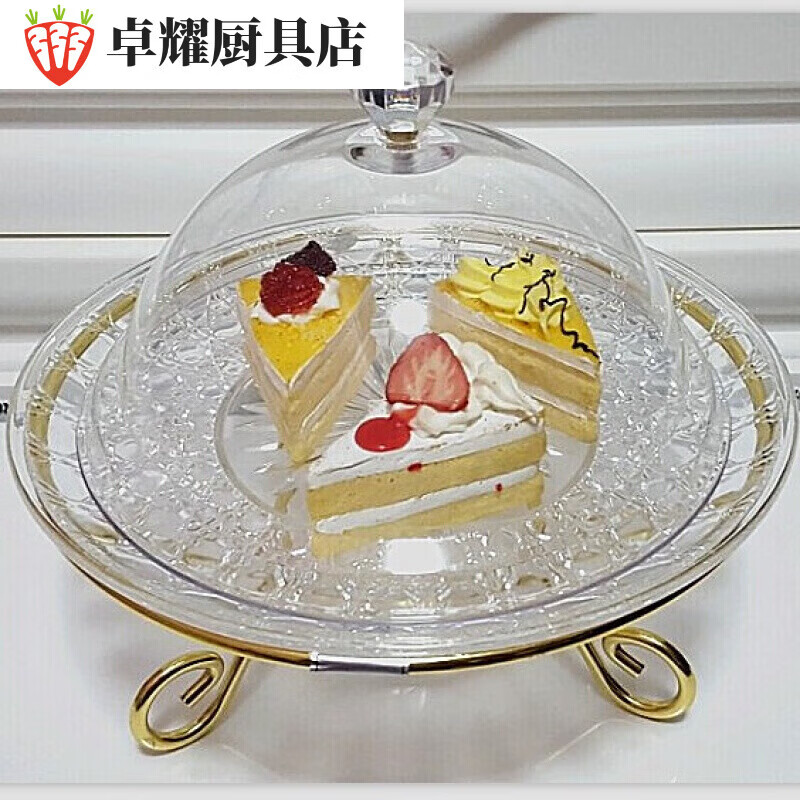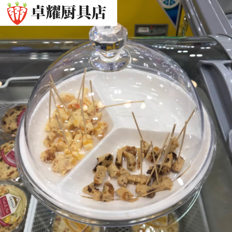 Tuojin Plastic Cover Transparent Round Dessert Tray Bread Display Plate Fruit Tasting Plate with Cover Three Compartments 2 Three Compartments 20cm Fruit Plate + 21cm Acrylic Cover