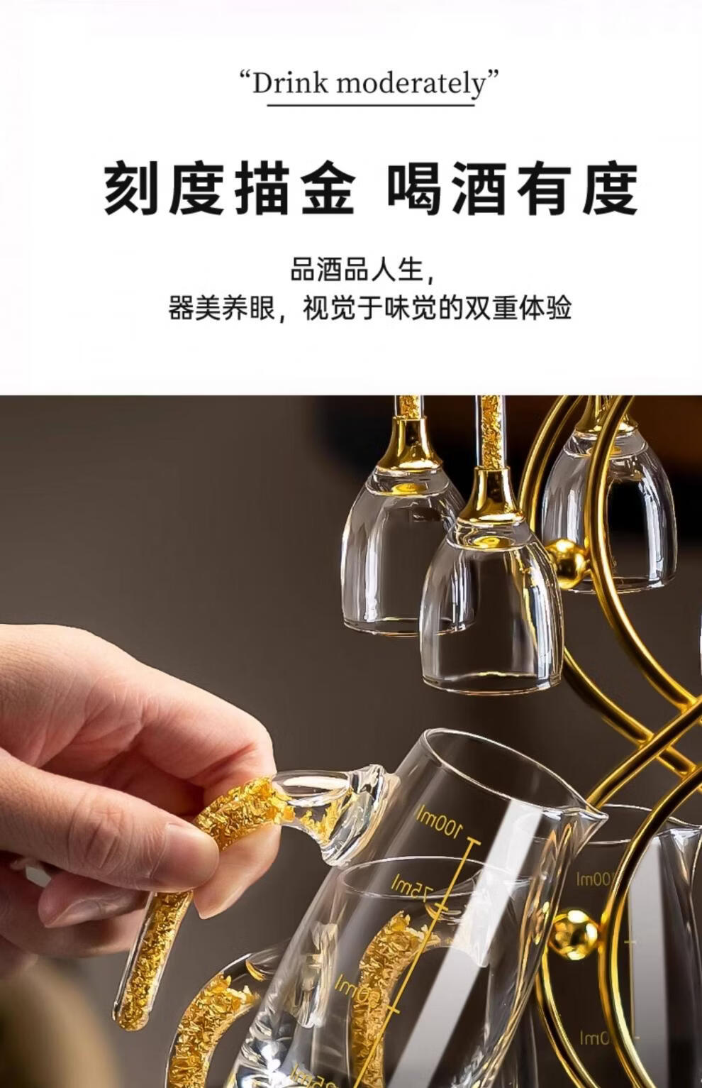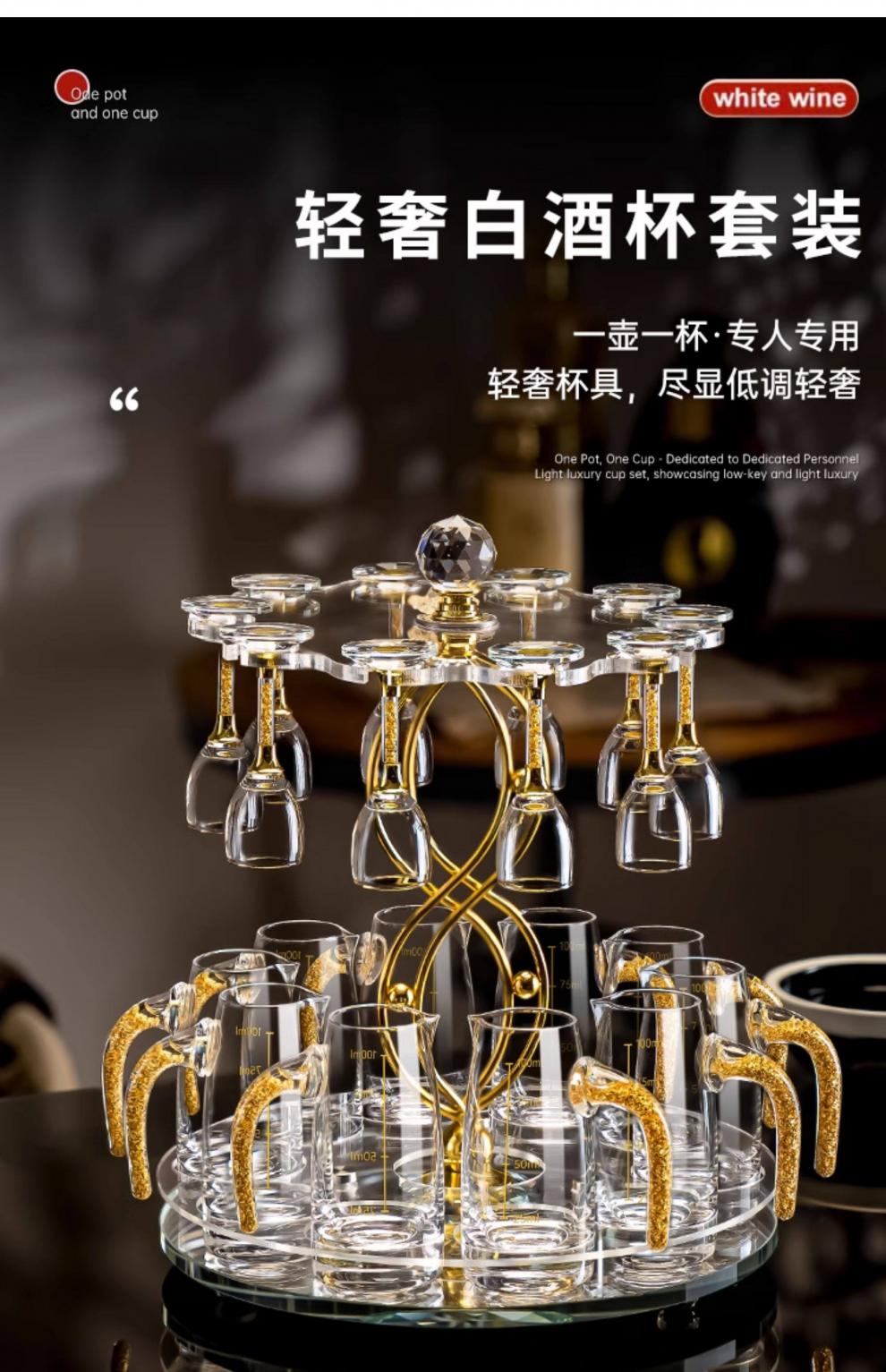 Tuojin light luxury white wine glass wine storage set crystal glass wine dispenser small wine cup holder for home use main picture 10 pots 10 cups 10ml gold foil goblet + 100m