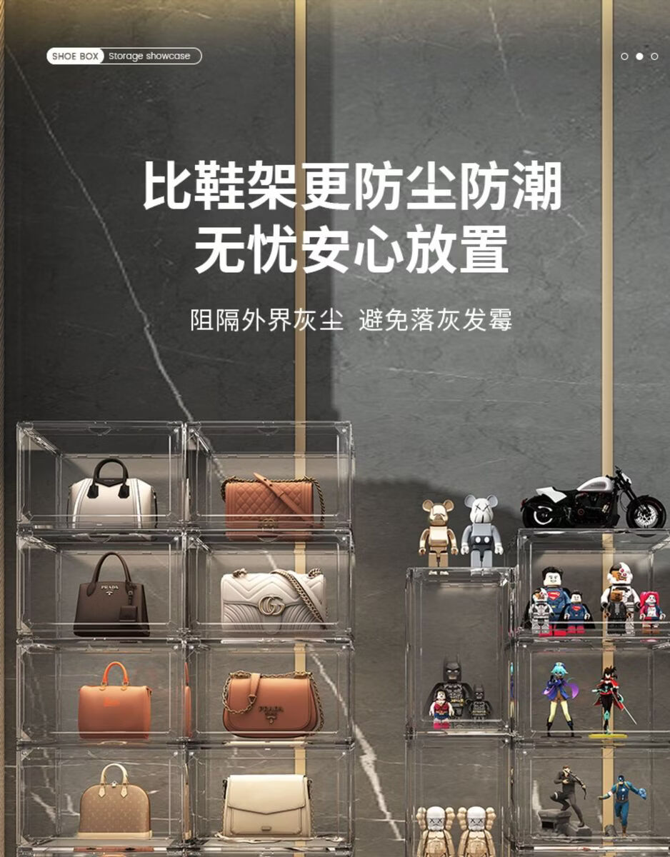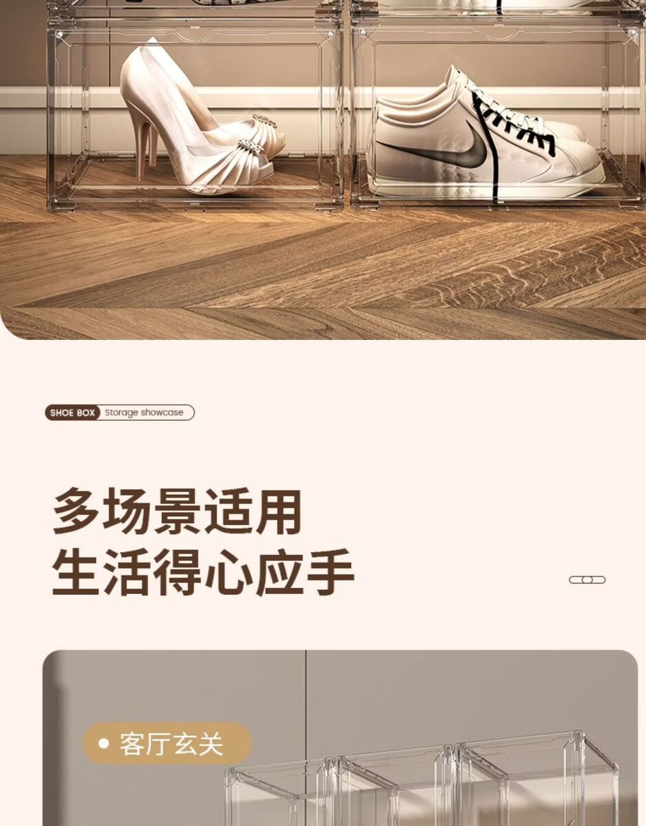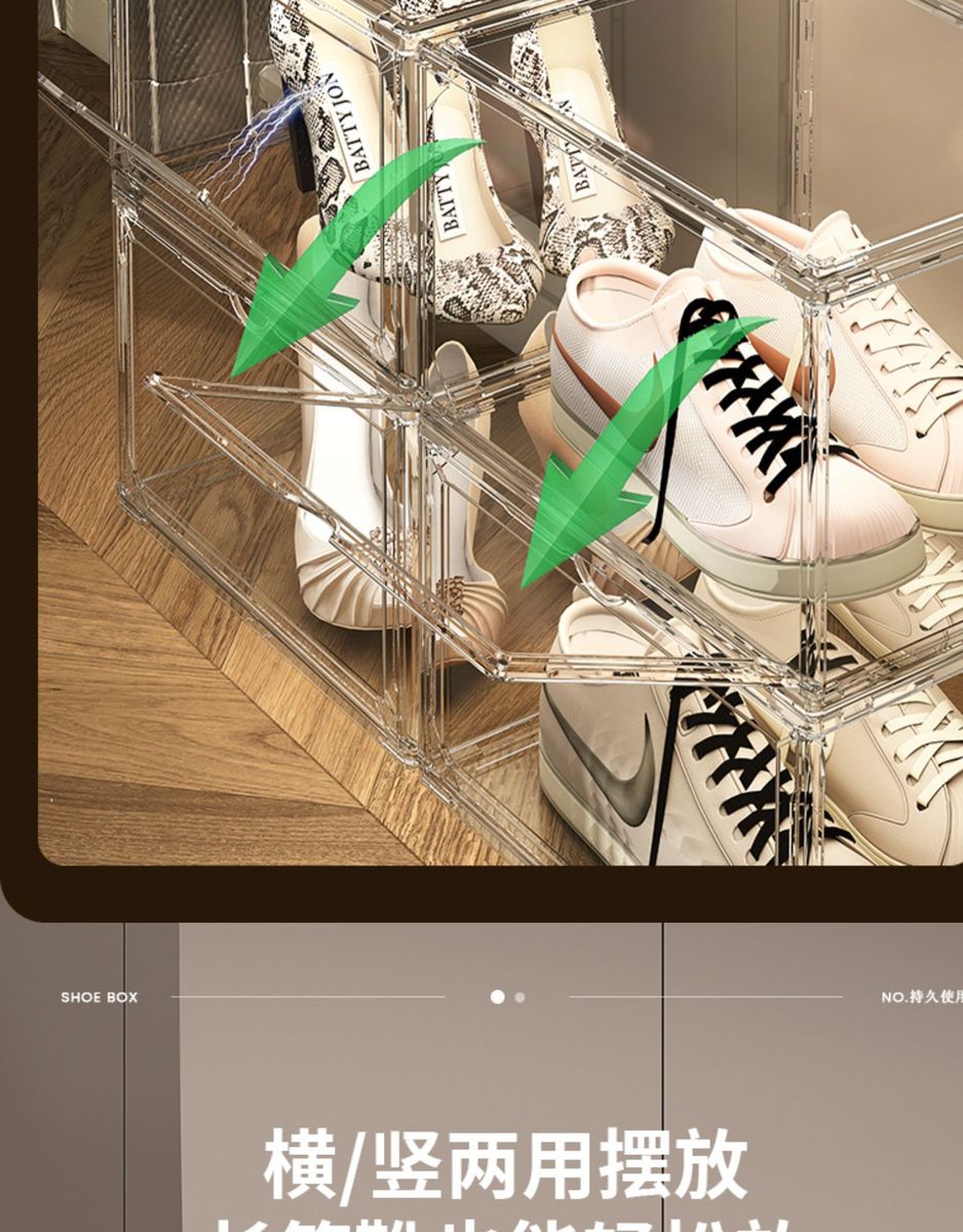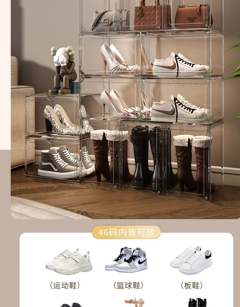Yusenyi AJ shoe box hard box fully transparent magnetic side opening acrylic bag hand storage box thickened shoe rack shoe cabinet PP high transparent white magnetic suction 1 pack
