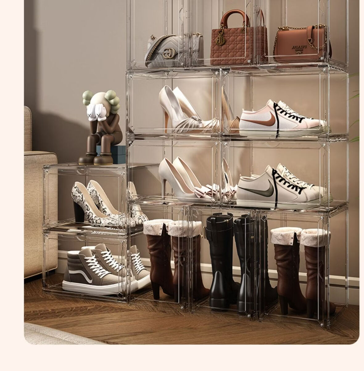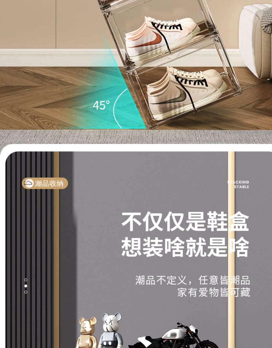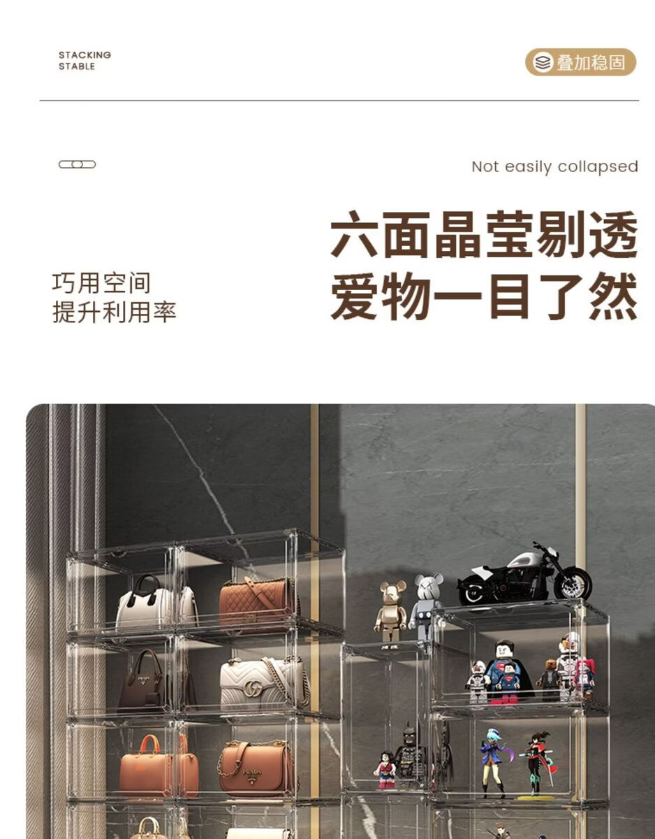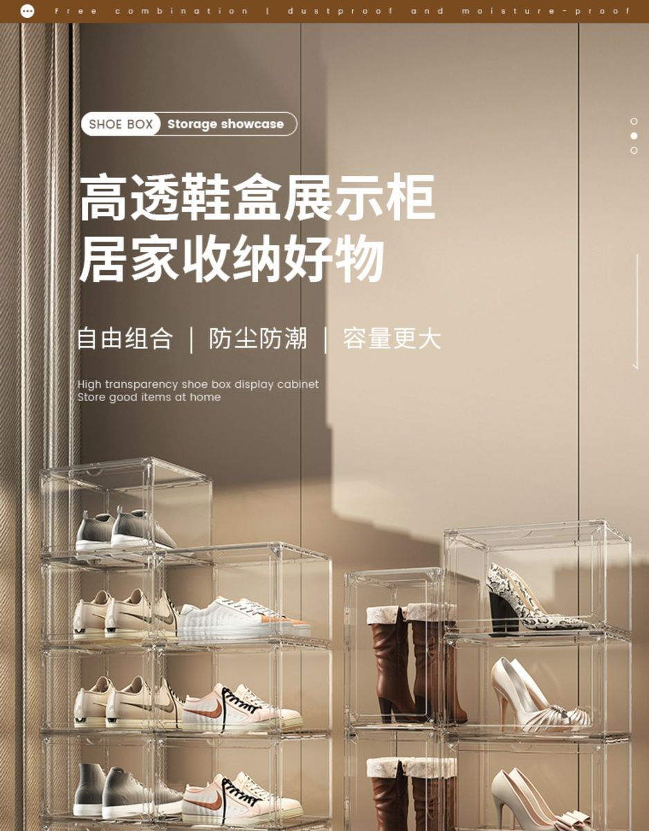 Yusenyi AJ shoe box hard box fully transparent magnetic side opening acrylic bag hand storage box thickened shoe rack shoe cabinet PP high transparent white magnetic suction 1 pack