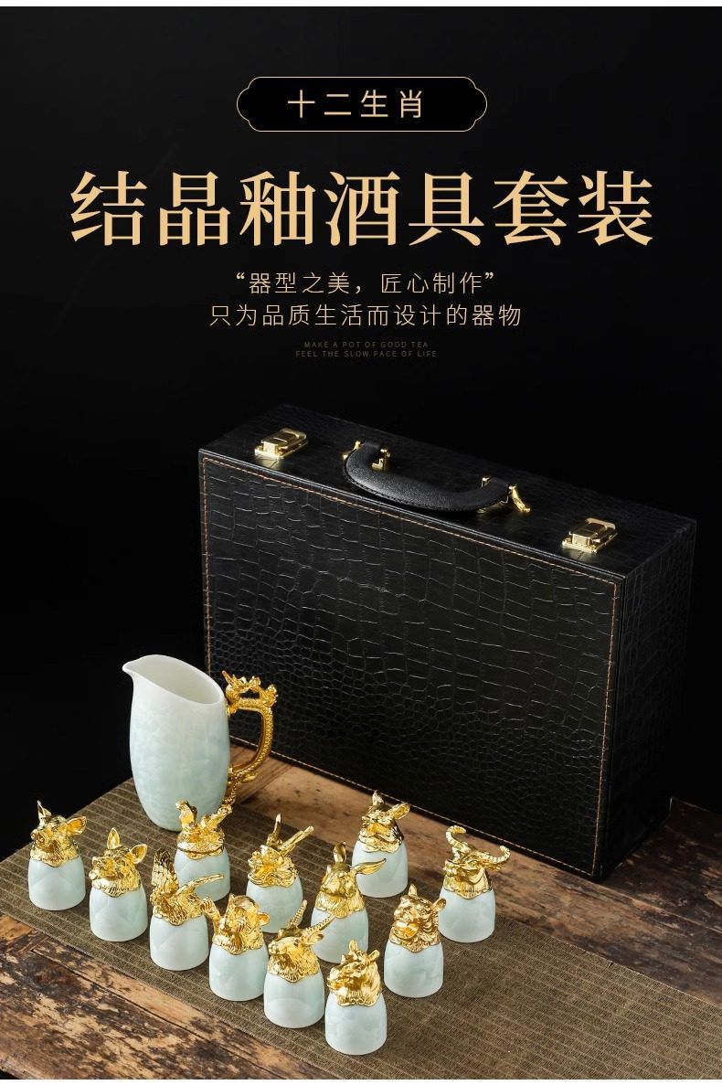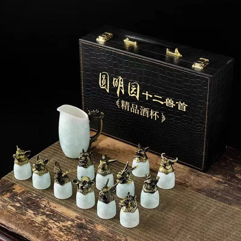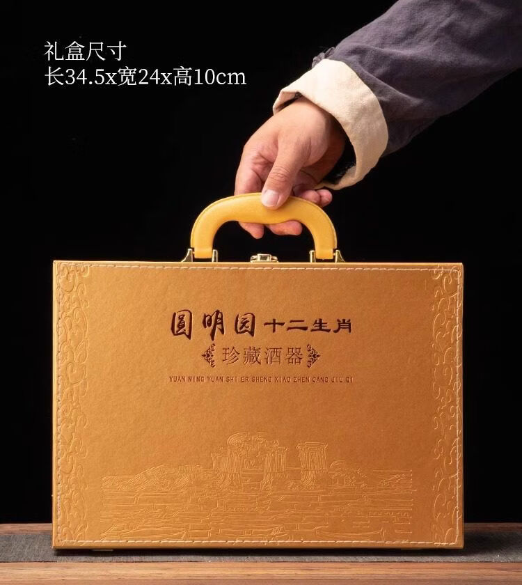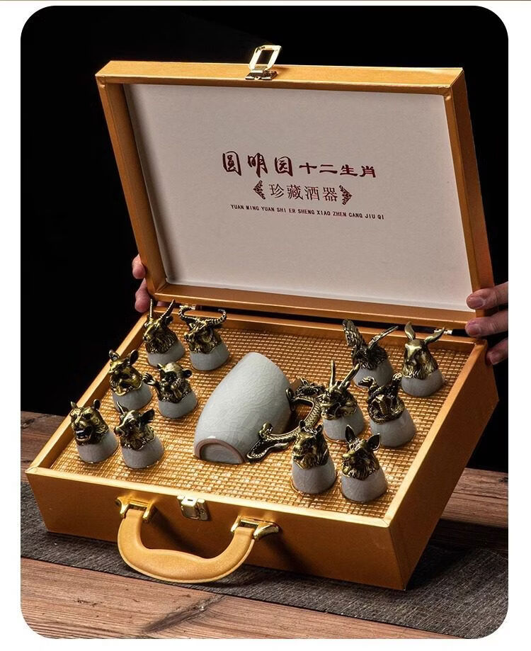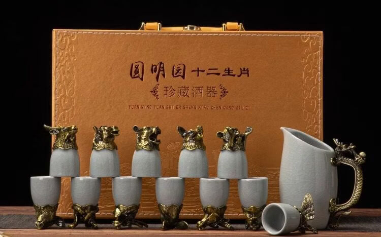 Liquor set, small cup, wine dispenser, one-cup gift box, wood grain Yuanmingyuan yellow wine set with base
