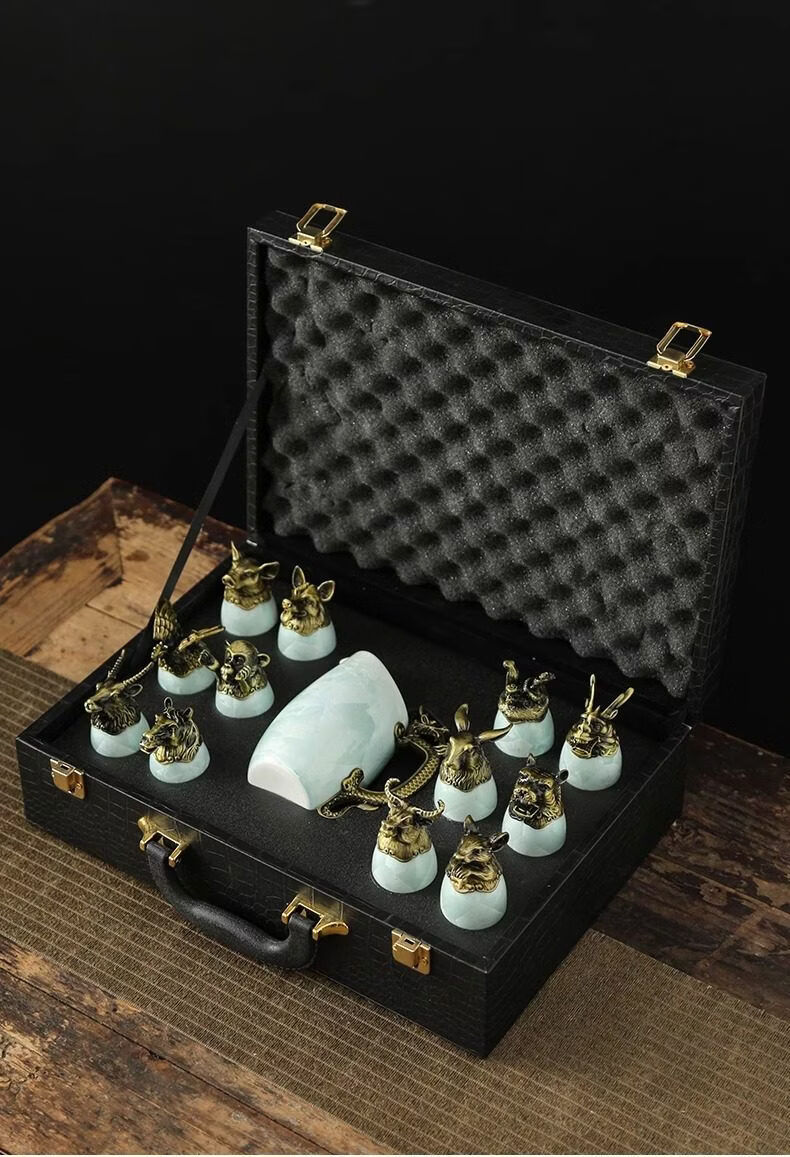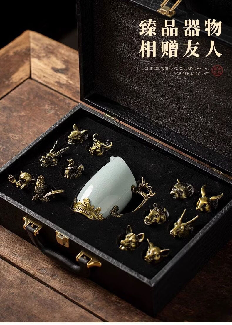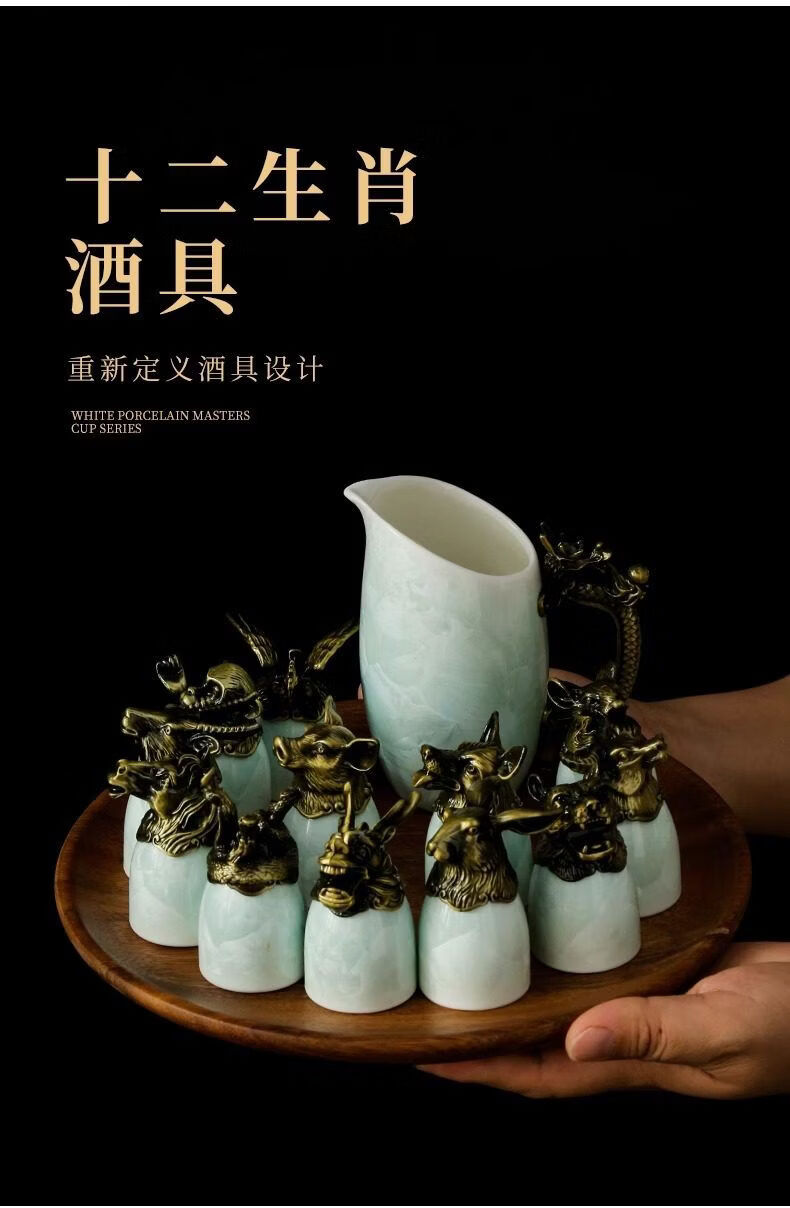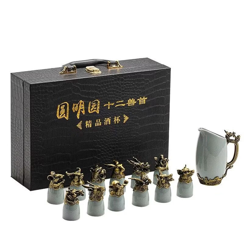 Liquor set, small cup, wine dispenser, one-cup gift box, wood grain Yuanmingyuan yellow wine set with base