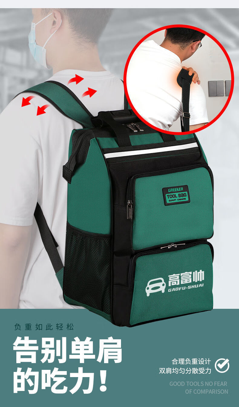 Sailoto Tool Bag Backpack Air Conditioning Electrician Repair Storage Bag Tool Bag Canvas Waterproof Wear-Resistant Strong 18-inch Multifunctional Backpack