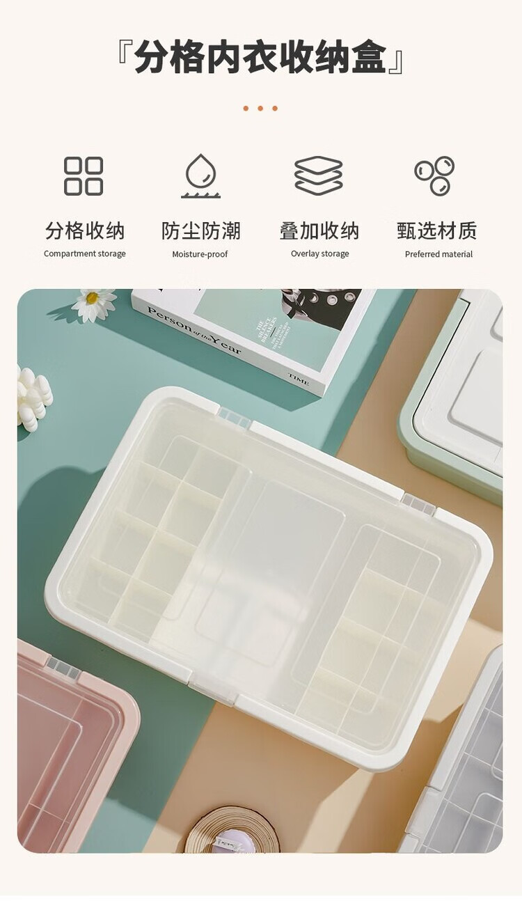 Core socks storage box large bra box with cover three-in-one bra box thickened dormitory desktop multi-functional household large size 17 grid three-in-one white