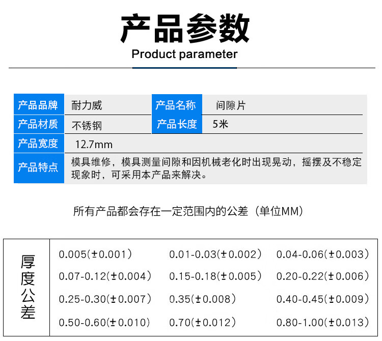 Customized Nilewei stainless steel gap sheet 50mmHS high-precision silicon steel sheet mold adjustment tin steel gasket thickness 0 points 005 * width 50mm * length 5 meters box