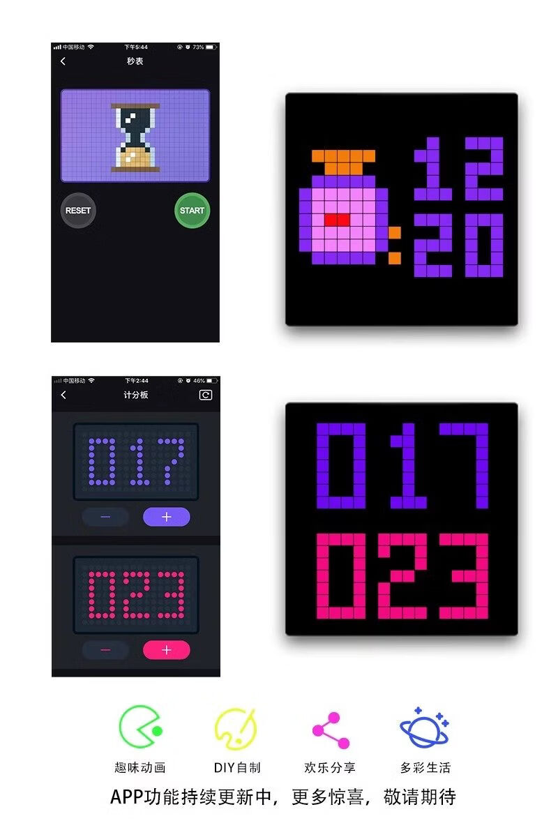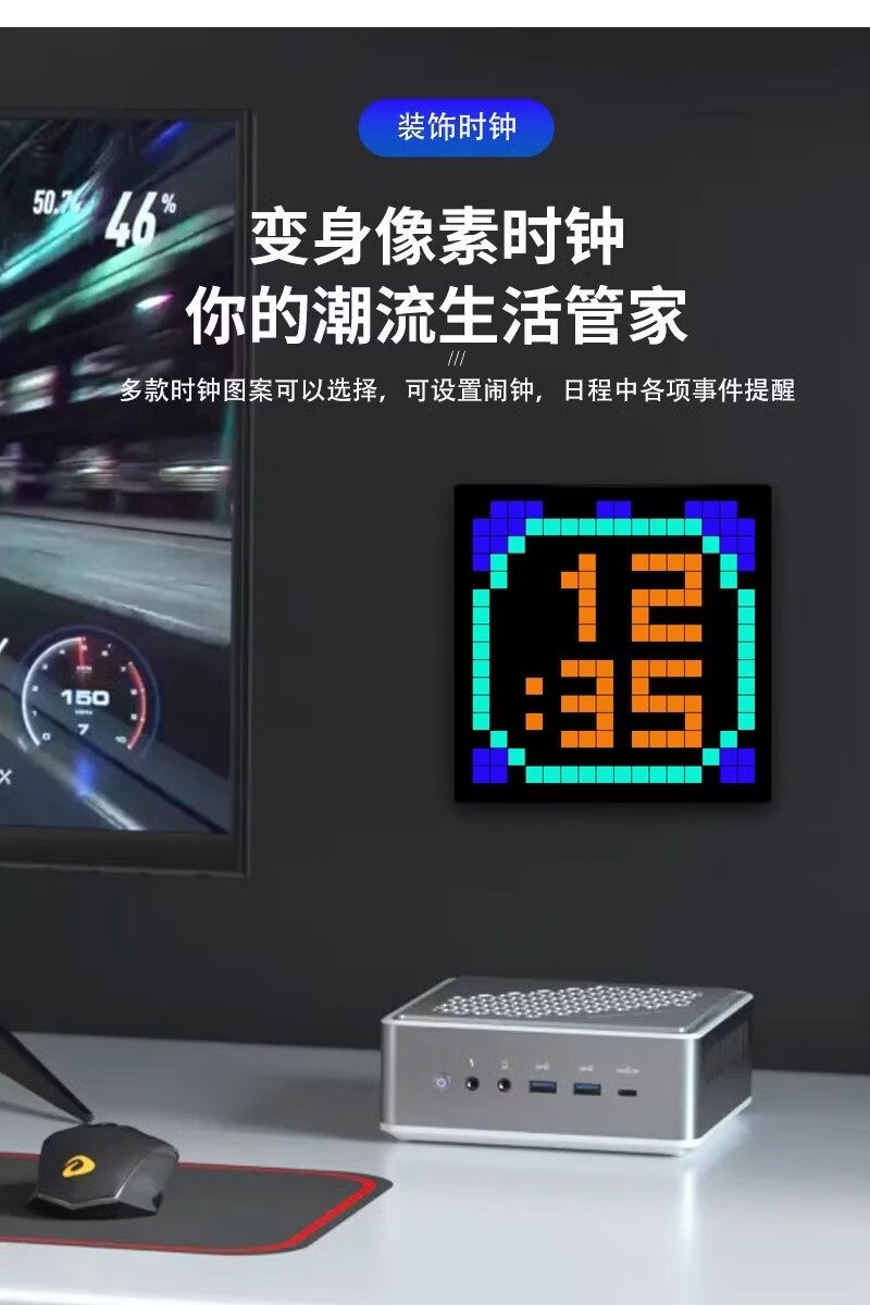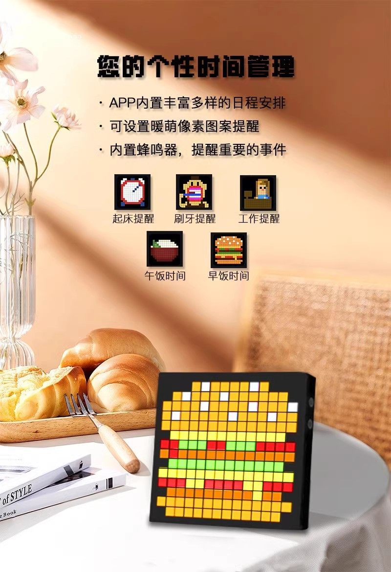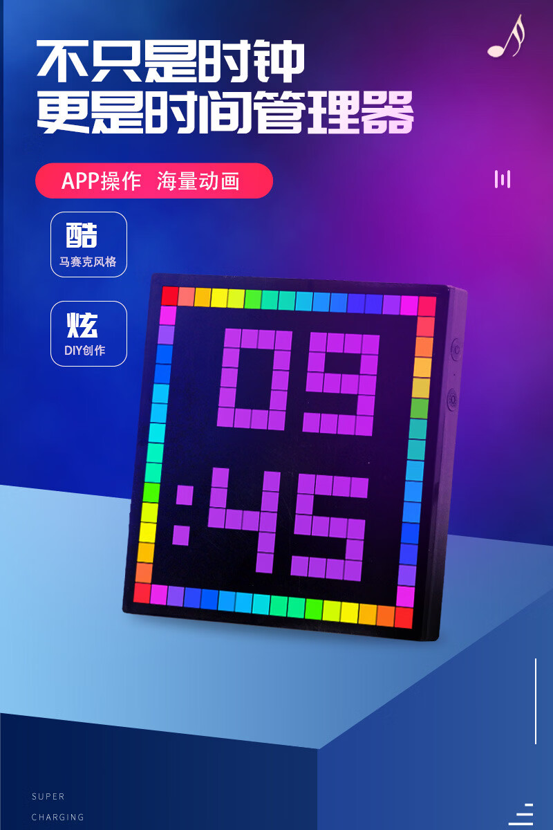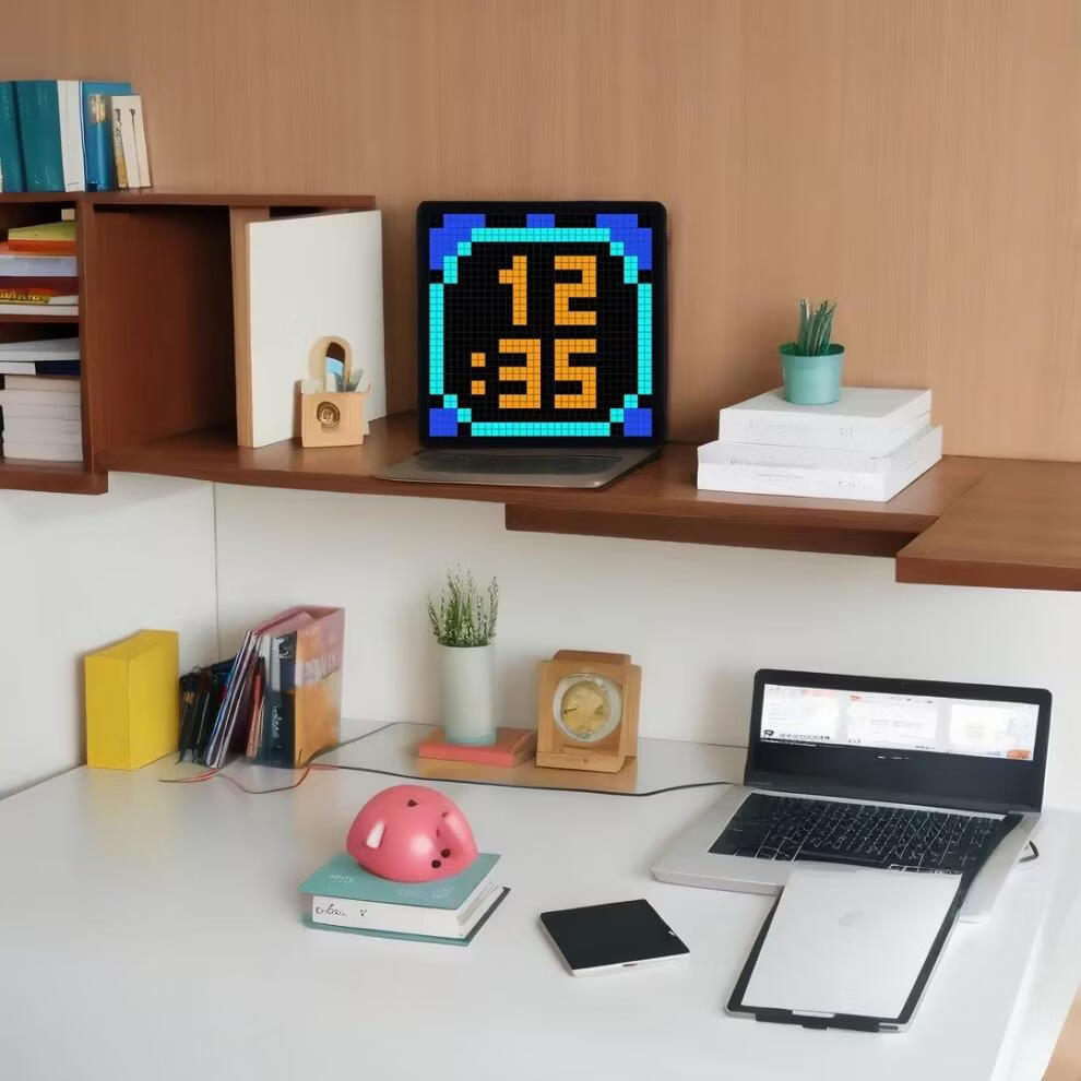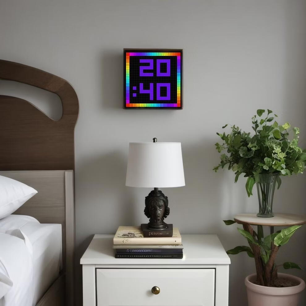Zailu pixel clock ornaments large digital clock clock living room bedroom smart simple electronic wall clock creative table set black