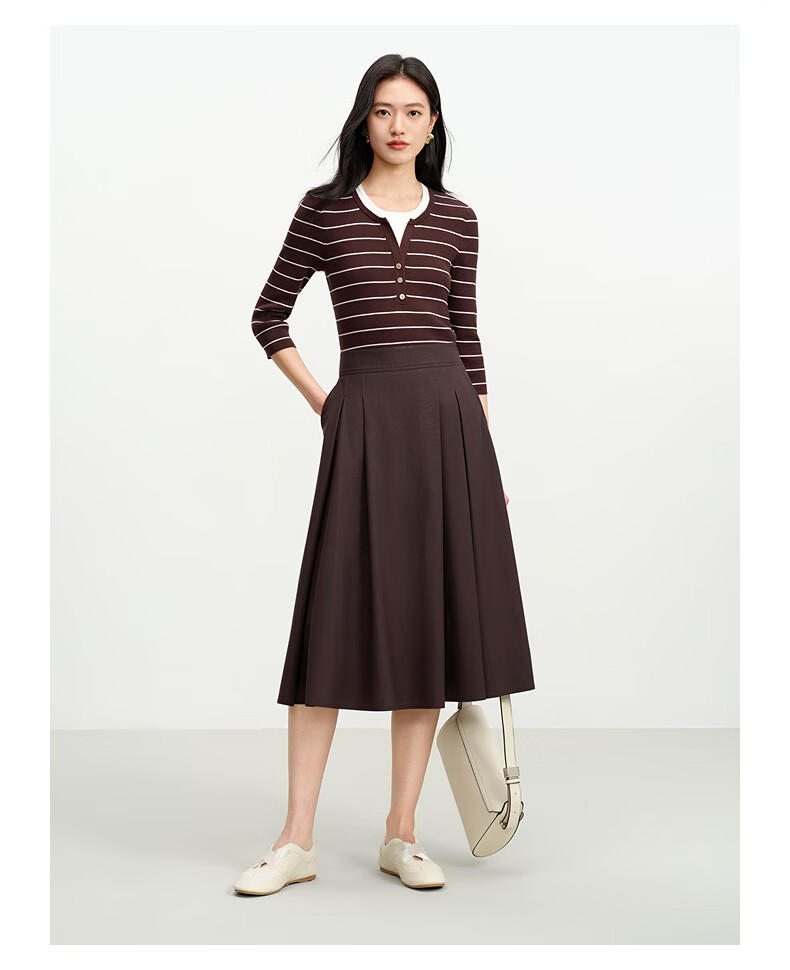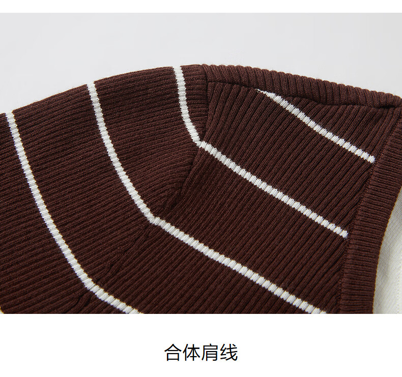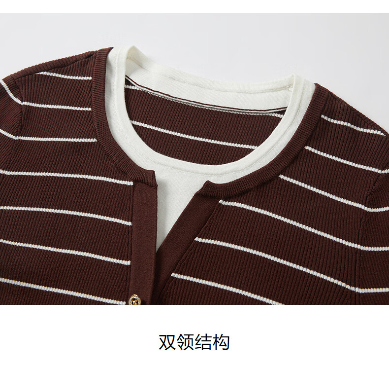 JUZUI ageless fake two-piece striped short-sleeved sweater for women 2026 spring new style JWGC31205 Barbecue Cafe M