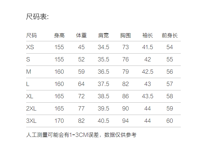 China (cm) 160-165/84-86 165-170 / 88-90 167-172 / 92-96 168-173 / 98-102 170-176 / 106-110