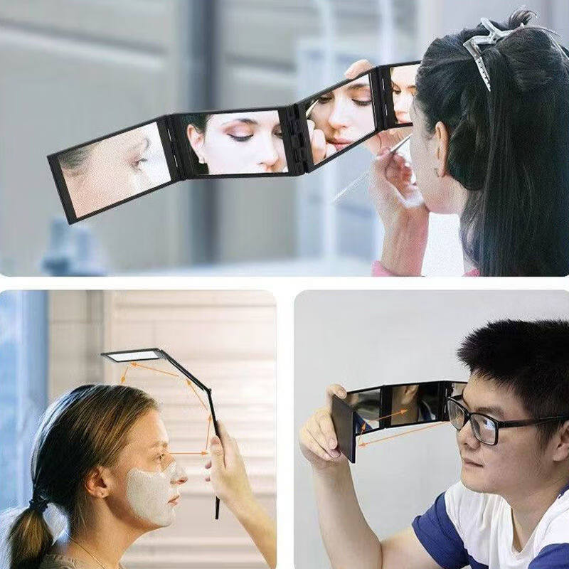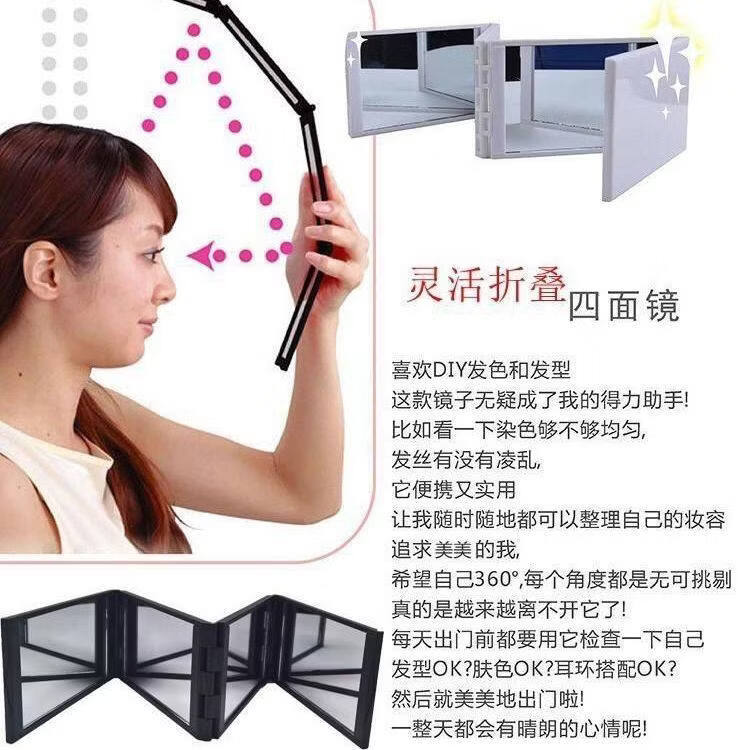 Fat Donglai's same style bathroom makeup mirror four-sided folding mirror portable multi-angle back head mirror folding haircut telescopic reverse full body purchase 1 piece can be folded in four layers 360-degree mirror